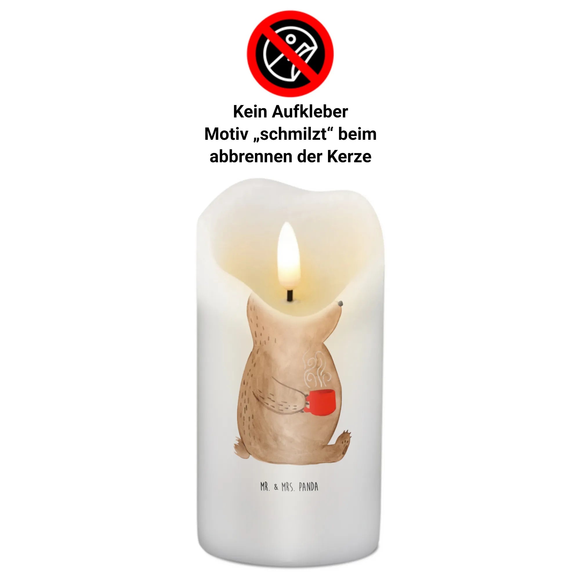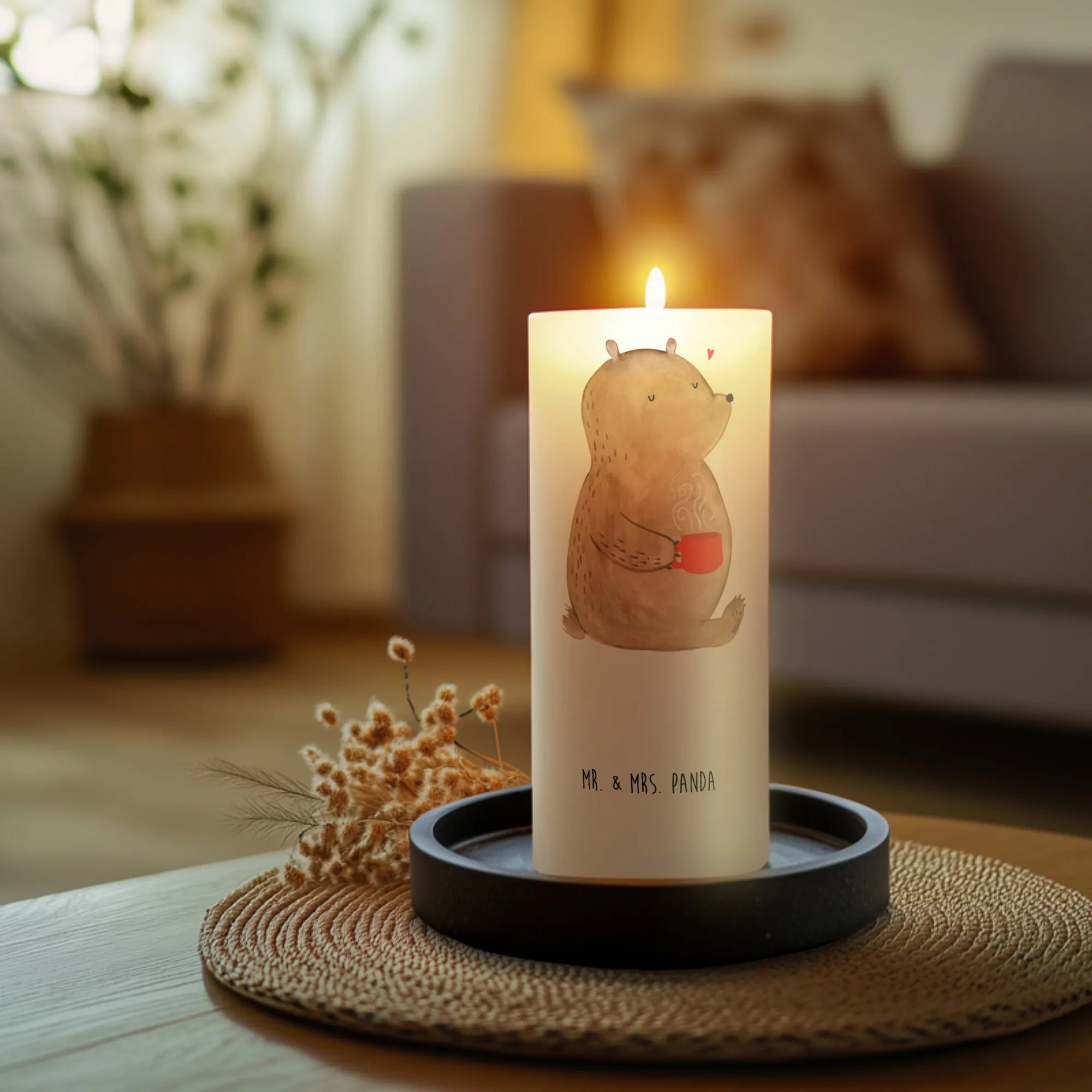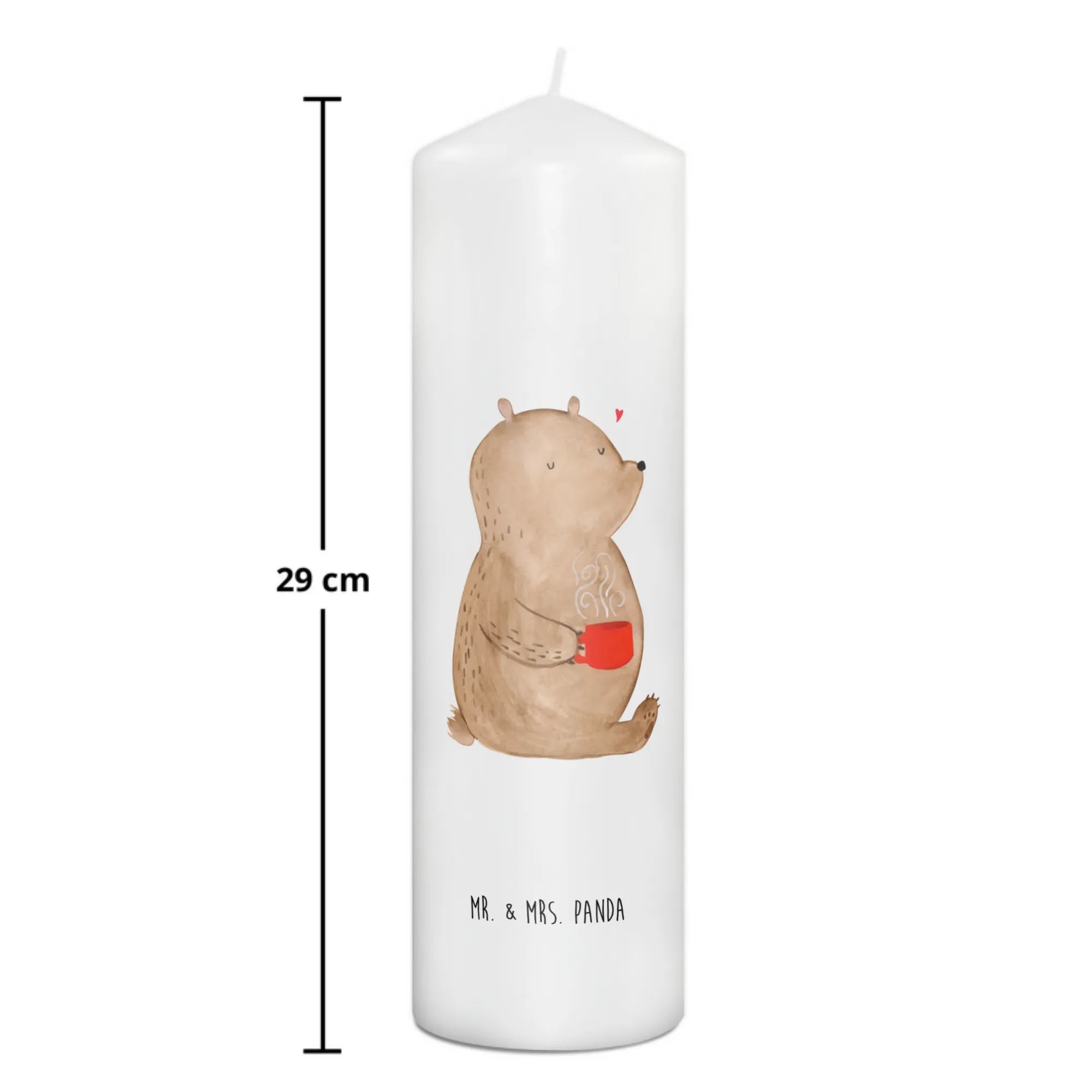Mr. & Mrs. Panda Kerze „Bär Kaffee“ – ein kleines Stück Gemütlichkeit für deinen Alltag. Der niedliche Teddybär mit einer dampfenden Tasse und der fröhliche Spruch „Erst Kaffee, dann die Welt erobern.“ bringen ein Lächeln auf dein Gesicht und sorgen für warme Stimmung in Küche, Wohnzimmer oder Büro.