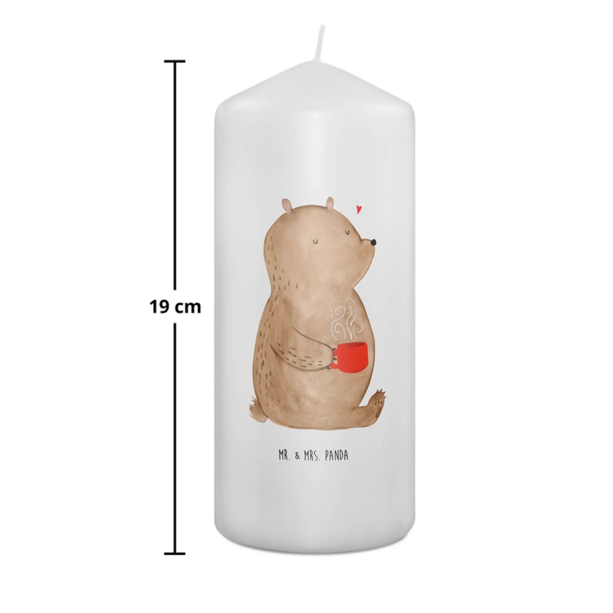 Die zauberhafte Kerze mit dem süßen Bär-Motiv, der genüsslich seine Tasse Kaffee genießt, ist das perfekte Geschenk für viele Anlässe. Sie ist nicht nur eine einfache Kerze, sondern ein echtes Statement für all jene, die den liebevollen Charme von Mr. & Mrs. Panda schätzen. Mit einem schönen Design und dem motivierenden Slogan "Erst Kaffee, dann die Welt erobern" eignet sie sich hervorragend als Taufkerze, Kommunionskerze oder Geburtstagskerze.