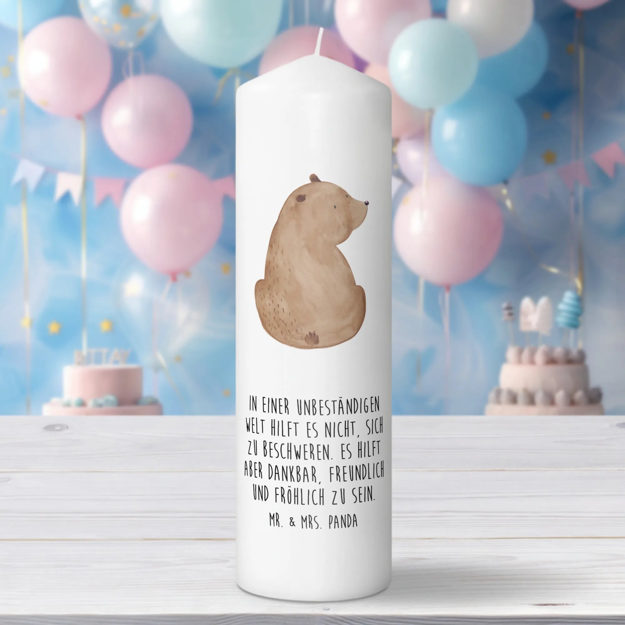 Entdecke die zauberhafte Taufkerze "Bär Schulterblick" von Mr. & Mrs. Panda! Diese wunderschöne Kerze ist perfekt für besondere Anlässe wie Taufen, Kommunionen oder Geburtstage.