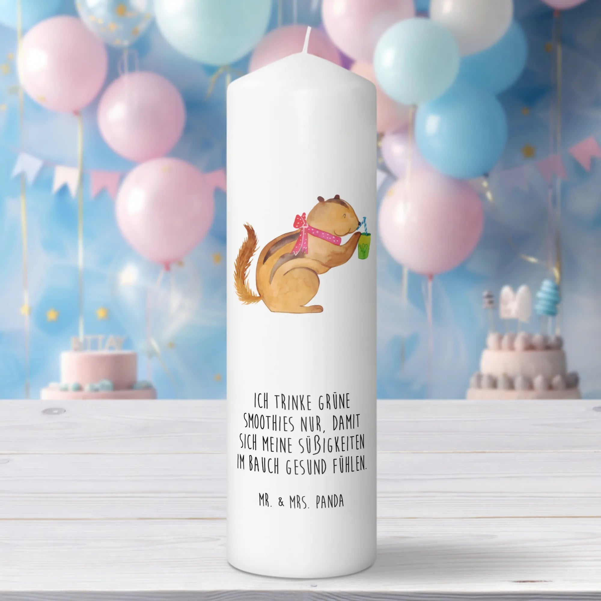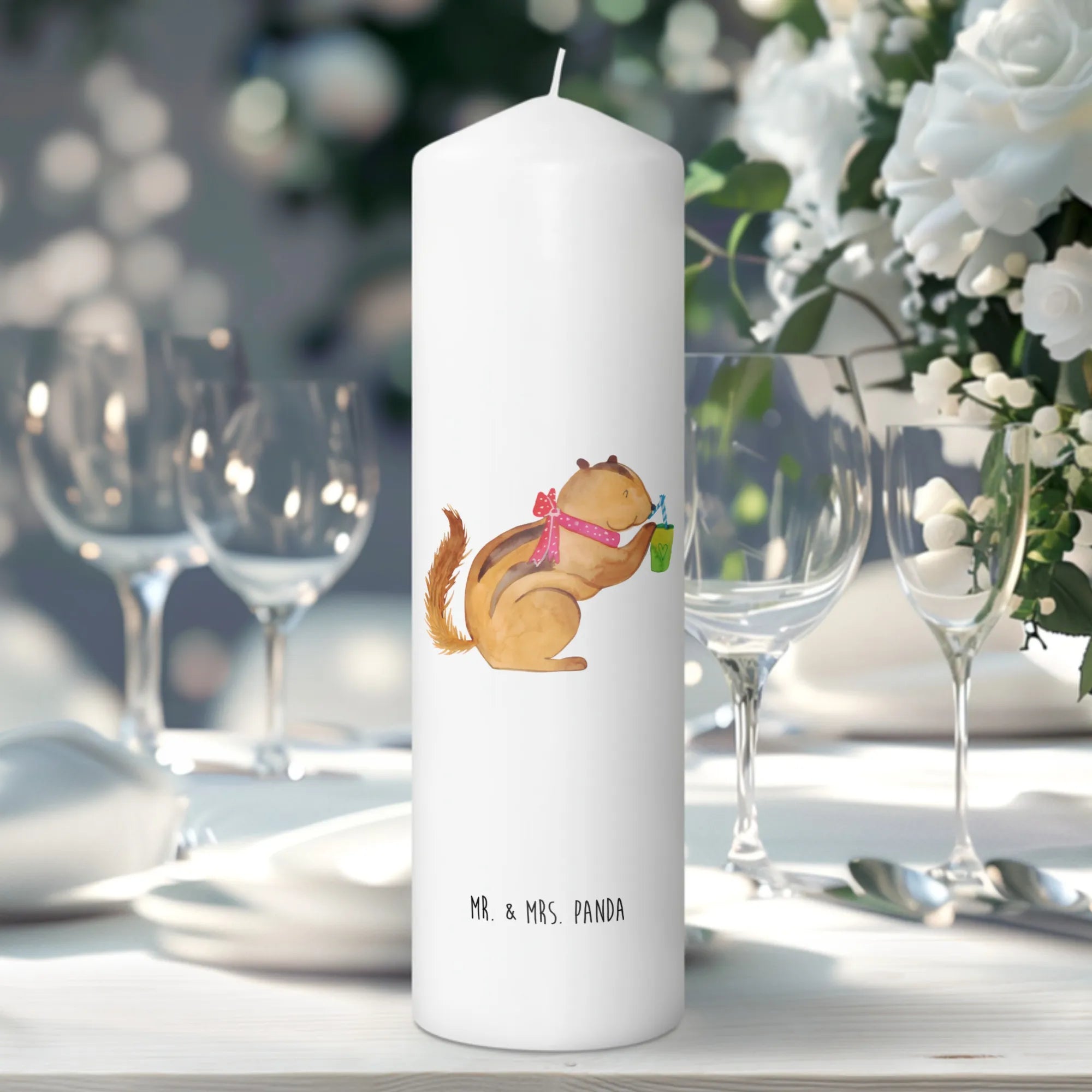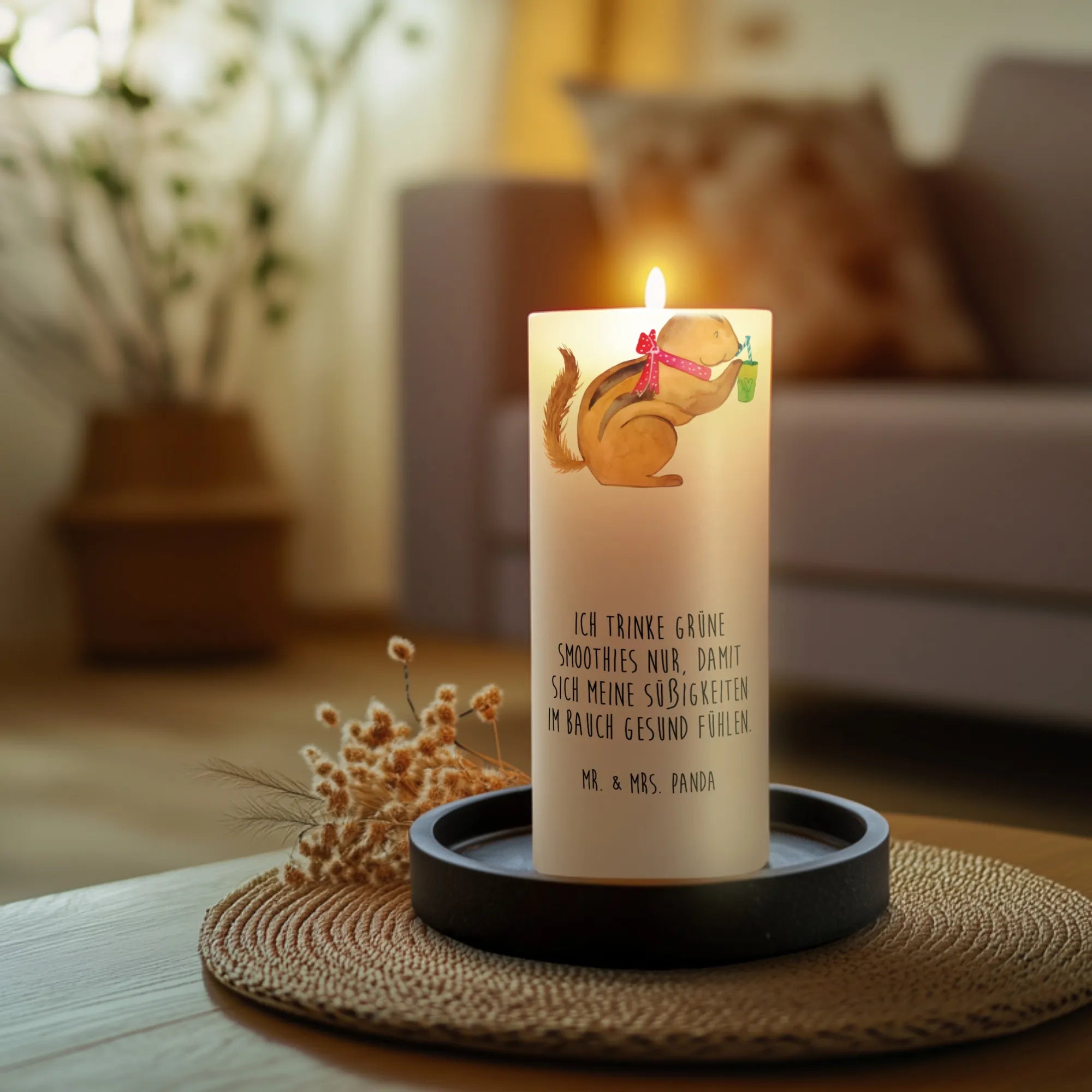 Die Eichhörnchen Smoothie Kerze von Mr. & Mrs. Panda ist ein wahres Highlight für jeden Anlass! Diese wunderschöne Kerze begeistert nicht nur durch ihr liebevolles Design, sondern schafft auch eine ganz besondere Atmosphäre in deinem Zuhause. Mit ihrem niedlichen Motiv eines Eichhörnchens, das genussvoll an einem grünen Smoothie schlürft, zaubert sie dir und deinen Gästen garantiert ein Lächeln ins Gesicht.