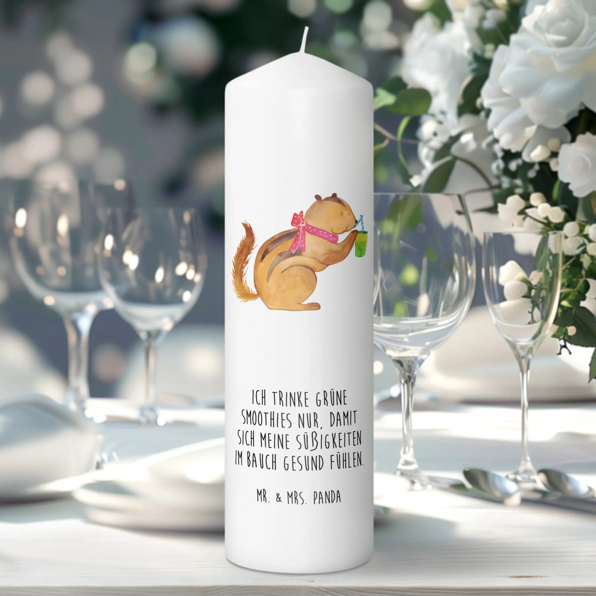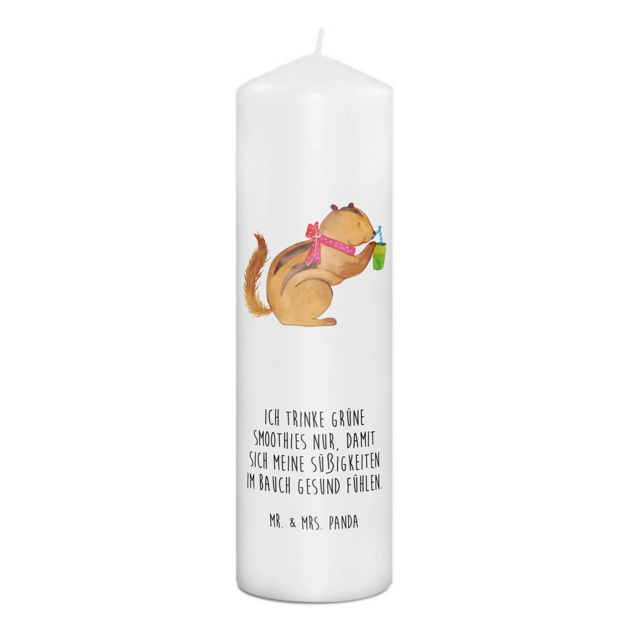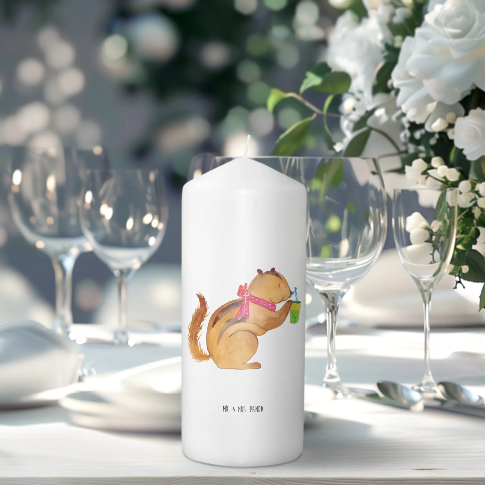 Die Eichhörnchen Smoothie Kerze von Mr. & Mrs. Panda ist ein wahres Highlight für jeden Anlass! Diese wunderschöne Kerze begeistert nicht nur durch ihr liebevolles Design, sondern schafft auch eine ganz besondere Atmosphäre in deinem Zuhause. Mit ihrem niedlichen Motiv eines Eichhörnchens, das genussvoll an einem grünen Smoothie schlürft, zaubert sie dir und deinen Gästen garantiert ein Lächeln ins Gesicht.