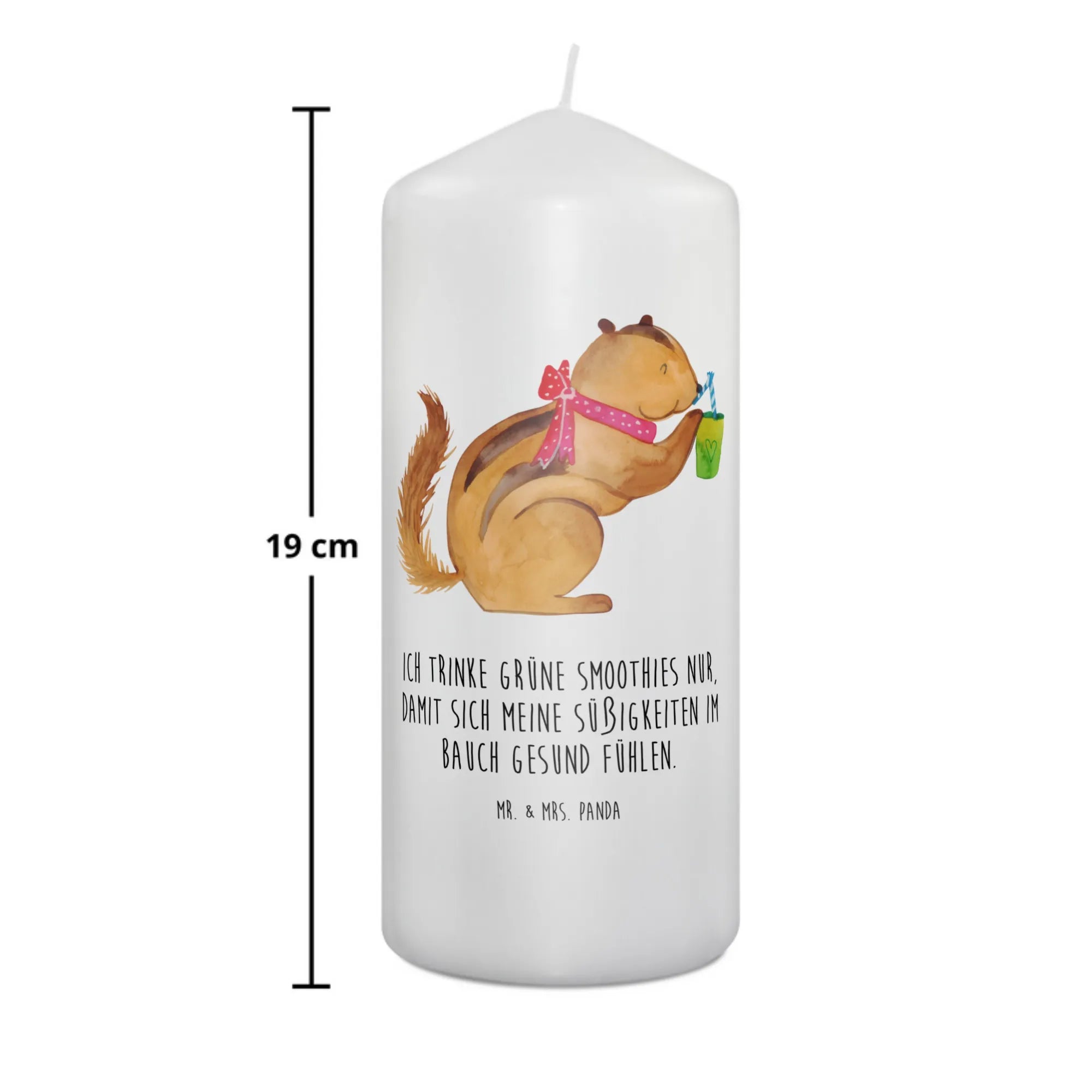 Kerze Eichhörnchen Smoothie - 19 x 8 cm - mit Spruch