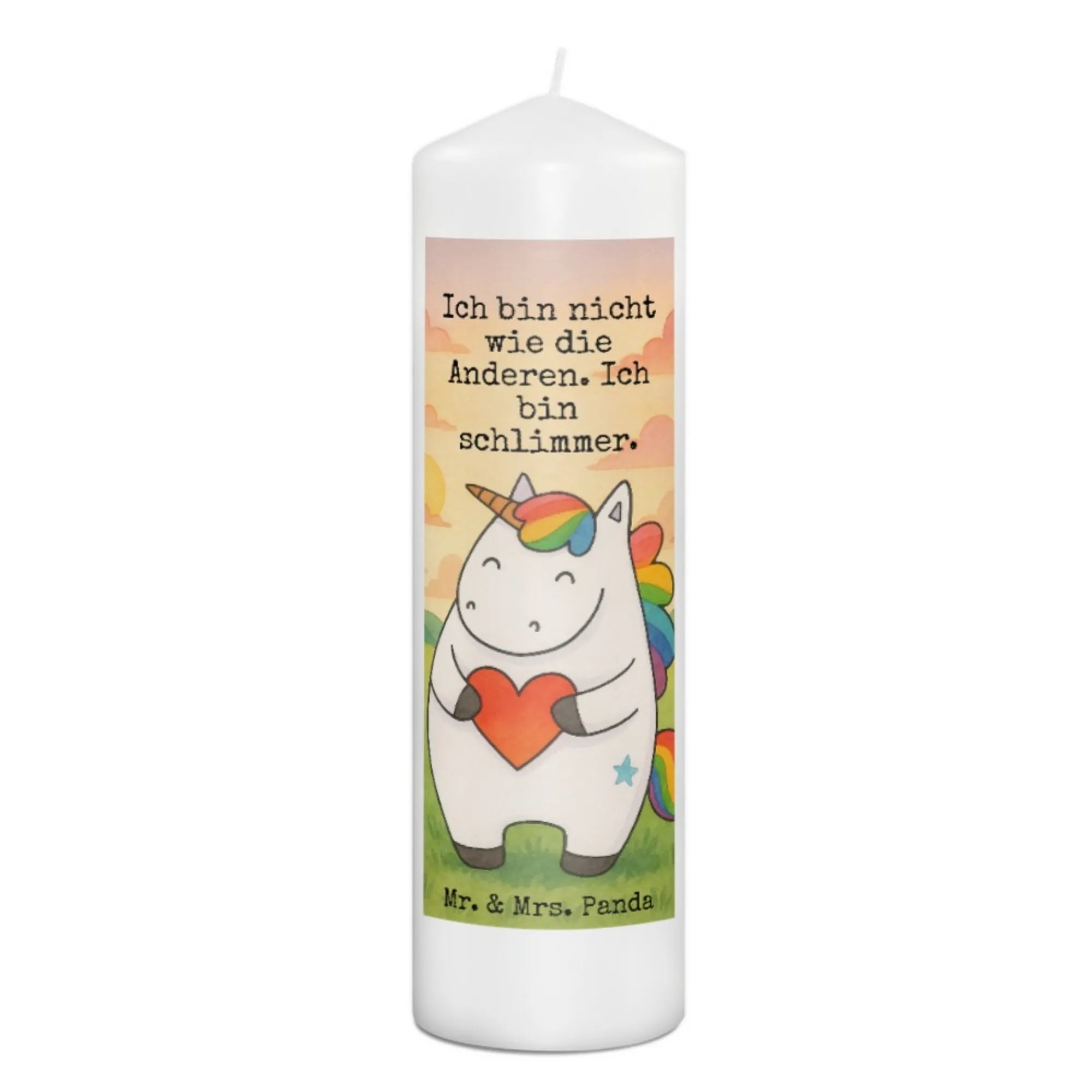 Entdecke die wunderbare Kerze von Mr. & Mrs. Panda, die nicht nur durch ihr Design, sondern auch durch ihre Qualität überzeugt. Mit einer Höhe von 150 mm und einem Durchmesser von 70 mm bringt sie Licht und Wärme in jeden Raum. Die Kerze hat ein Gewicht von 250 g und besteht aus hochwertigem Paraffinwachs, das eine besonders lange Brenndauer garantiert. Jedes liebevoll gestaltete Motiv und jeder Spruch machen sie zum perfekten Geschenk für Geburtstage, Jubiläen oder sogar als Trauerkerze. Während des Abbrennens schmilzt eine hauchdünne, transparente Wachsschicht, die das Design besonders zur Geltung bringt. Ideal für alle, die eine liebevolle und ansprechende Stimmung schaffen möchten.