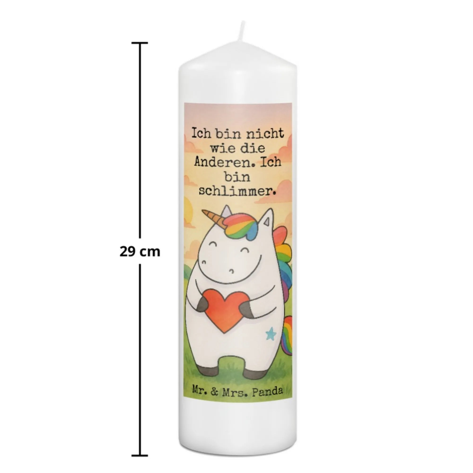 Die stilvolle Kerze von Mr. & Mrs. Panda macht aus jedem Raum ein gemütliches Zuhause! Mit 290 mm Höhe und 80 mm Durchmesser überzeugt sie durch ihr ansprechendes Design. Mit einem Gewicht von 400 g und hergestellt aus hochwertigem Paraffinwachs, spendet sie nicht nur Licht, sondern auch ein wohltuendes Ambiente. Die einzigartigen Sprüche und niedlichen Designs bringen Freude und Wärme in den Alltag. Die hauchdünne Wachsschicht schmilzt beim Abbrennen und sorgt für wunderschöne Lichteffekte. Ideal als Geschenk für Geburtstage oder Jubiläen, und auch als Trost in schweren Zeiten als Trauerkerze verfügbar. Achten Sie darauf, sanfte Reinigungsmittel zu verwenden, um die Kerze zu pflegen und ihre Schönheit zu bewahren.