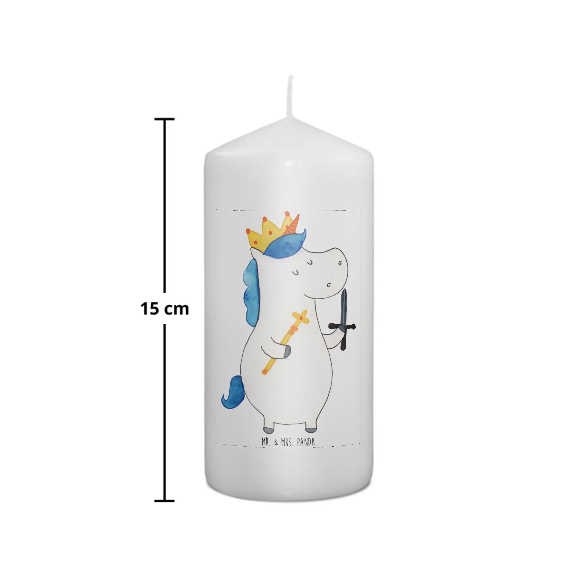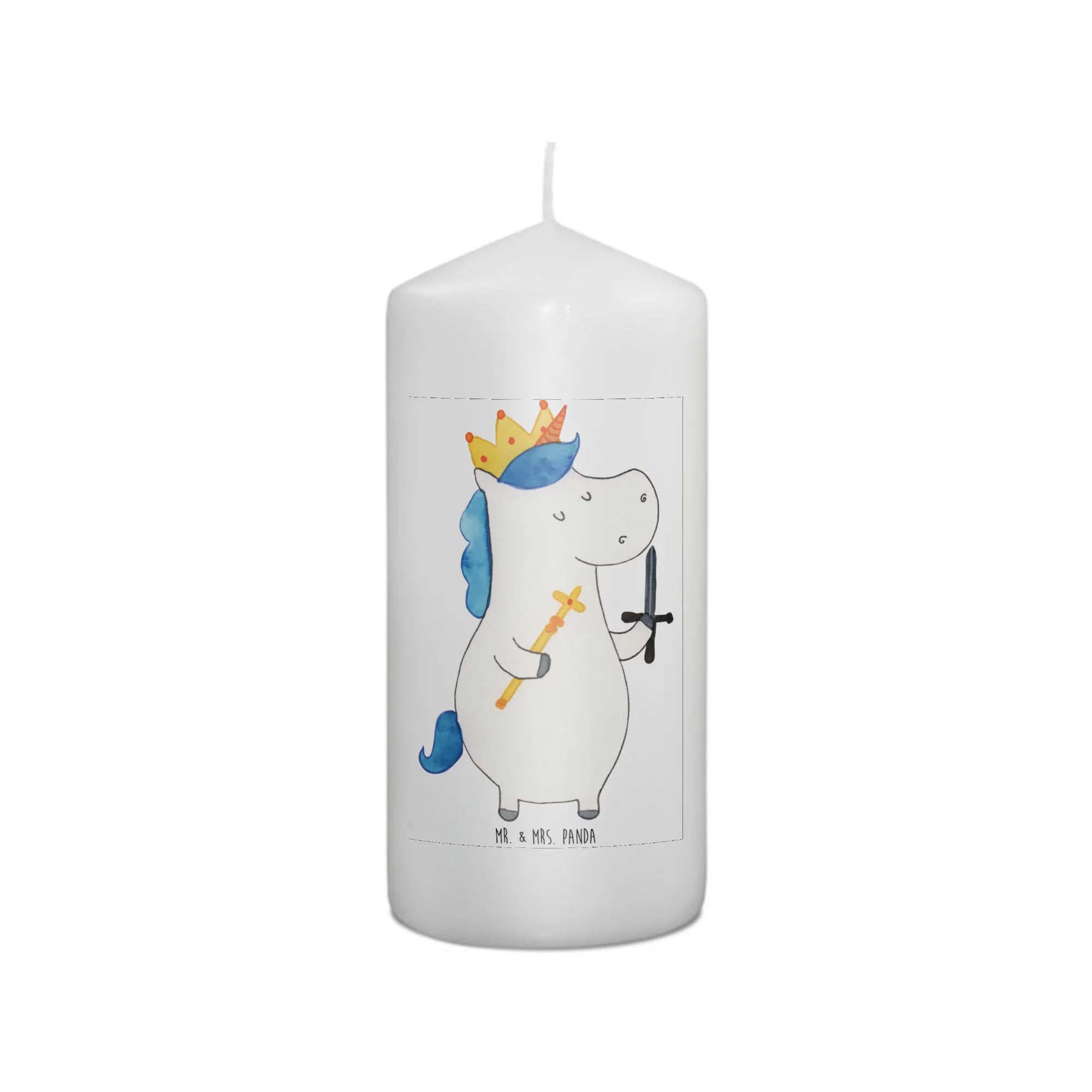 Die wunderschöne Kerze "Einhorn König mit Schwert" aus der zauberhaften Einhorn-Kollektion von Mr. & Mrs. Panda ist das perfekte Geschenk für kleine Feen und Prinzen, die Abenteuer lieben. Ob zur Taufe, zur Kommunion oder als besonderes Geburtstagsgeschenk – diese edle und einzigartige Kerze wird mit Sicherheit die Herzen der Kleinen erobern.