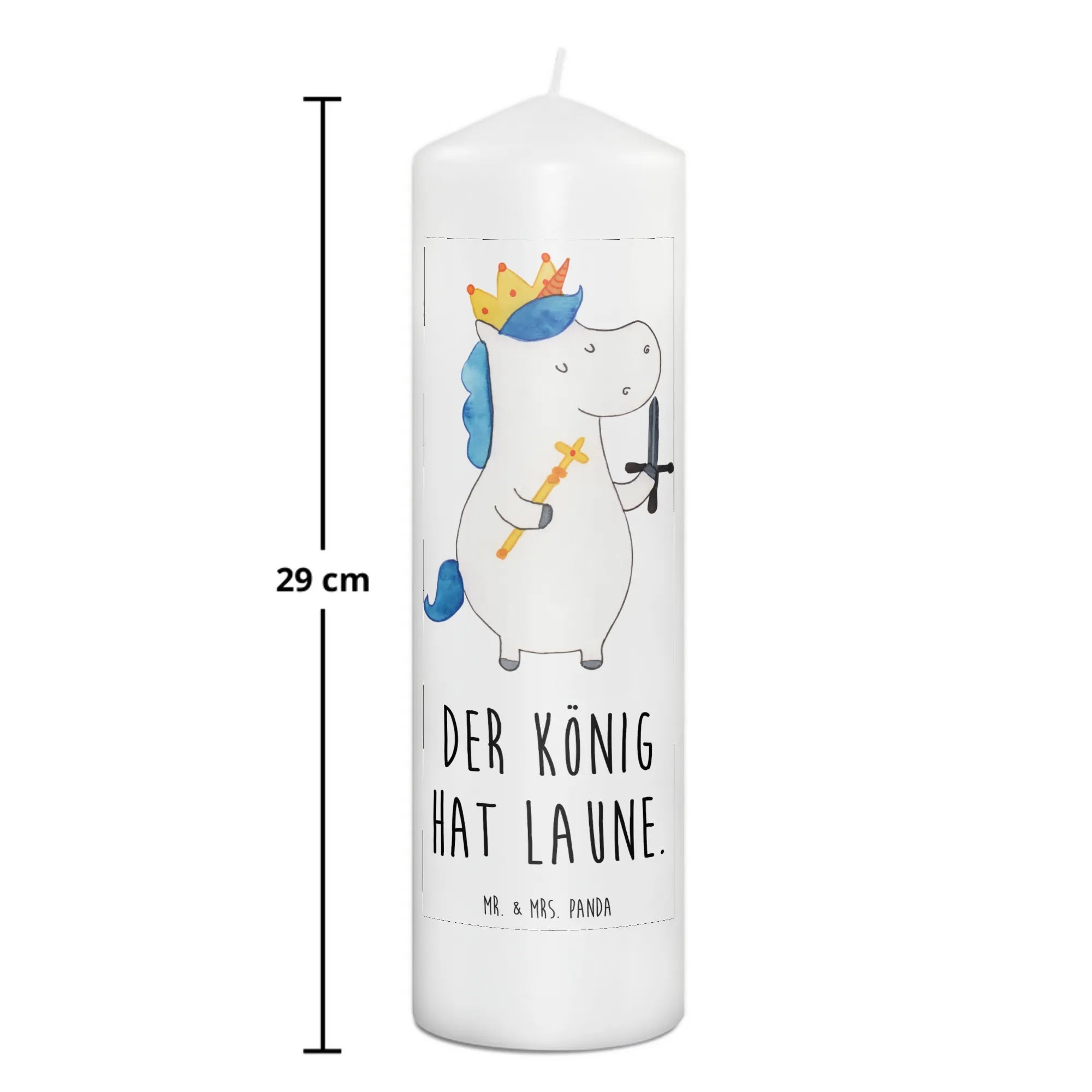 Sorge für die richtige Pflege dieser besonderen Kerze, indem du sie vorsichtig mit sanften Reinigungsmitteln reinigst, damit sie lange schön bleibt. Tu etwas Besonderes für dein Lieblingskind oder einen kleinen Freund – mit der Einhorn König Kerze von Mr. & Mrs. Panda bringst du Licht und Freude in ihr Leben.
