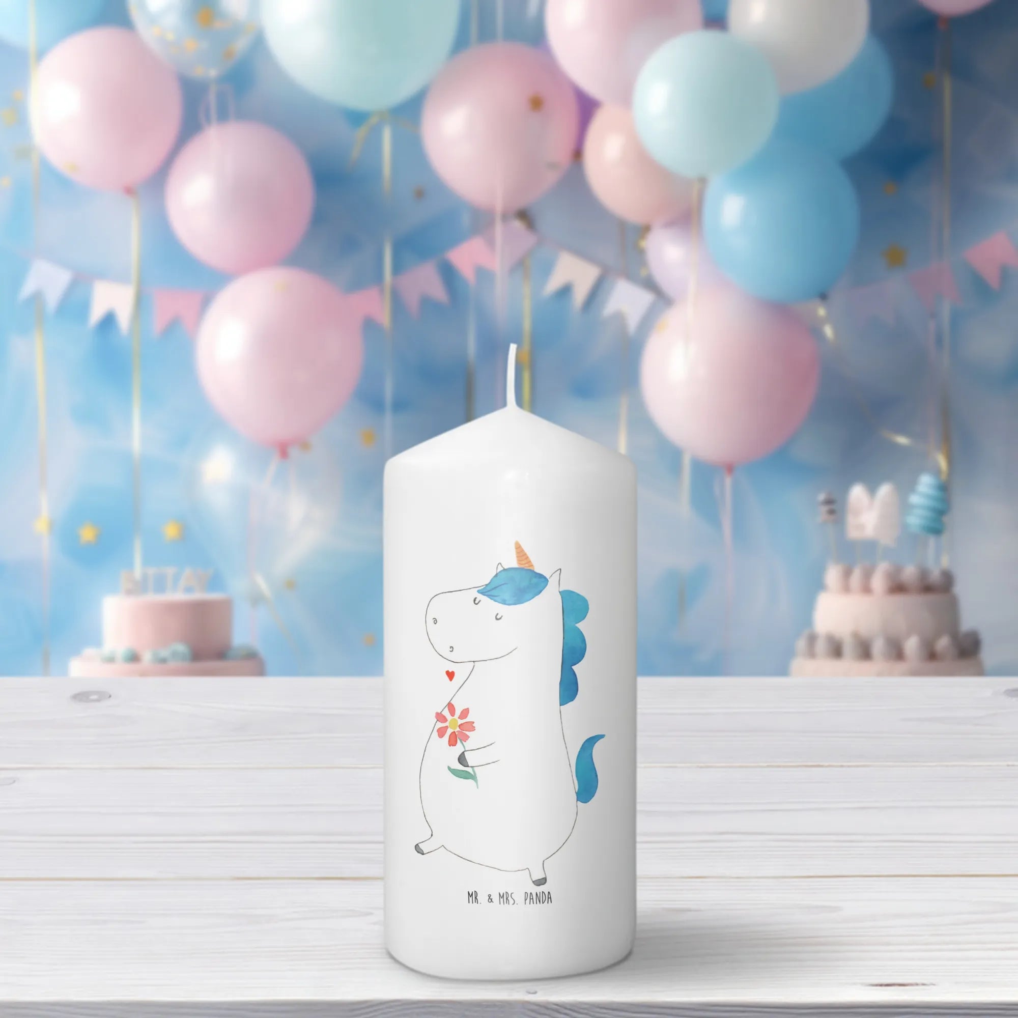 Die zauberhafte Einhorn Spaziergang Kerze von Mr. & Mrs. Panda ist das perfekte Geschenk für viele Anlässe! Mit ihrem liebevoll handgezeichneten Motiv eines Einhorns, das mit einer Blume in der Hand einen fröhlichen Spaziergang macht, versprüht diese besondere Kerze gute Laune und Freude.