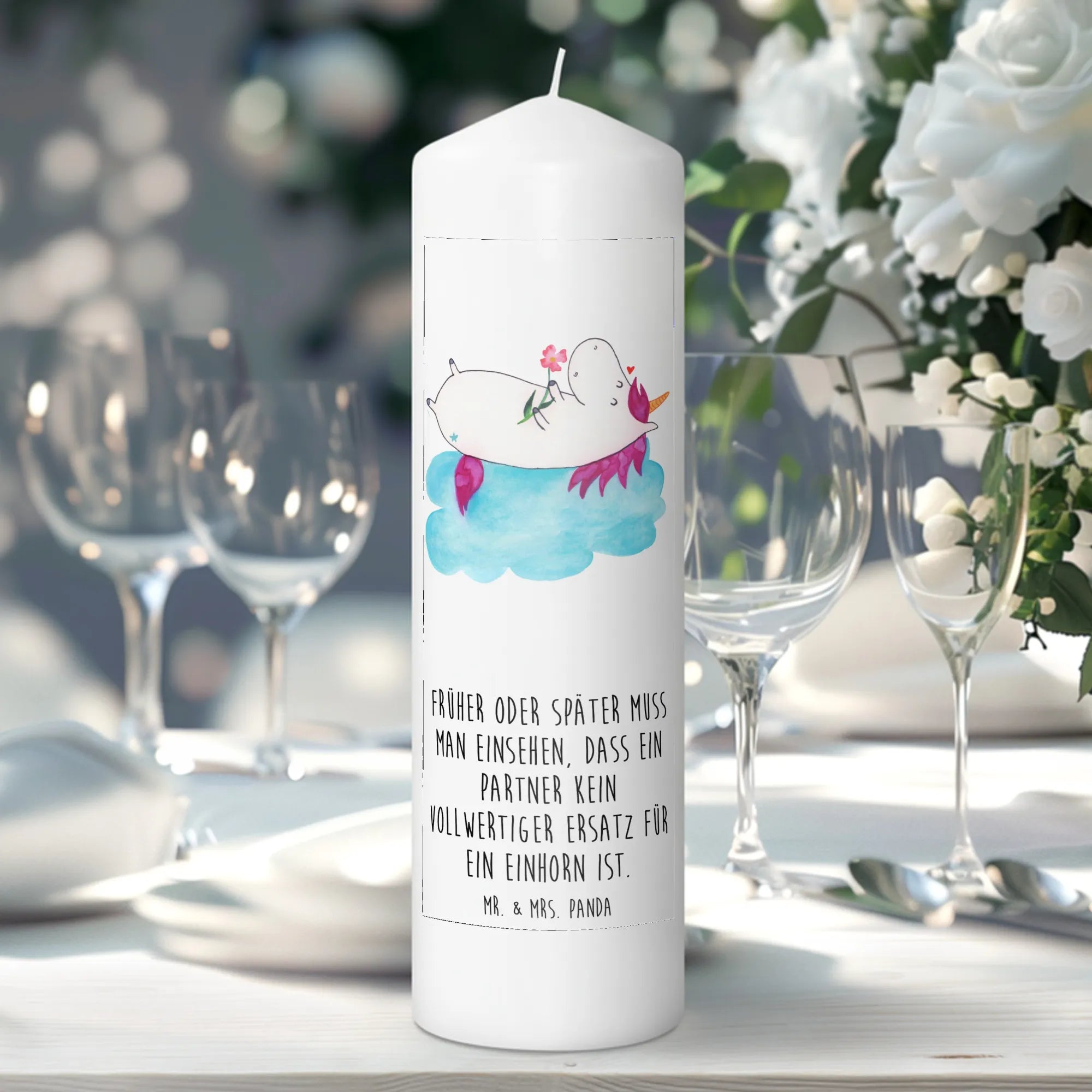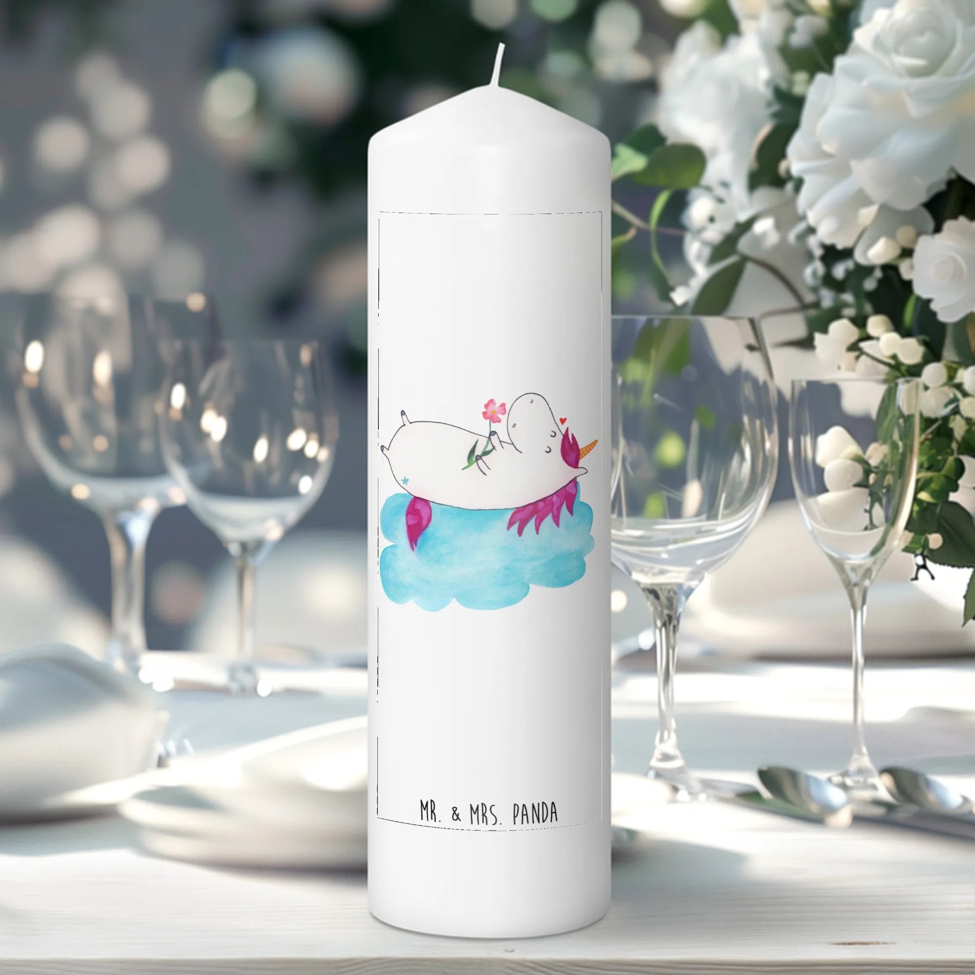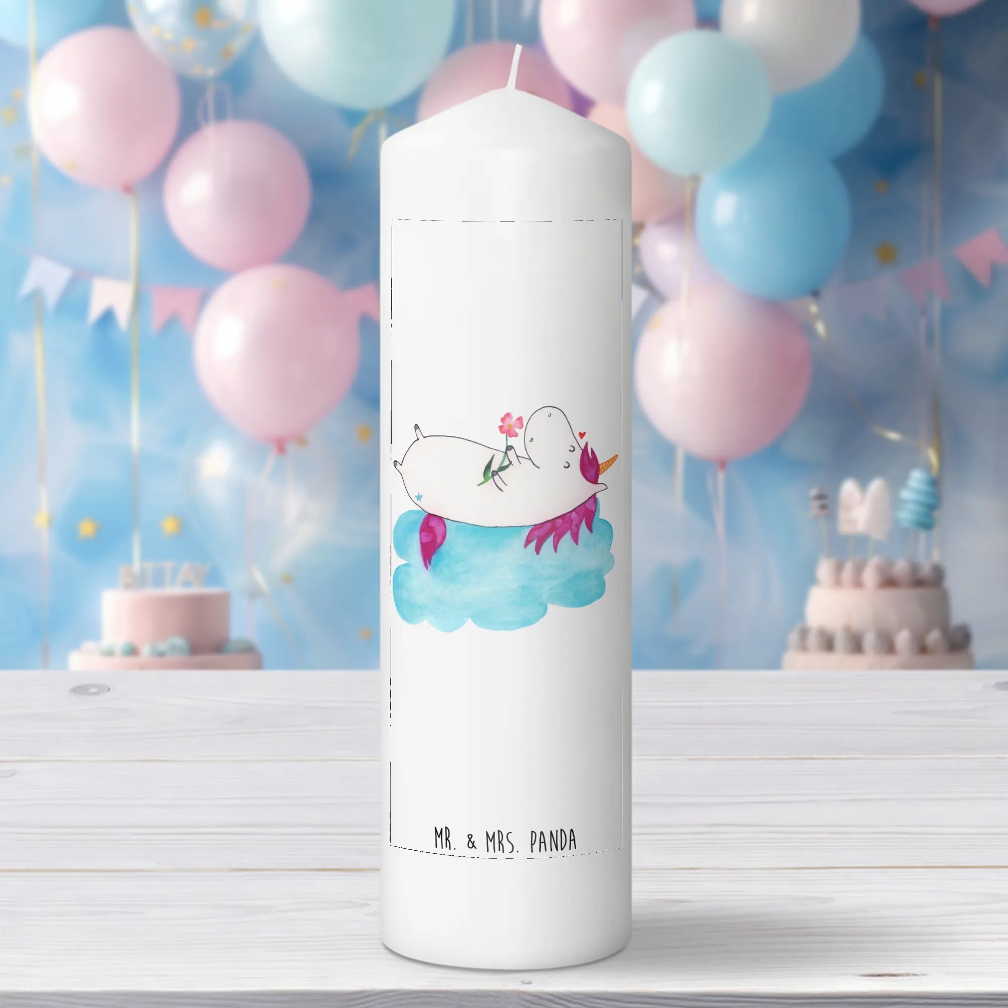Die zauberhafte Taufkerze "Einhorn verliebt auf Wolke" aus der Einhorn-Kollektion von Mr. & Mrs. Panda ist das perfekte Geschenk für alle kleinen Einhorn-Fans!