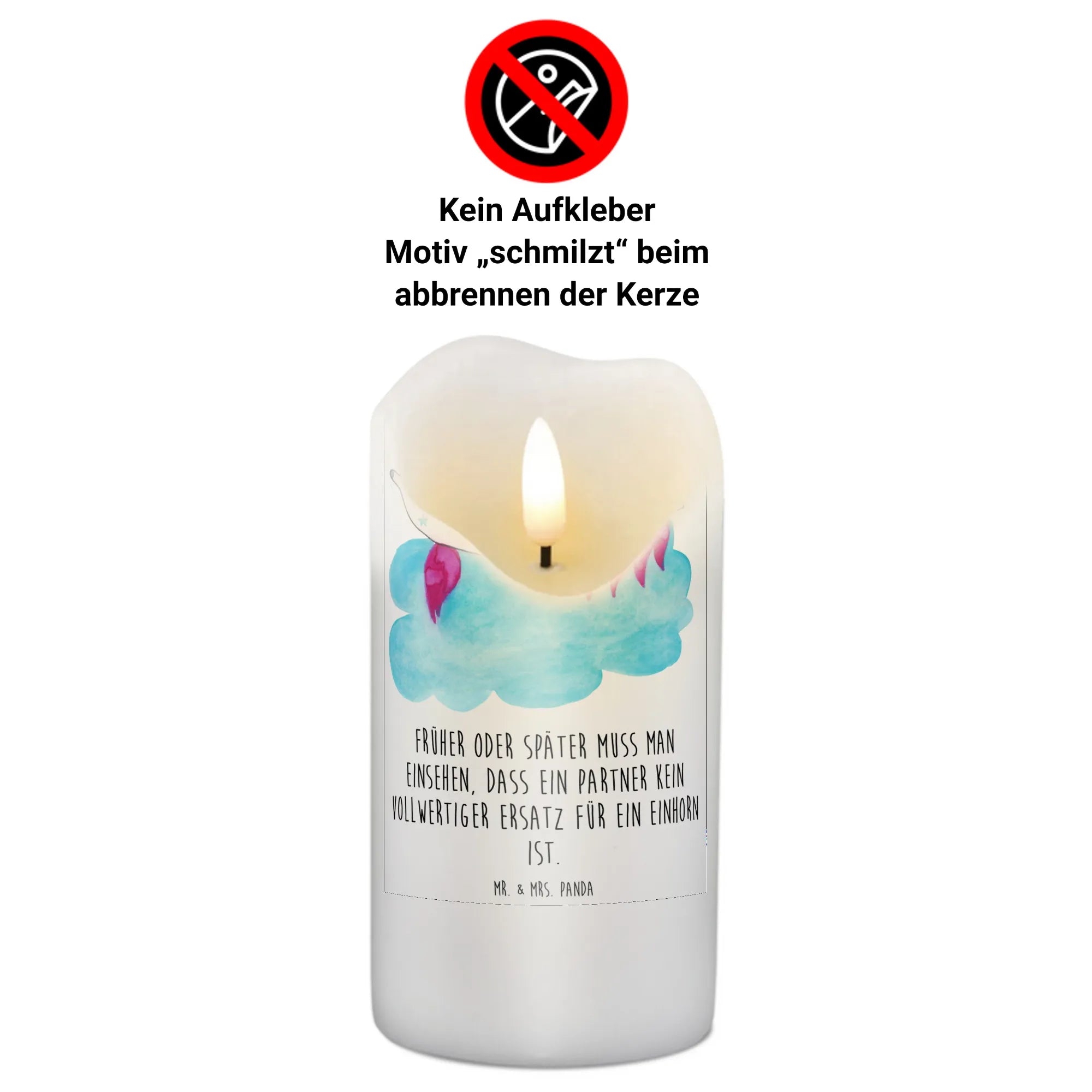 Ein weiteres Highlight dieser Kerze sind die liebevoll gestalteten Sprüche, die Dich und Deine Liebsten zum Lächeln bringen. Die Aufschrift auf der Kerze "Früher oder später muss man einsehen, dass ein Partner kein vollwertiger Ersatz für ein Einhorn ist." ist nicht nur witzig, sondern bringt auch die besondere Beziehung zwischen Menschen und Fabelwesen zum Ausdruck.