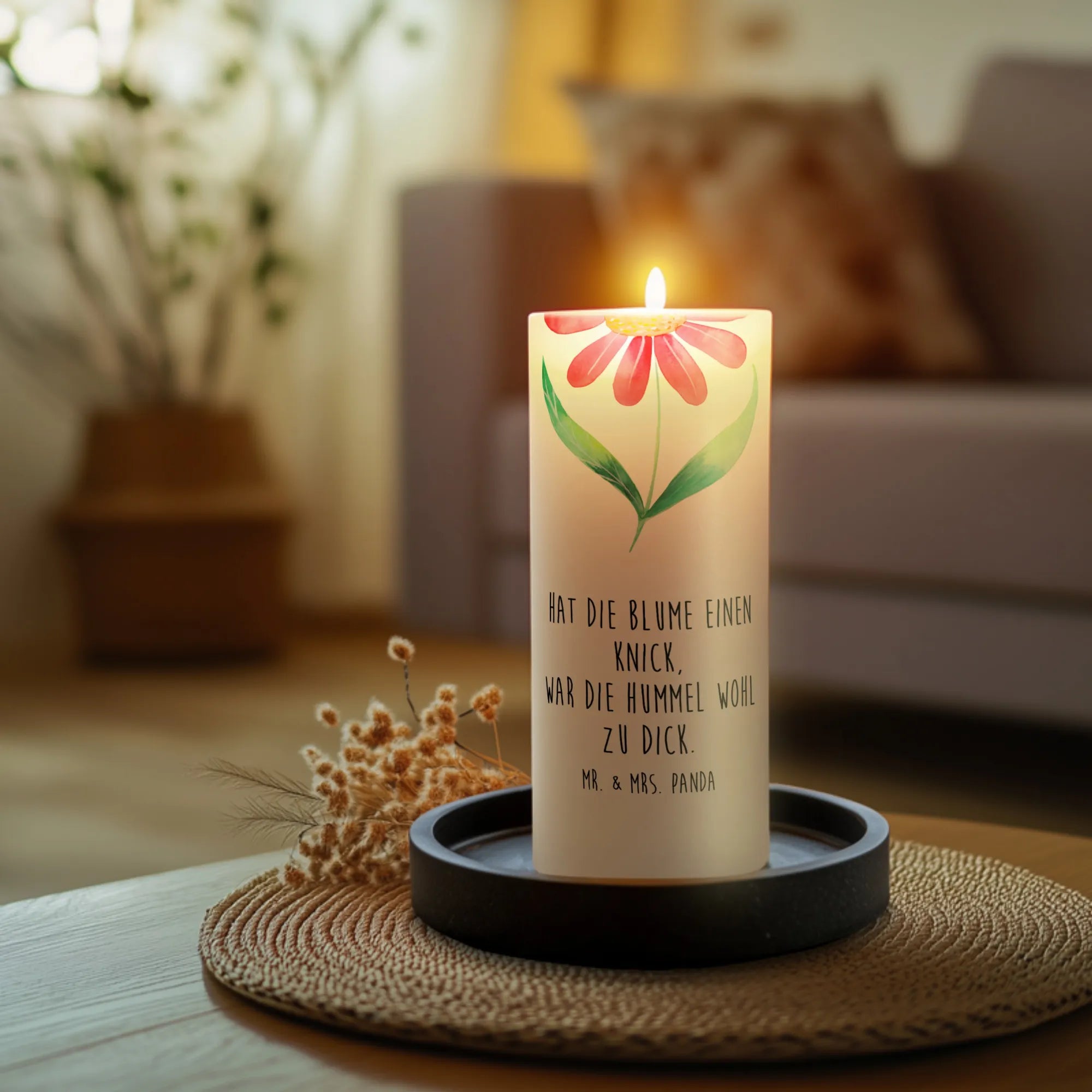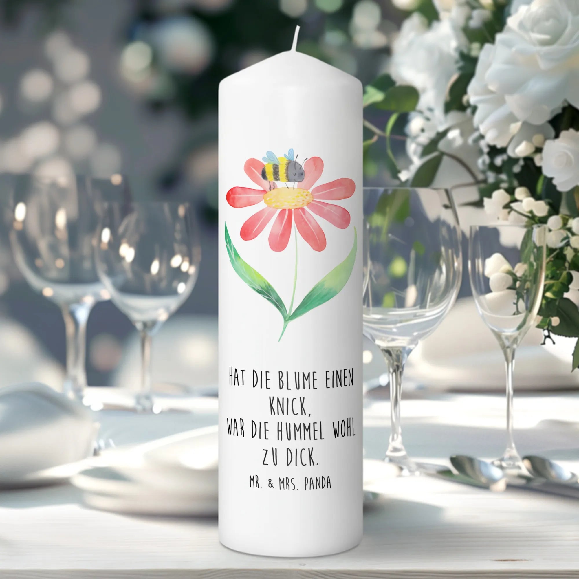 Die Hummel Blume Kerze von Mr. & Mrs. Panda ist das perfekte Geschenk für jeden Anlass! Diese bezaubernde Kerze ist nicht nur ein echter Blickfang, sondern bringt auch gute Laune in dein Zuhause. Die liebevoll handgezeichnete Hummel auf einer strahlenden Blume entfaltet ein fröhliches Summen der Natur.