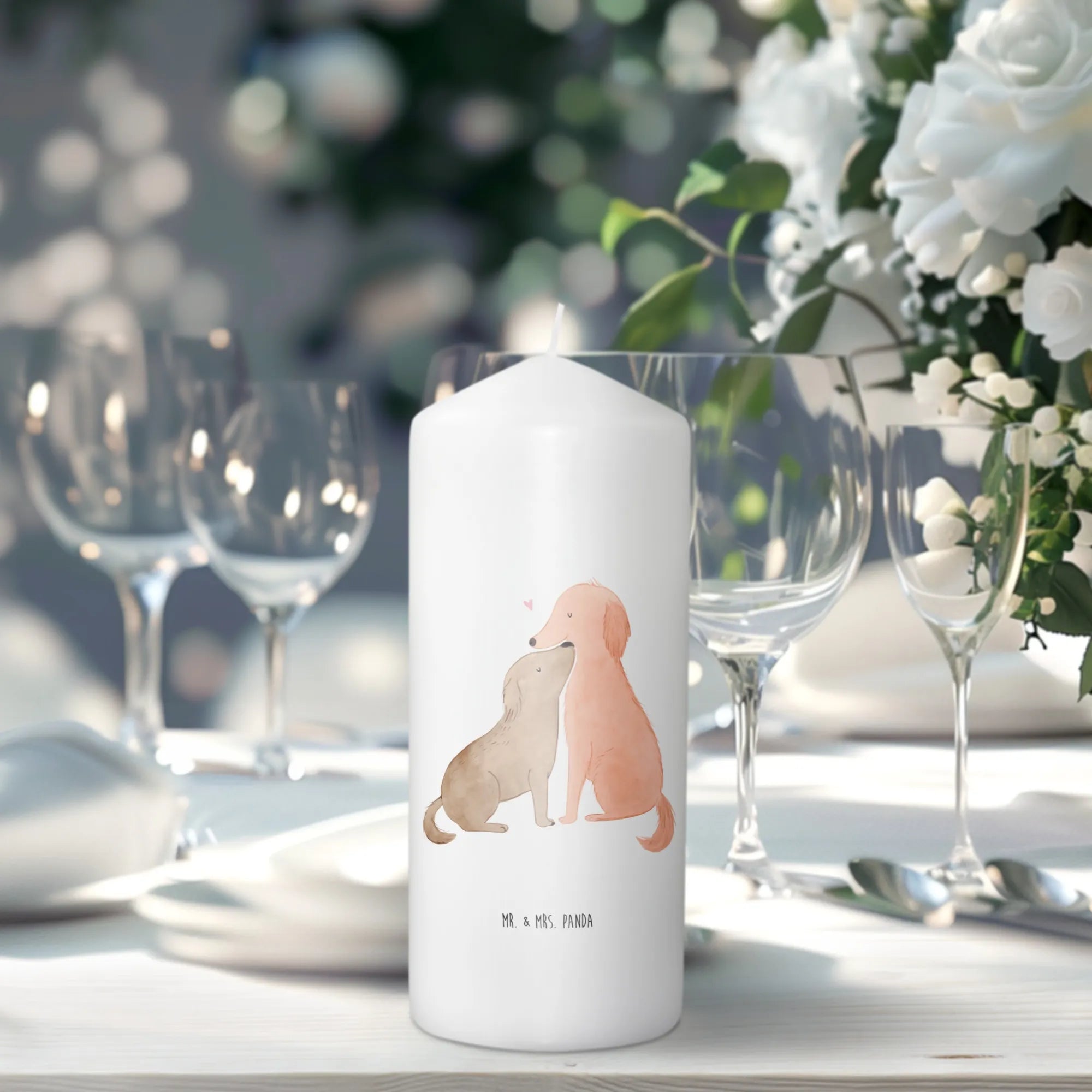 Eine edle und wunderschöne Kerze von Mr. & Mrs. Panda, die nicht nur als Geburtstagskerze, sondern auch als Taufkerze oder zur Kommunion perfekt geeignet ist. Diese besondere Kerze mit dem Motiv 'Hunde Liebe' ist ideal für Hundeliebhaber und Tierbesitzer.