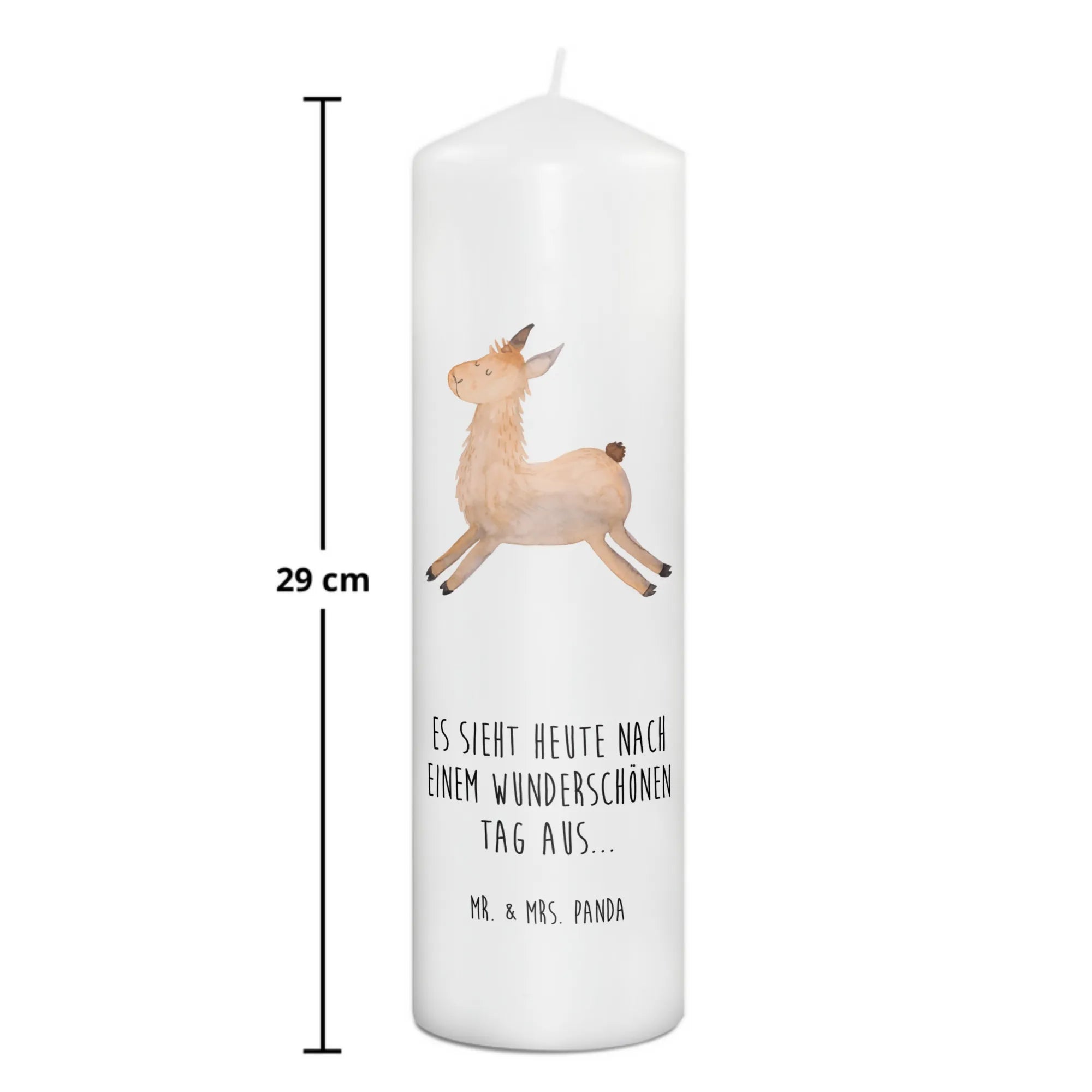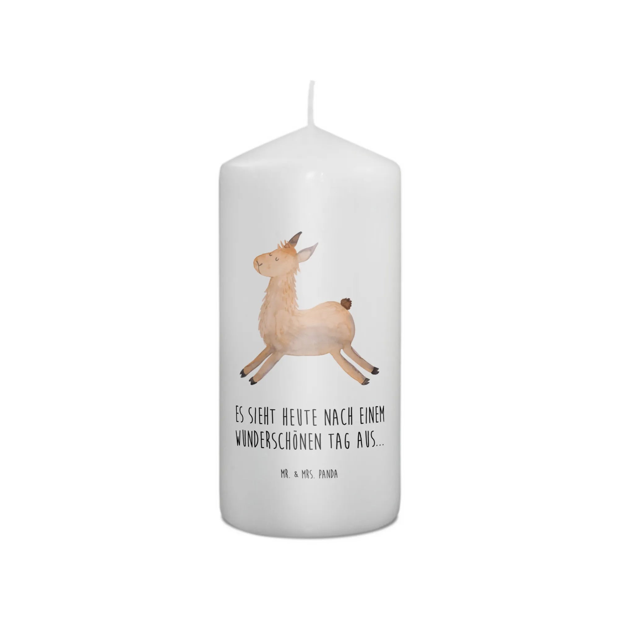 Mach Deinen Lieben eine Freude und schaffe besondere Erinnerungen mit der bezaubernden Taufkerze Lama springend von Mr. & Mrs. Panda. Die perfekte Geschenkkerze für jeden Anlass, die Freude und Glück in jedes Zuhause bringt!