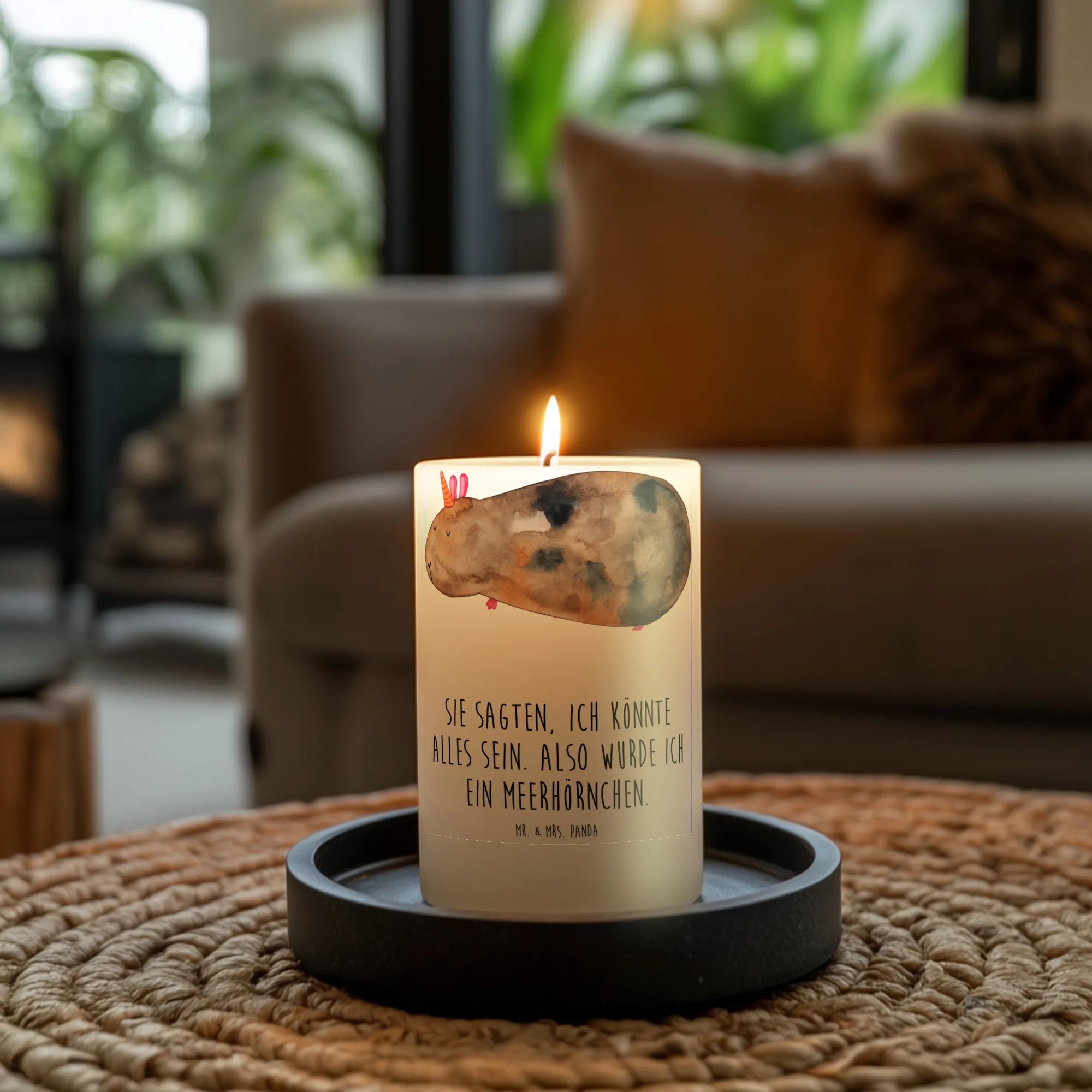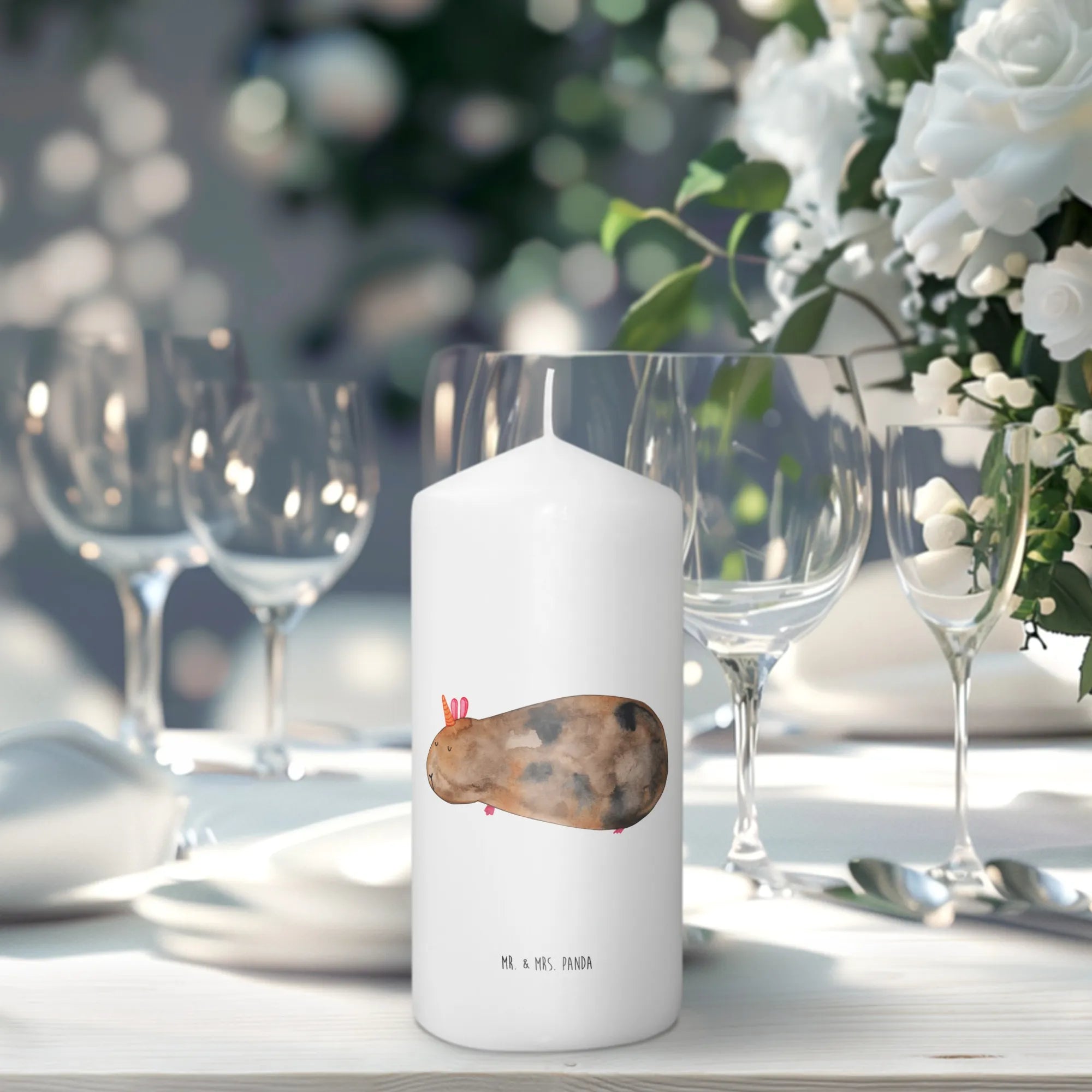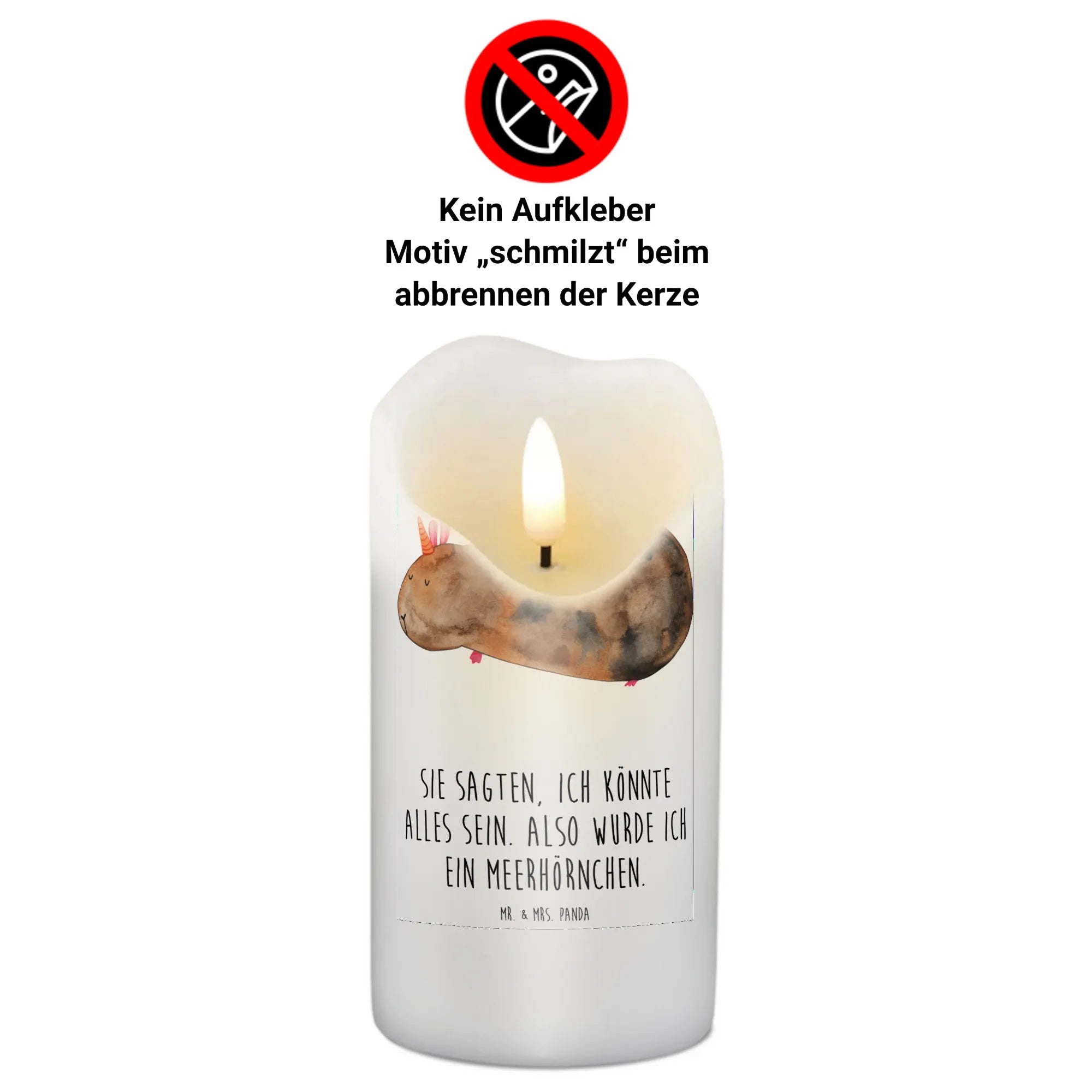 Mit den Maßen von 190 mm x 80 mm passt sie perfekt in jedes Zuhause und bringt fröhliche Stimmung in jeden Raum. Du kannst diese besondere Kerze zu vielen Anlässen verschenken, sei es zur Taufe, zur Kommunion, zum Geburtstag oder einfach als kleine Aufmerksamkeit für einen lieben Menschen. Das niedliche Meerhörnchen, das von Mrs. Panda handgezeichnet wurde, zaubert jedem ein Lächeln ins Gesicht.