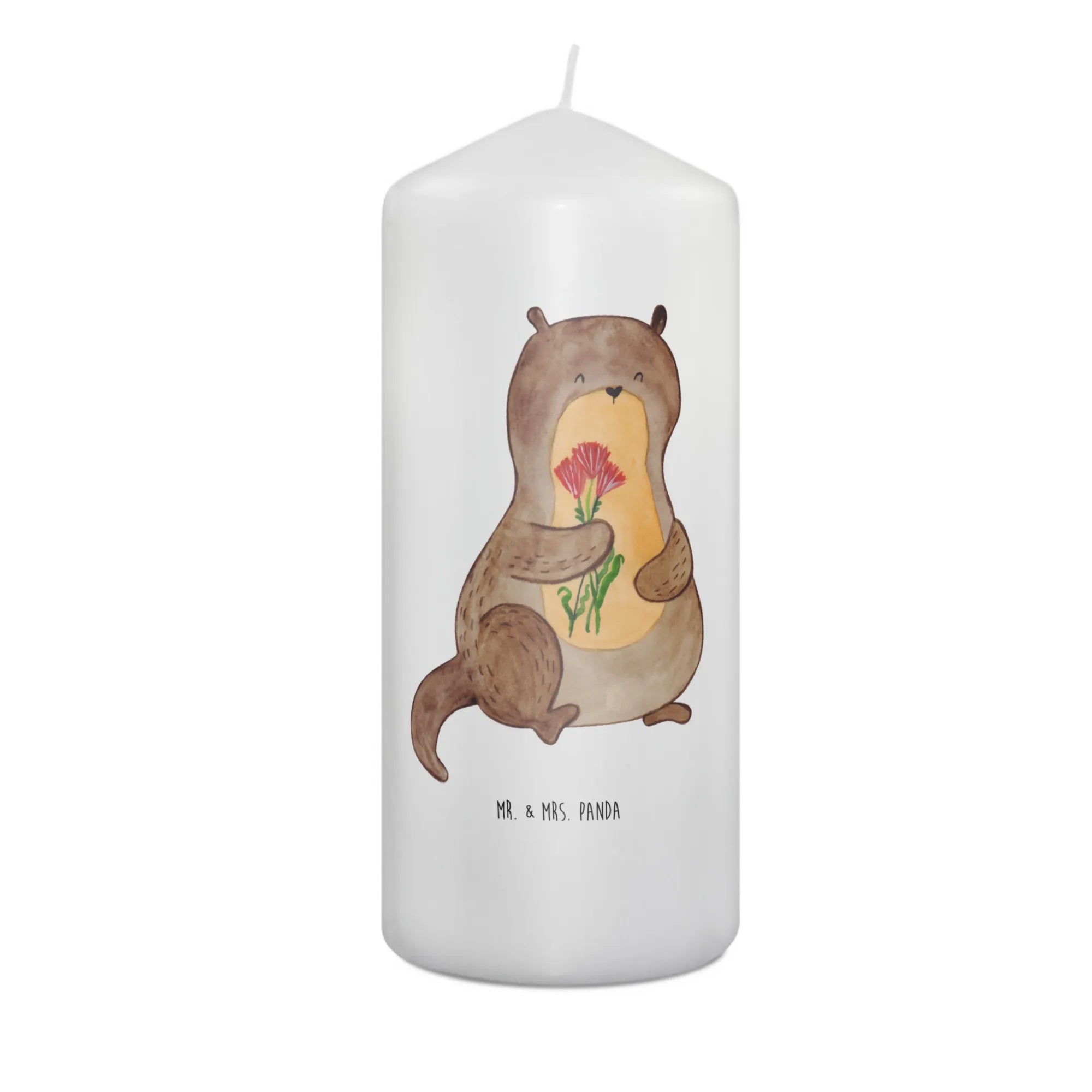 Kerze Otter Blumenstrauß - 15 x 7 cm - mit Spruch