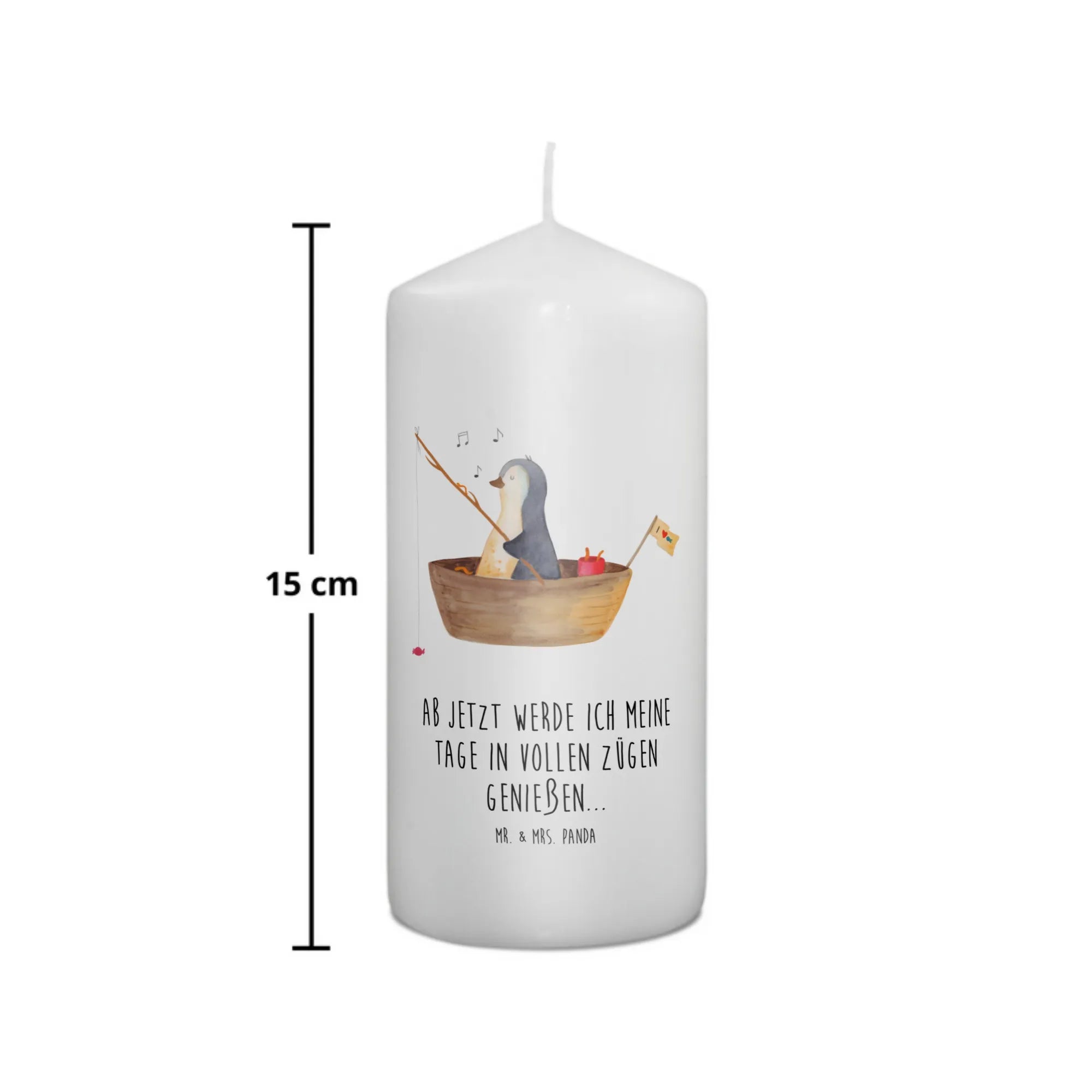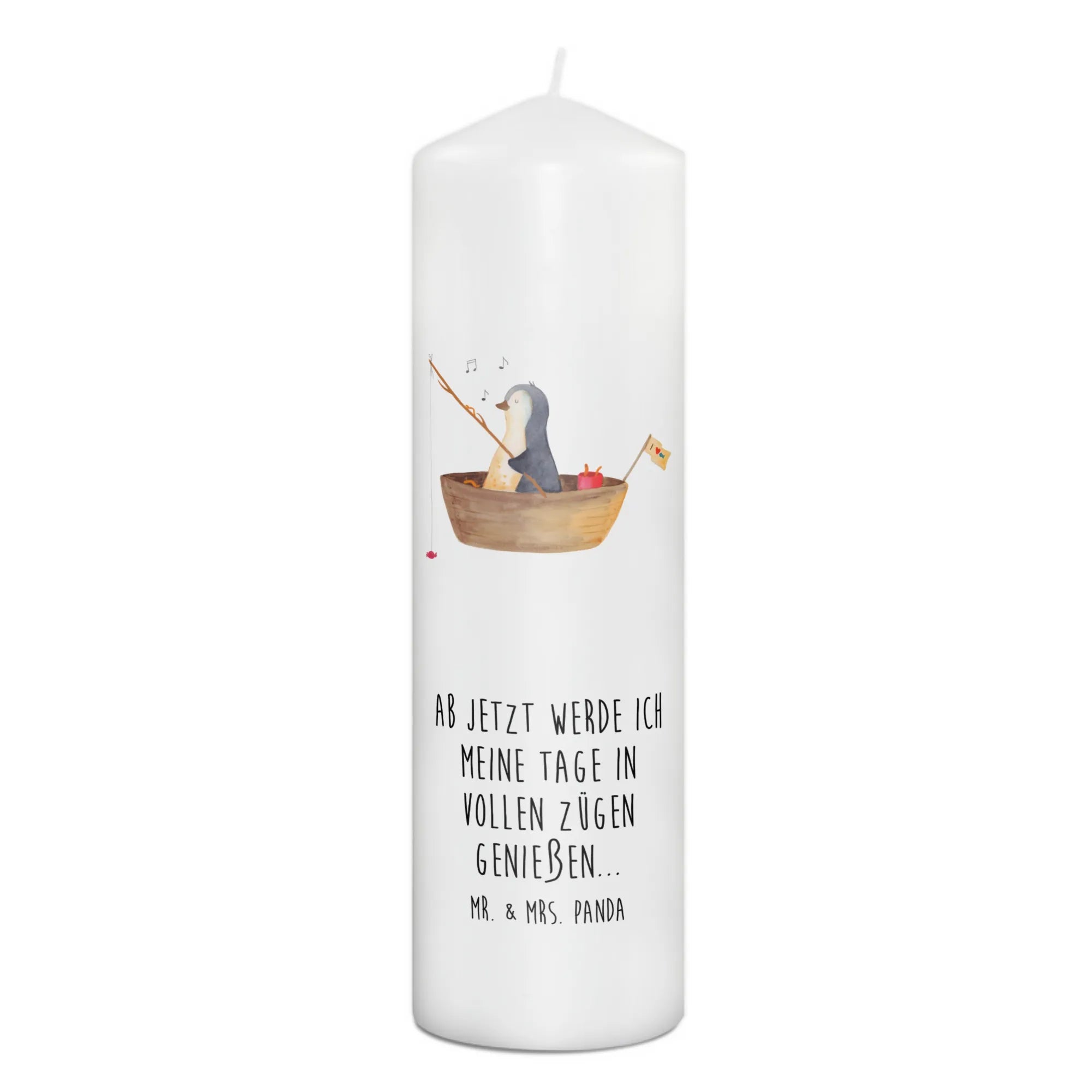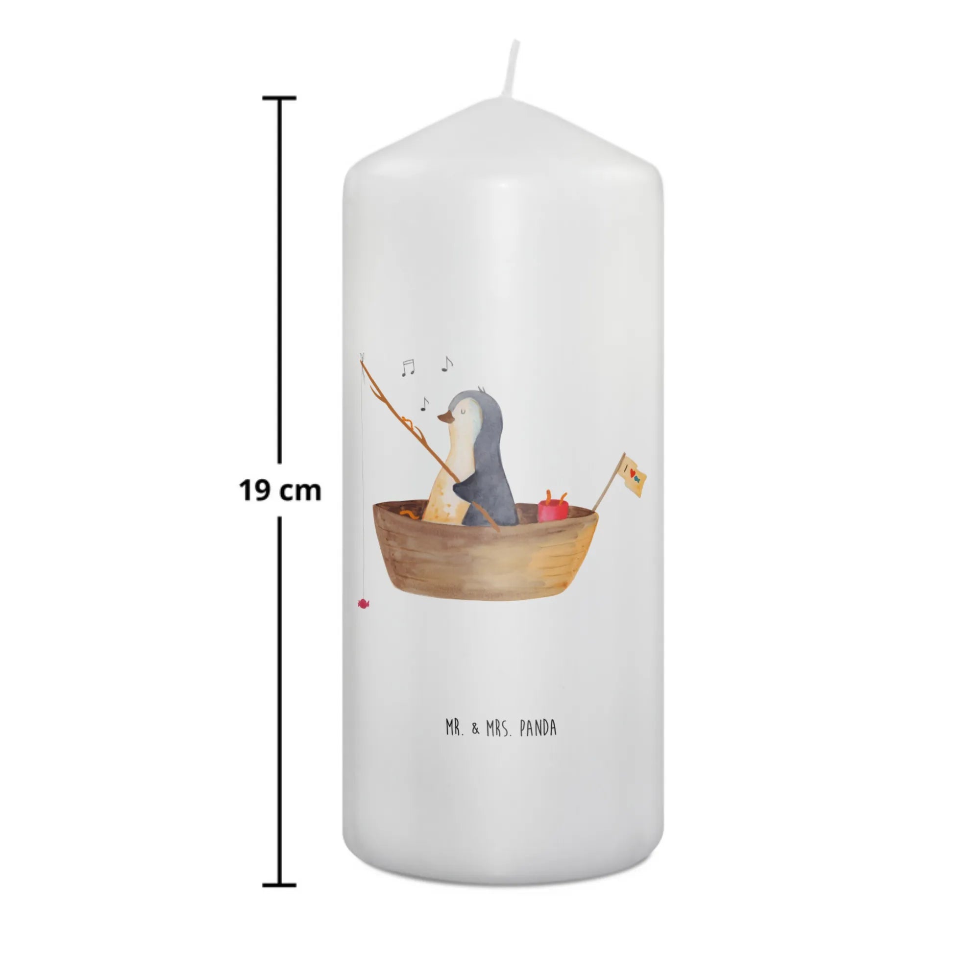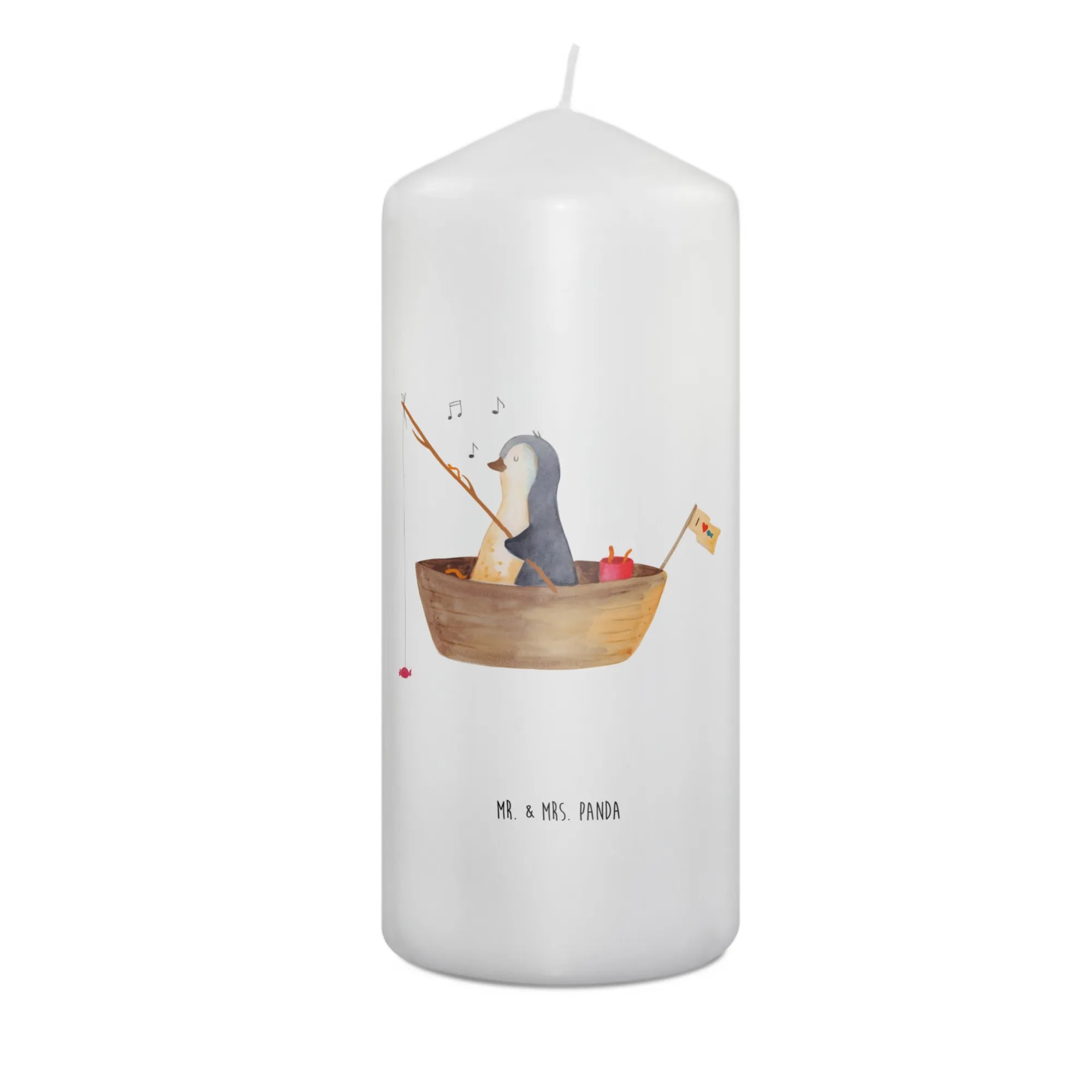 Mr. & Mrs. Panda Kerze „Pinguin Angelboot“ – eine liebevoll illustrierte Dekokerze, die Herzen erwärmt. Unser süßer Pinguin ist in einem kleinen Angelboot unterwegs und angelt Bonbons. Dieses fröhliche Motiv verbreitet sofort Lebensfreude und sorgt für ein Lächeln, egal ob zu Hause oder im Büro.