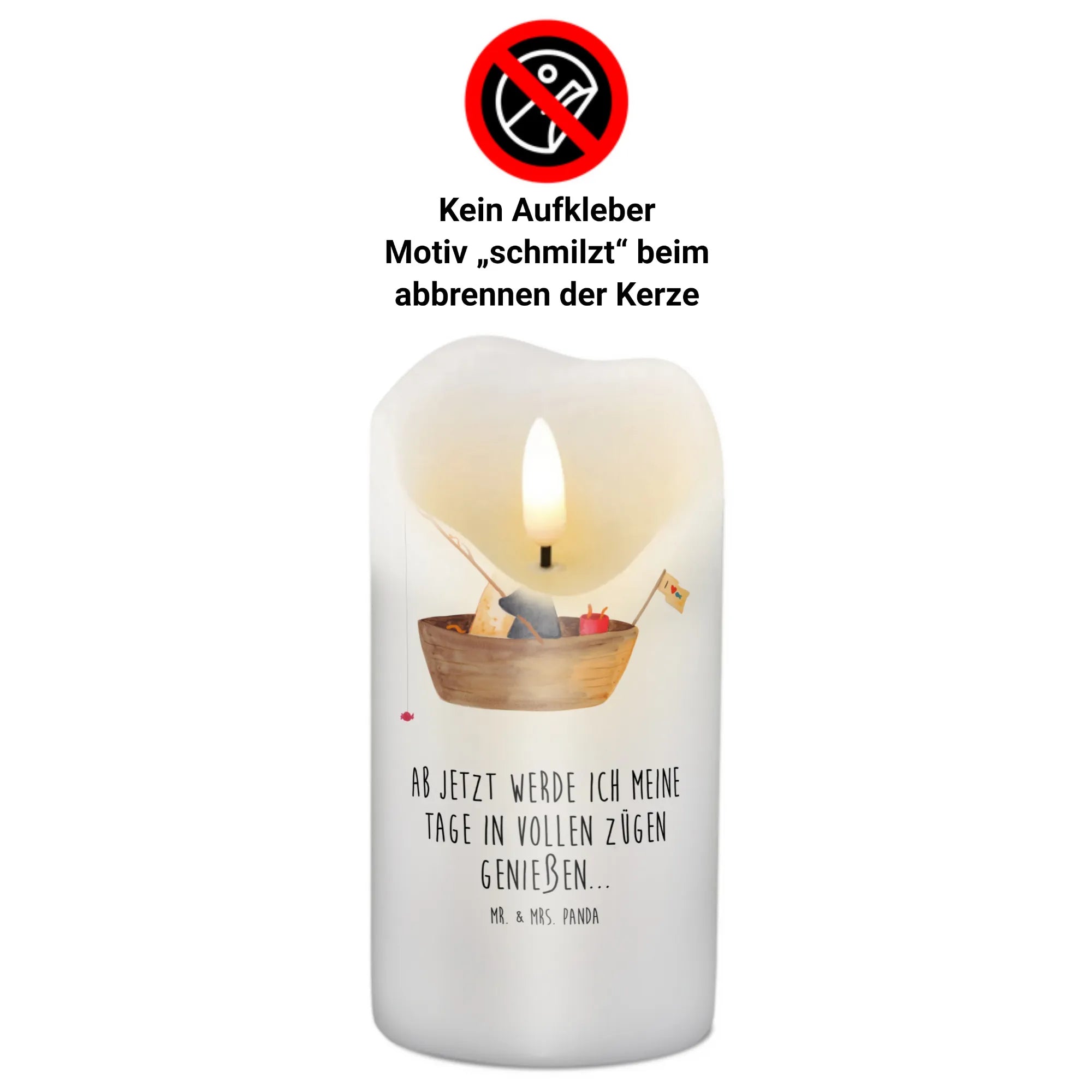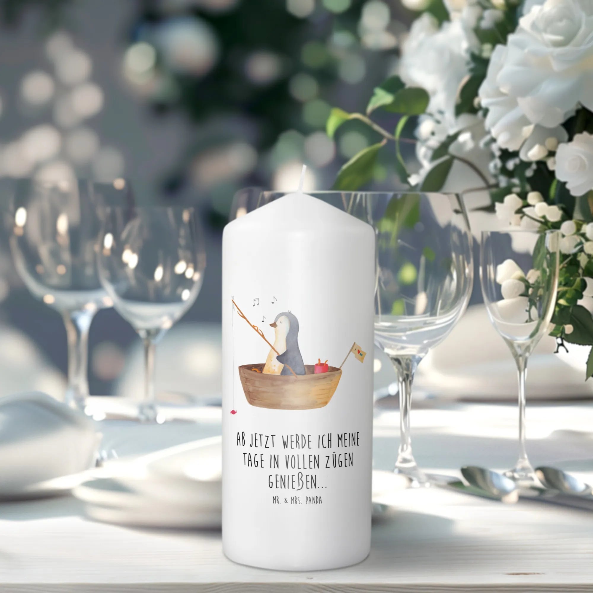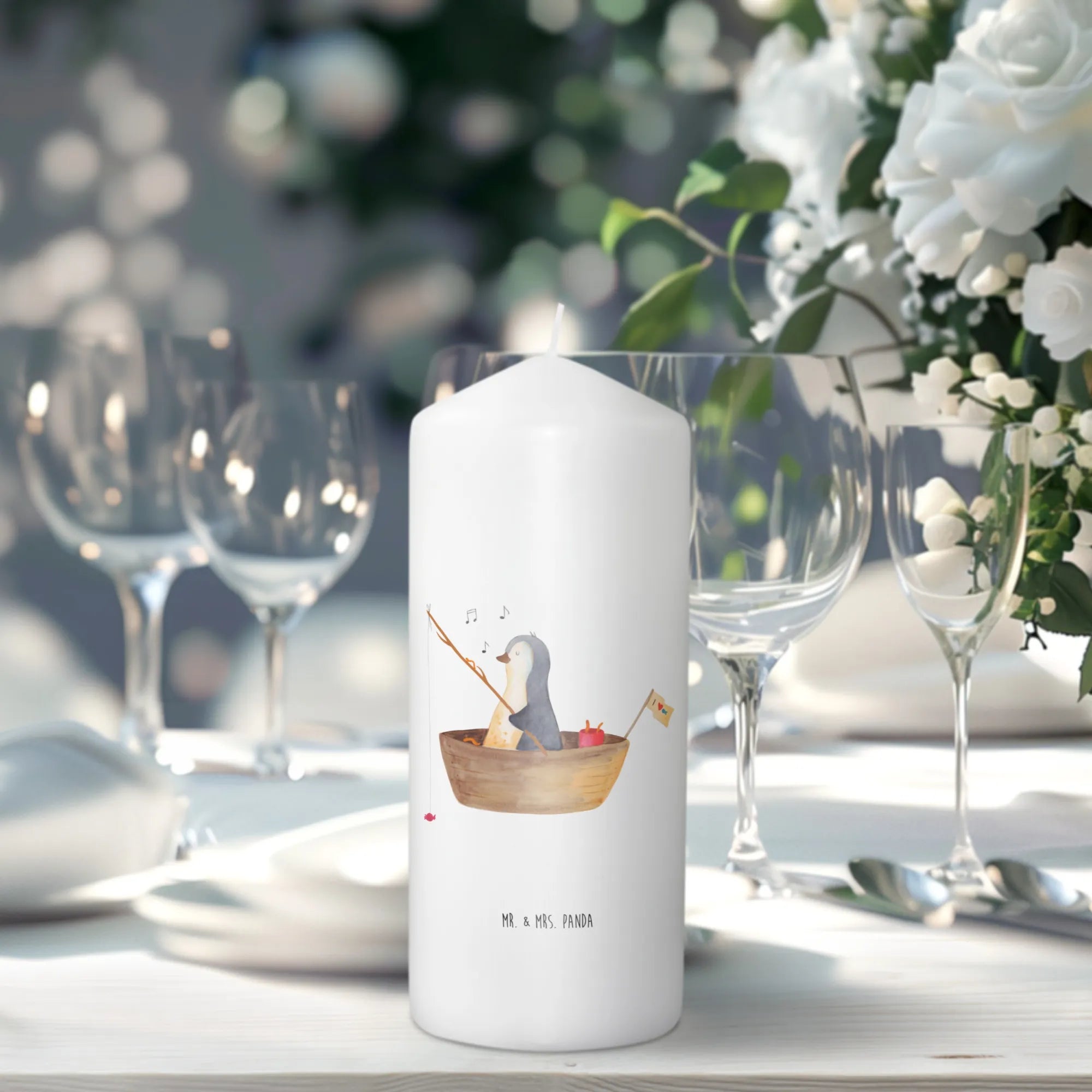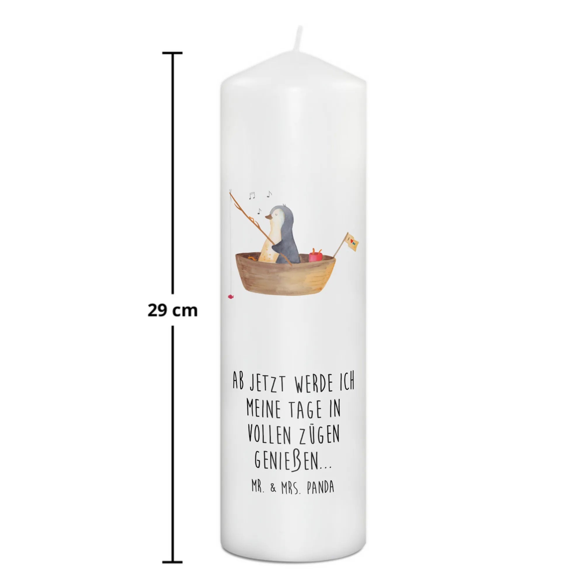 Mr. & Mrs. Panda Kerze „Pinguin Angelboot“ – eine liebevoll illustrierte Dekokerze, die Herzen erwärmt. Unser süßer Pinguin ist in einem kleinen Angelboot unterwegs und angelt Bonbons. Dieses fröhliche Motiv verbreitet sofort Lebensfreude und sorgt für ein Lächeln, egal ob zu Hause oder im Büro.