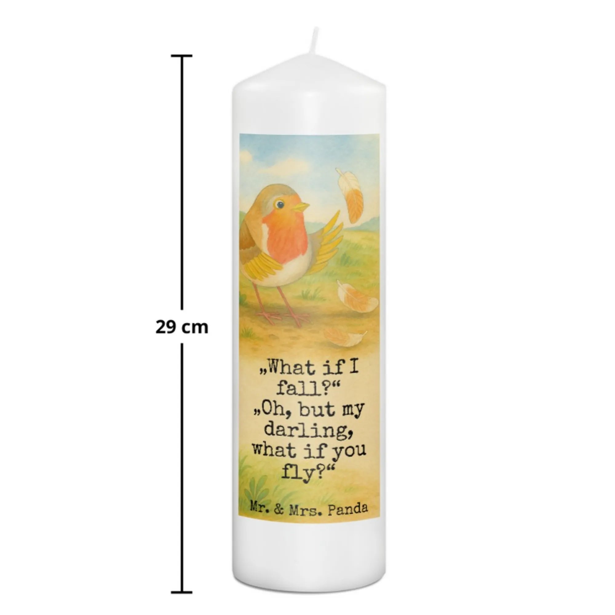 Kerze Rotkehlchen Federn Design - 15 x 7 cm - mit Spruch