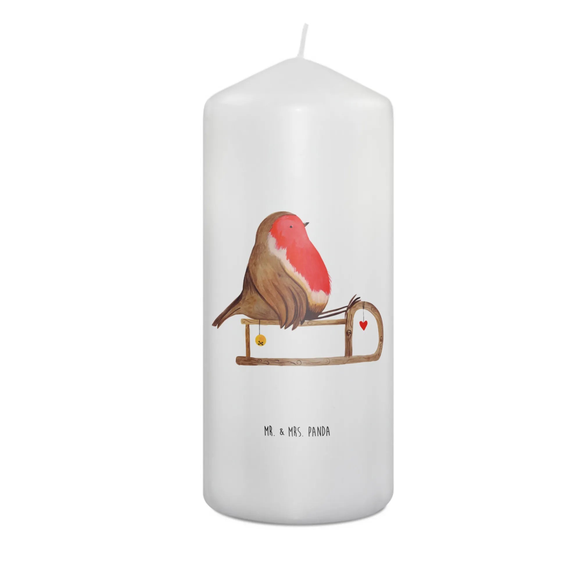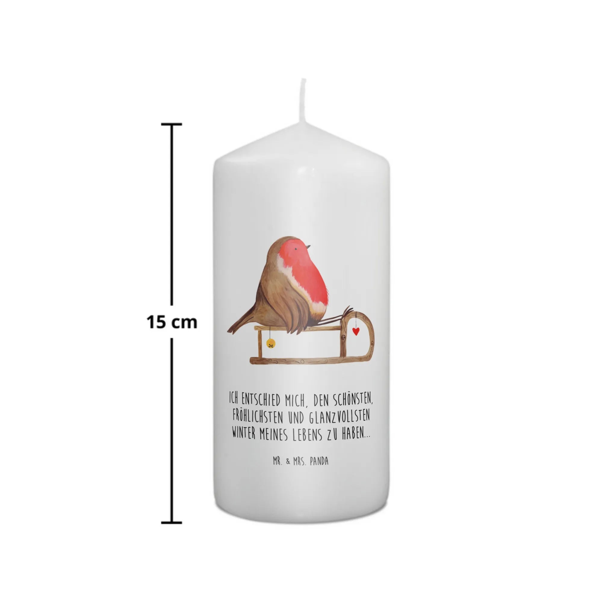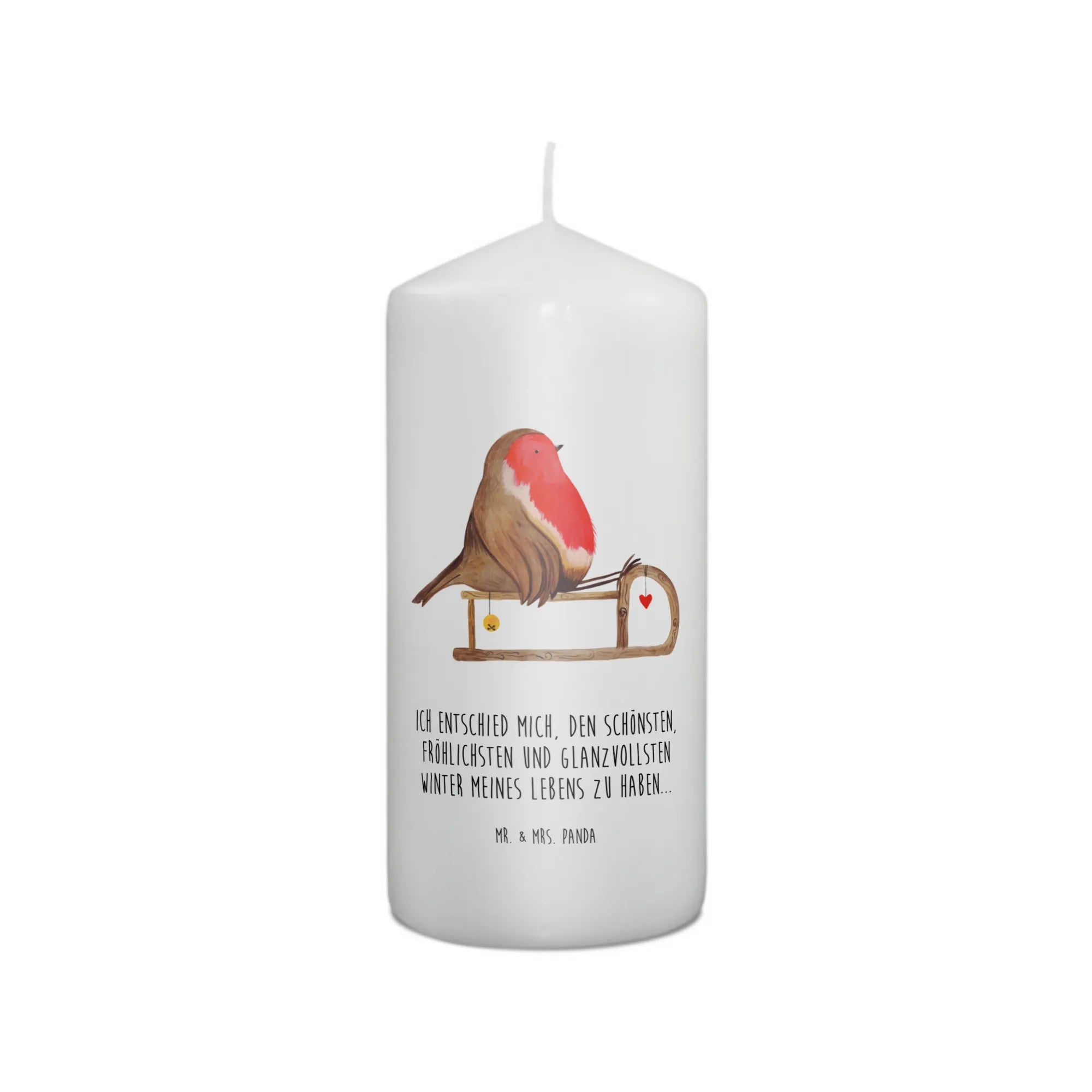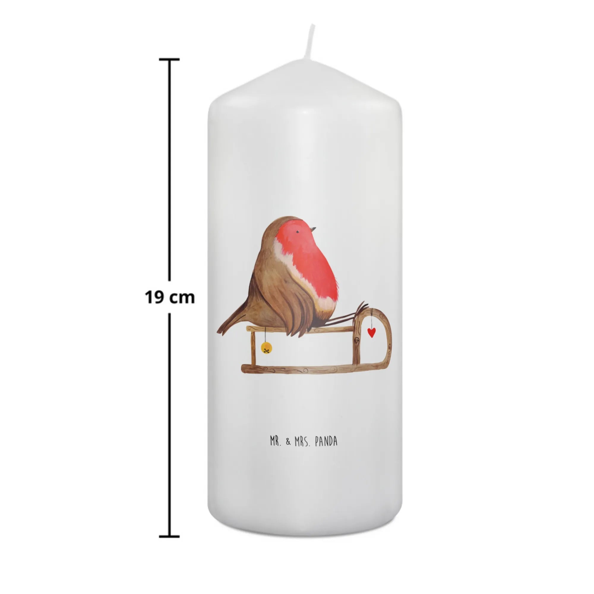 Die Kerze mit dem süßen Rotkehlchen auf dem Schlitten aus der Winter Kollektion von Mr. & Mrs. Panda ist die perfekte Geschenkidee für die kalte Jahreszeit.