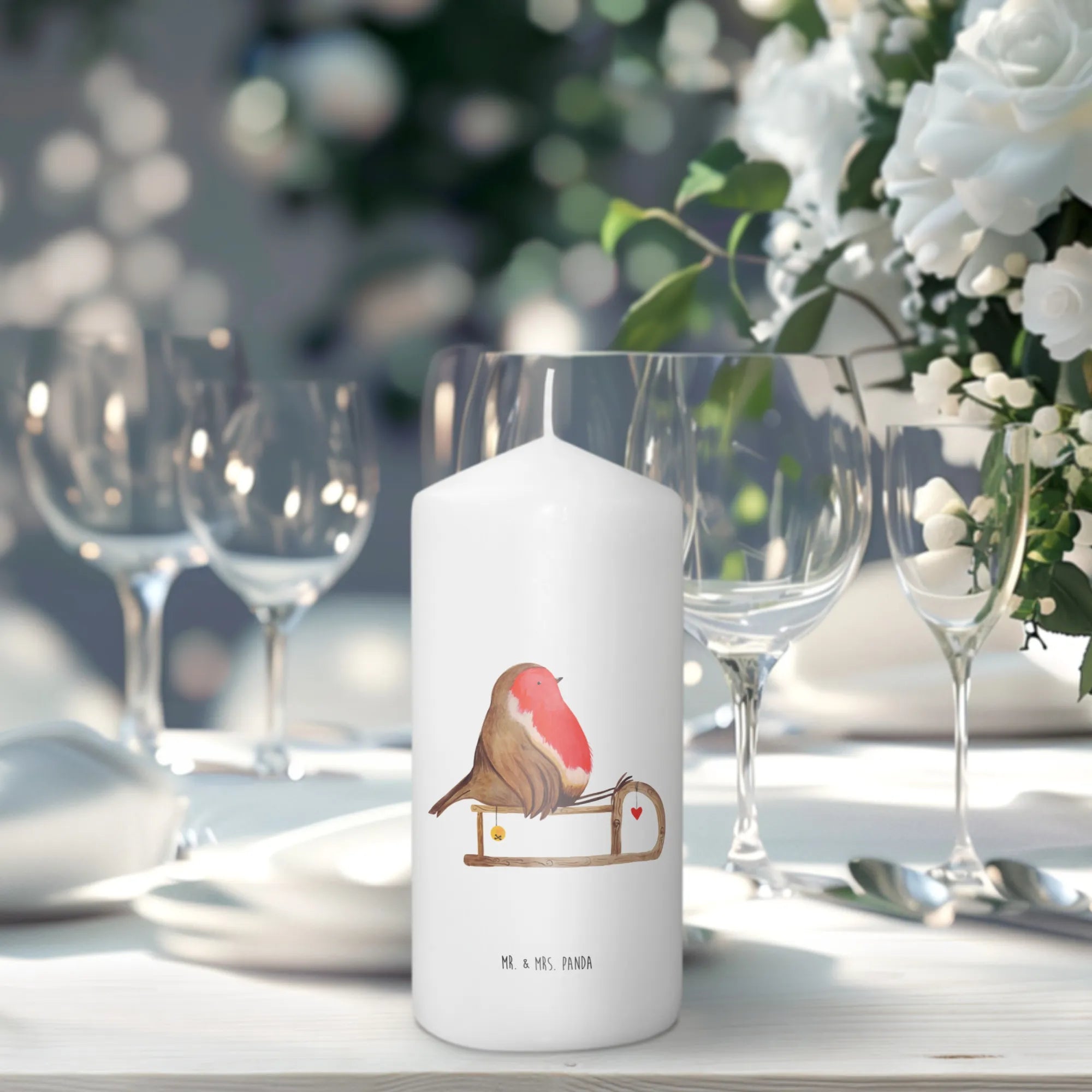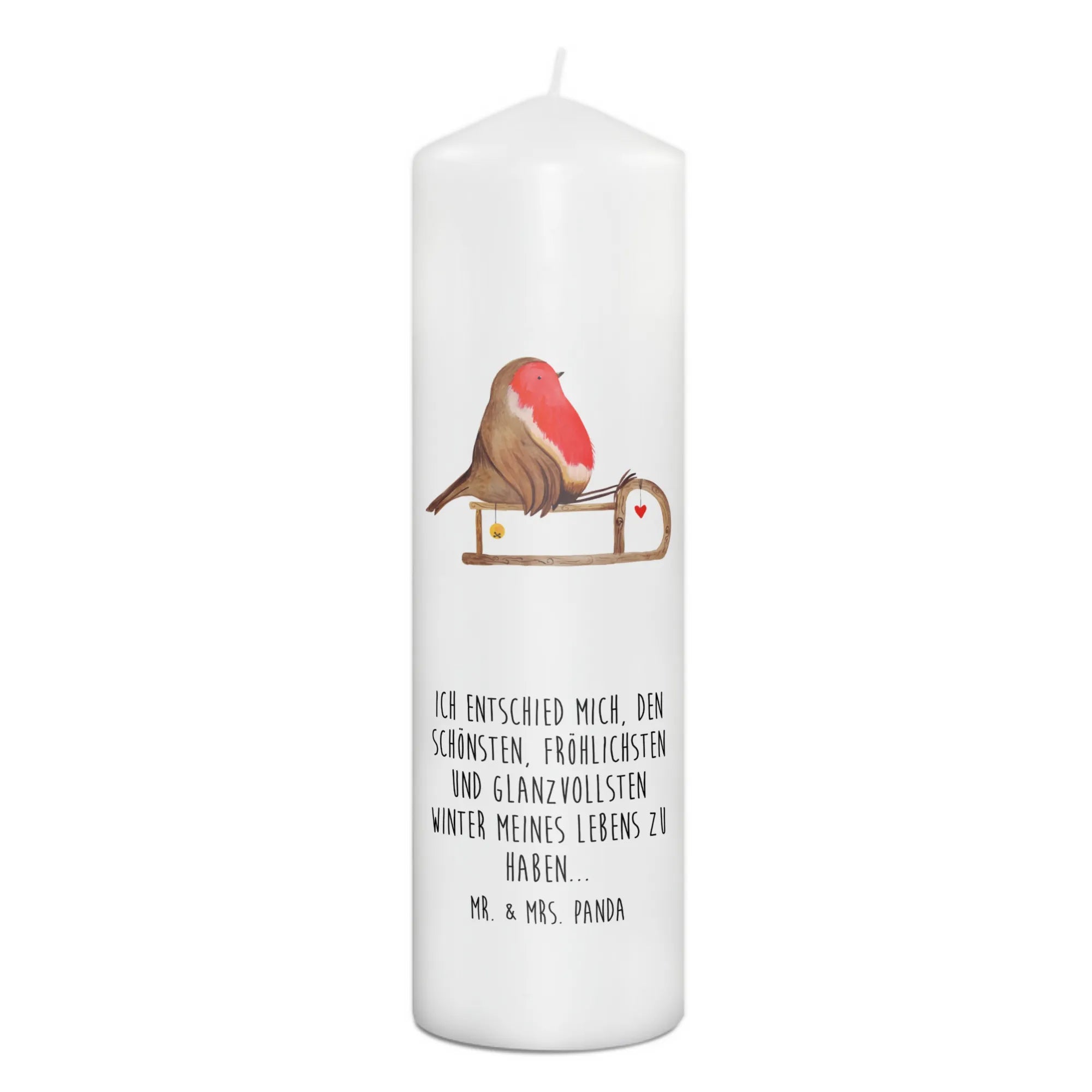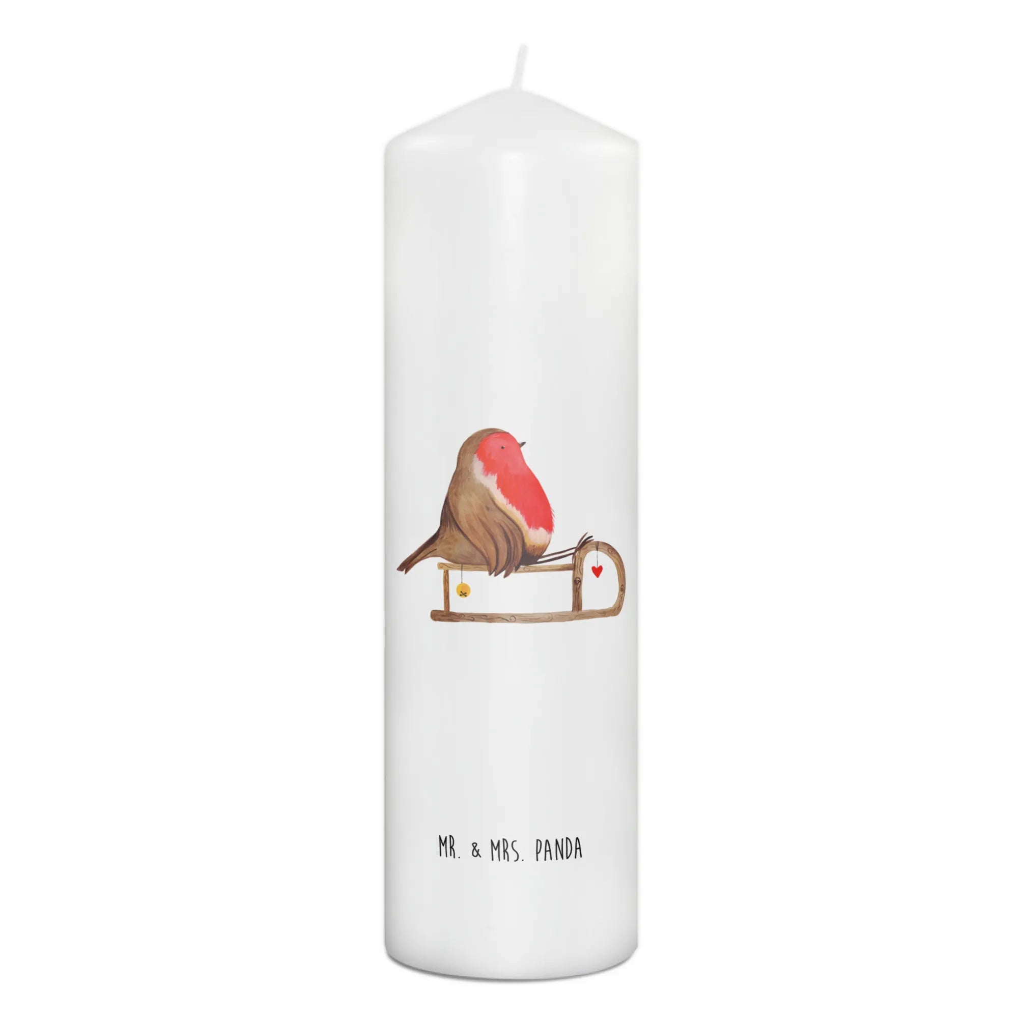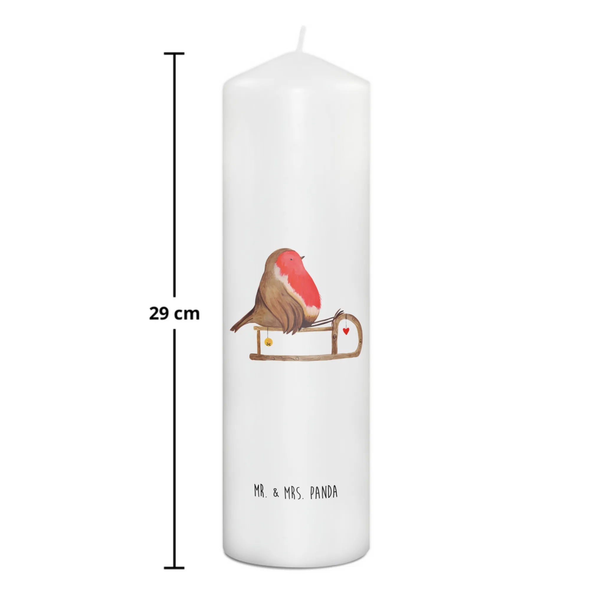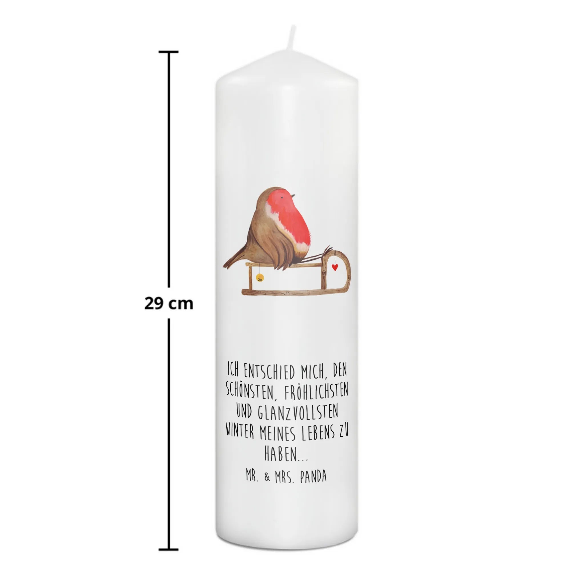 Die Kerze mit dem süßen Rotkehlchen auf dem Schlitten aus der Winter Kollektion von Mr. & Mrs. Panda ist die perfekte Geschenkidee für die kalte Jahreszeit.