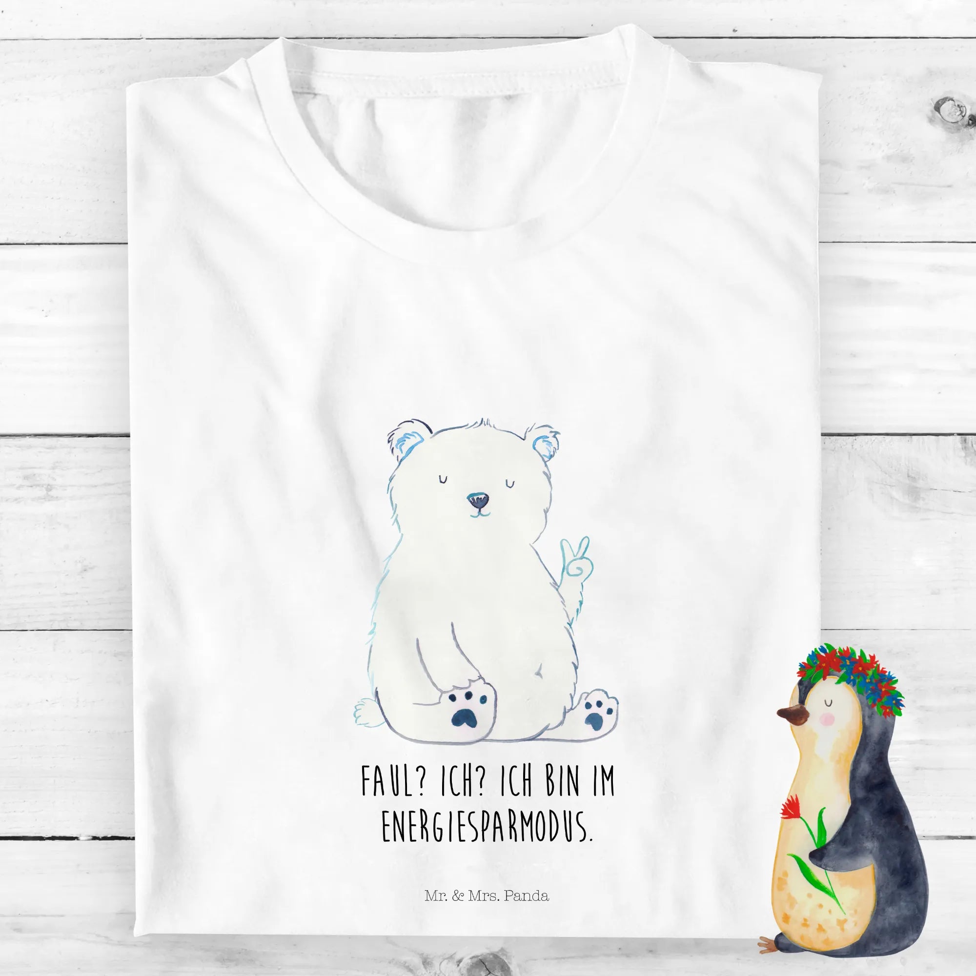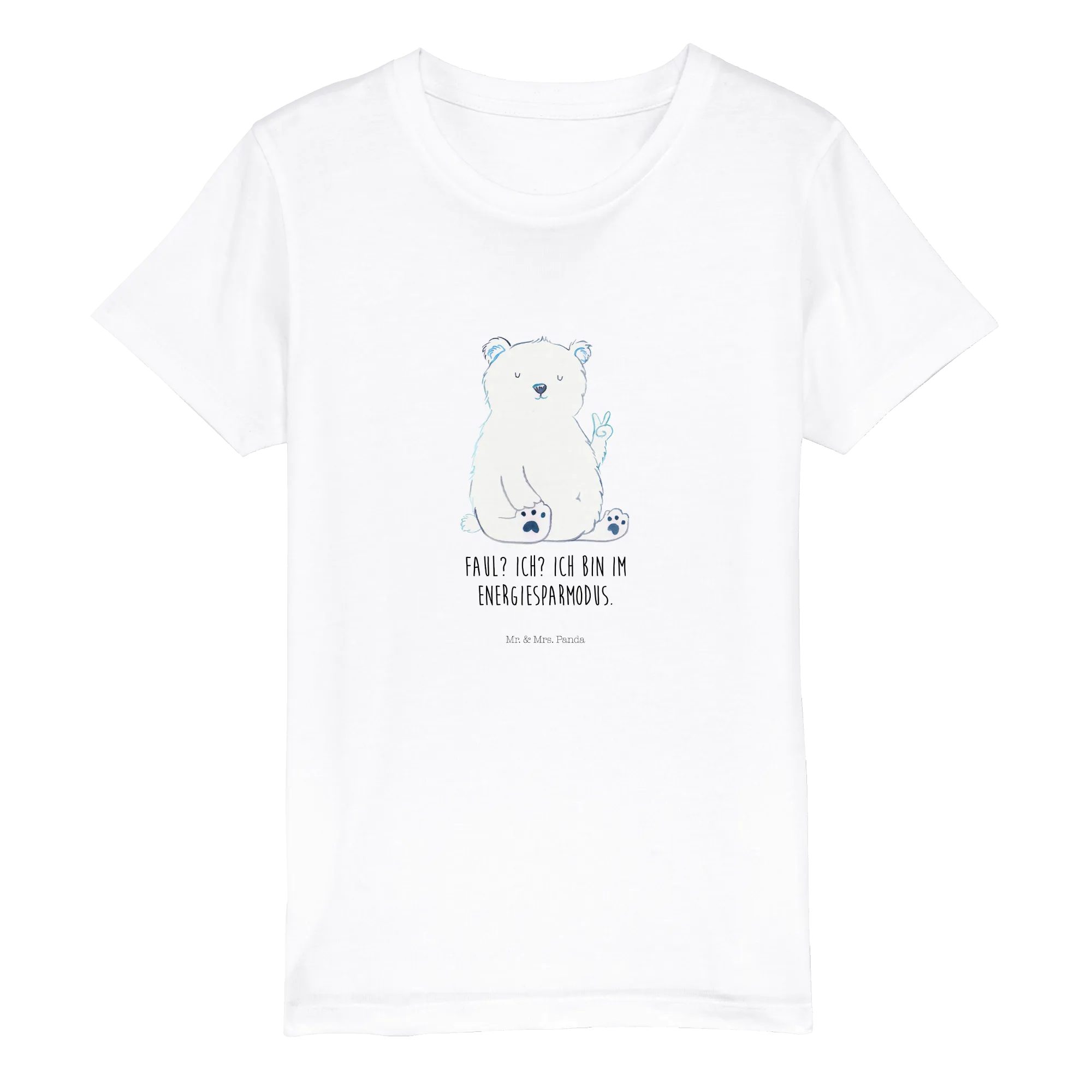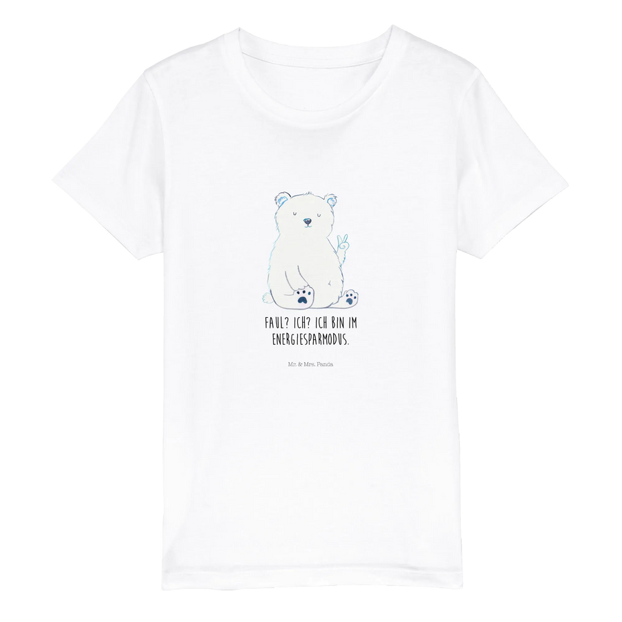 Entdecke das zauberhafte Organic Kinder T-Shirt mit dem süßen Eisbär-Motiv "Faul? Ich? Ich bin im Energiesparmodus." aus der besonderen Bärenkollektion von Mr. & Mrs. Panda!