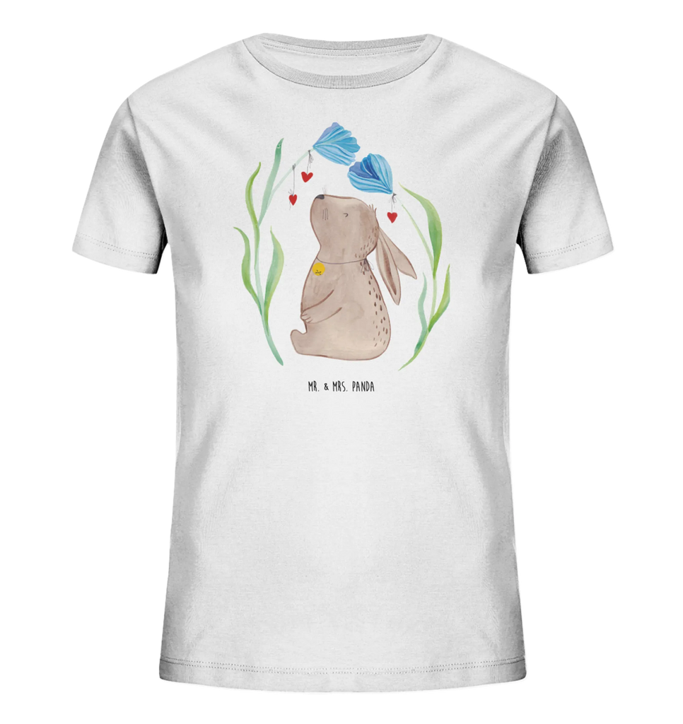 Das wunderschöne Organic Kinder T-Shirt mit dem Motif Hase Blume aus der speziellen Ostern-Kollektion von Mr. & Mrs. Panda ist das perfekte Geschenk für Kinder und Eltern, die das Osterfest lieben!