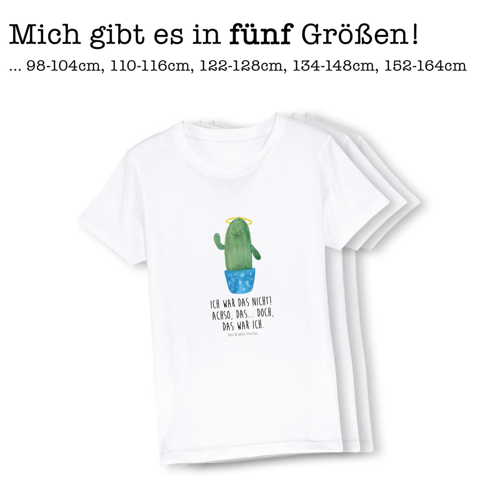 Das fröhliche Design zeigt einen süßen Kaktus mit einem Heiligenschein, der stolz in seinem Blumentopf steht. Die Aquarellzeichnung von Mrs. Panda macht jedes T-Shirt einzigartig und zaubert ein Lächeln auf jedes Kindergesicht! Das Kaktus-Heilig-Motiv kombiniert einen Hauch von Humor mit einer Portion Niedlichkeit und eignet sich ideal für Mädchen und Jungen. Es ist in den Größen 3-4 Jahre bis 12-14 Jahre erhältlich und spielt perfekt in die bunte Welt der Kinderkleidung hinein.