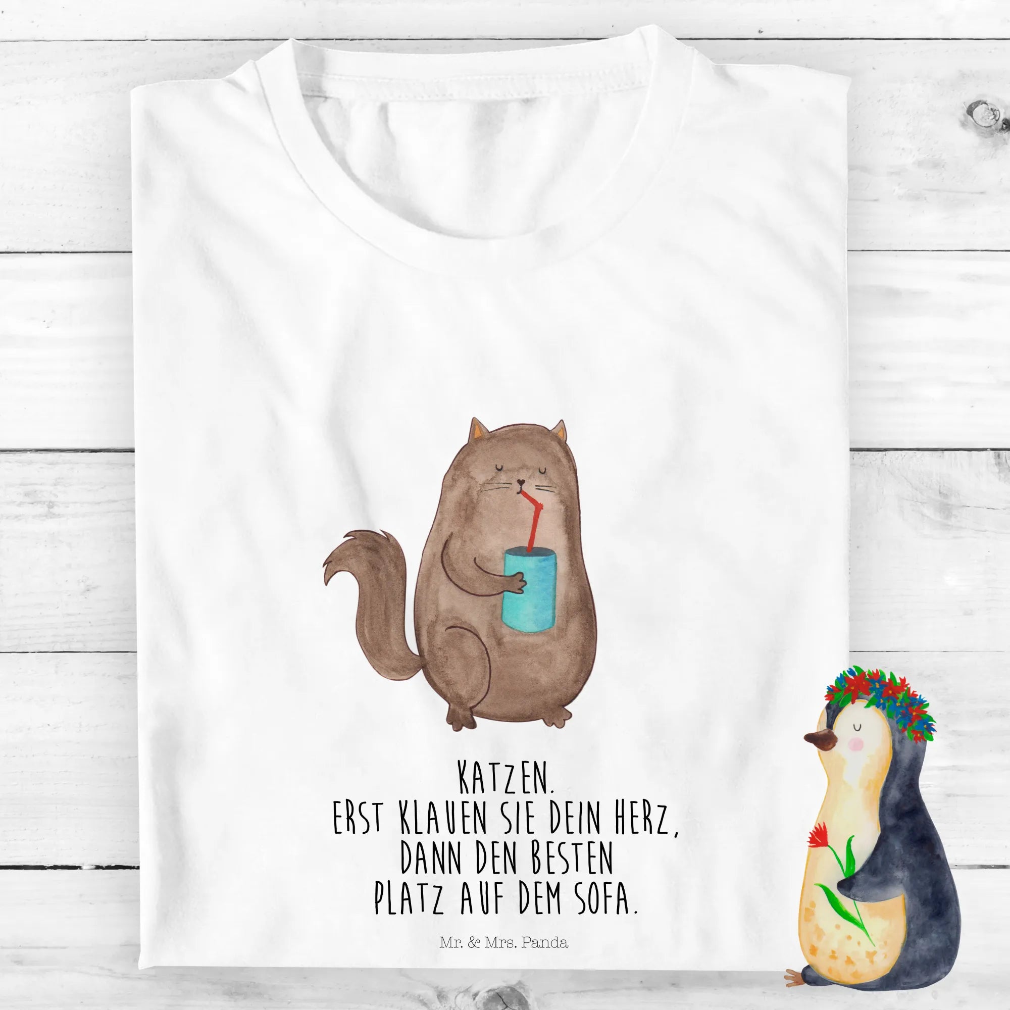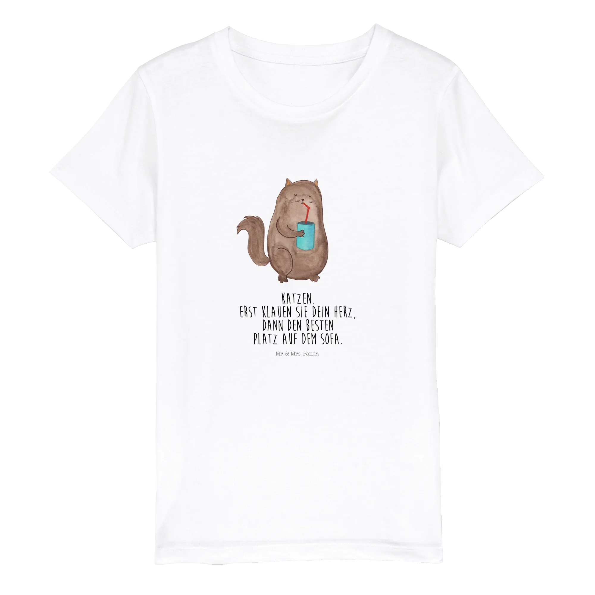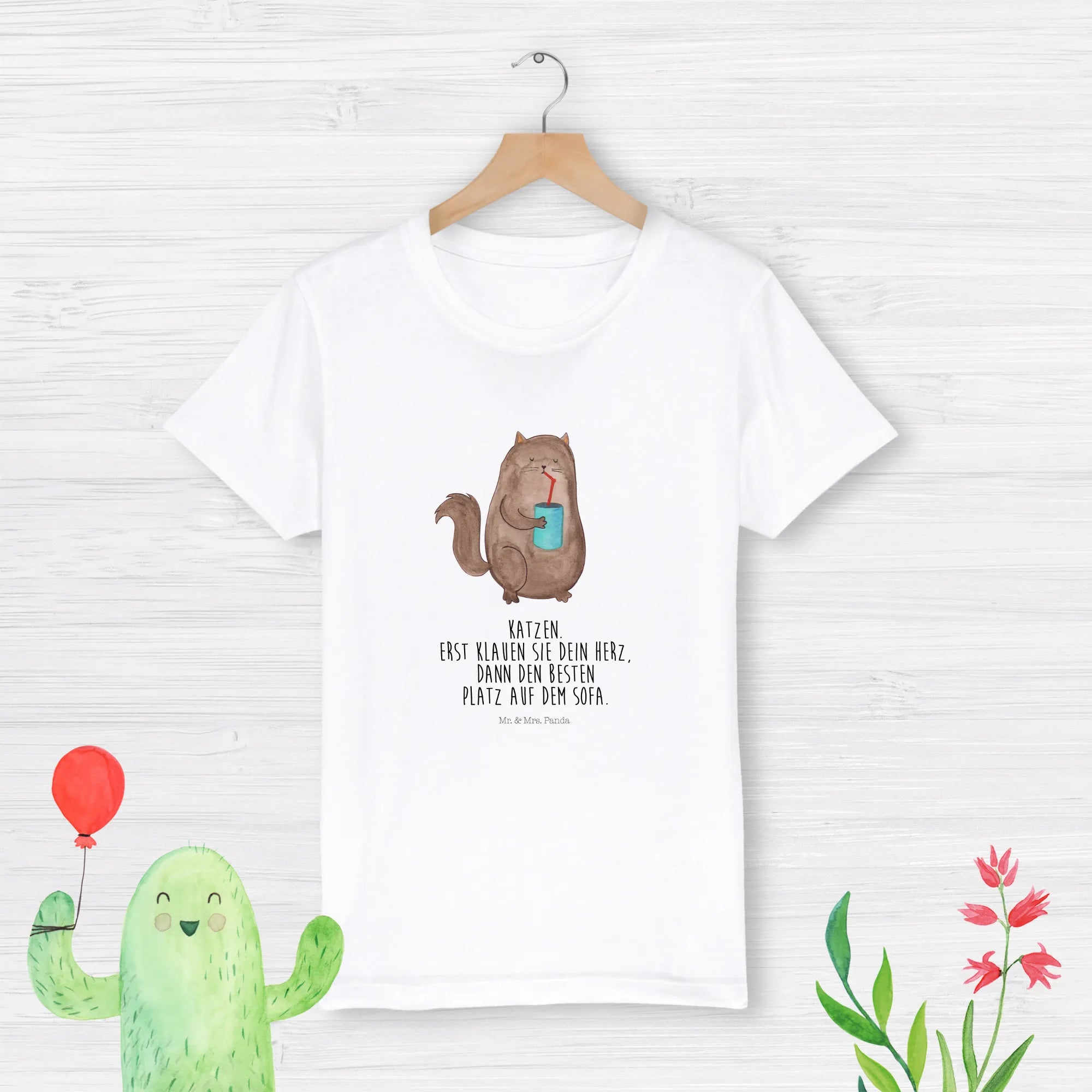 Unser süßes Kinder T-Shirt aus der Katzen - Kollektion von Mr. & Mrs. Panda zeigt eine fröhliche Katze, die genüsslich aus einer Dose trinkt. Das liebevoll handgezeichnete Motiv kombiniert Niedlichkeit und frechen Charme, dazu der Spruch: Katzen. Erst klauen sie dein herz, dann den besten Platz auf dem Sofa. Ein Design, das Kinderaugen leuchten lässt und Erwachsene zum Schmunzeln bringt.