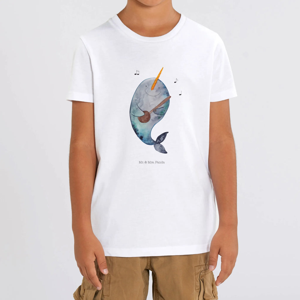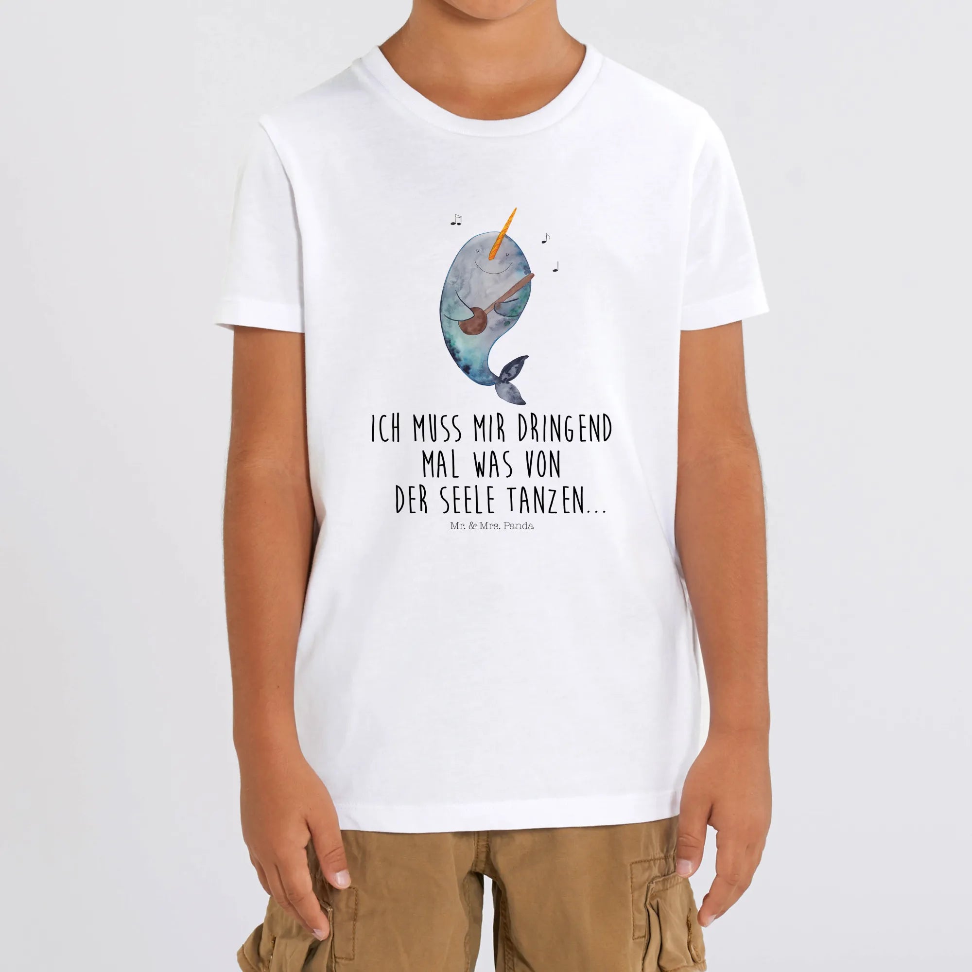 Das organic Kinder T-Shirt mit dem süßen Narwal und der Gitarre von Mr. & Mrs. Panda ist das perfekte Geschenk für kleine Musikliebhaber und Meerestiere-Fans! In sanften Blau- und Grautönen kommt unser fröhlicher Narwal daher, der mit seiner Gitarre harmonische Melodien erschafft.