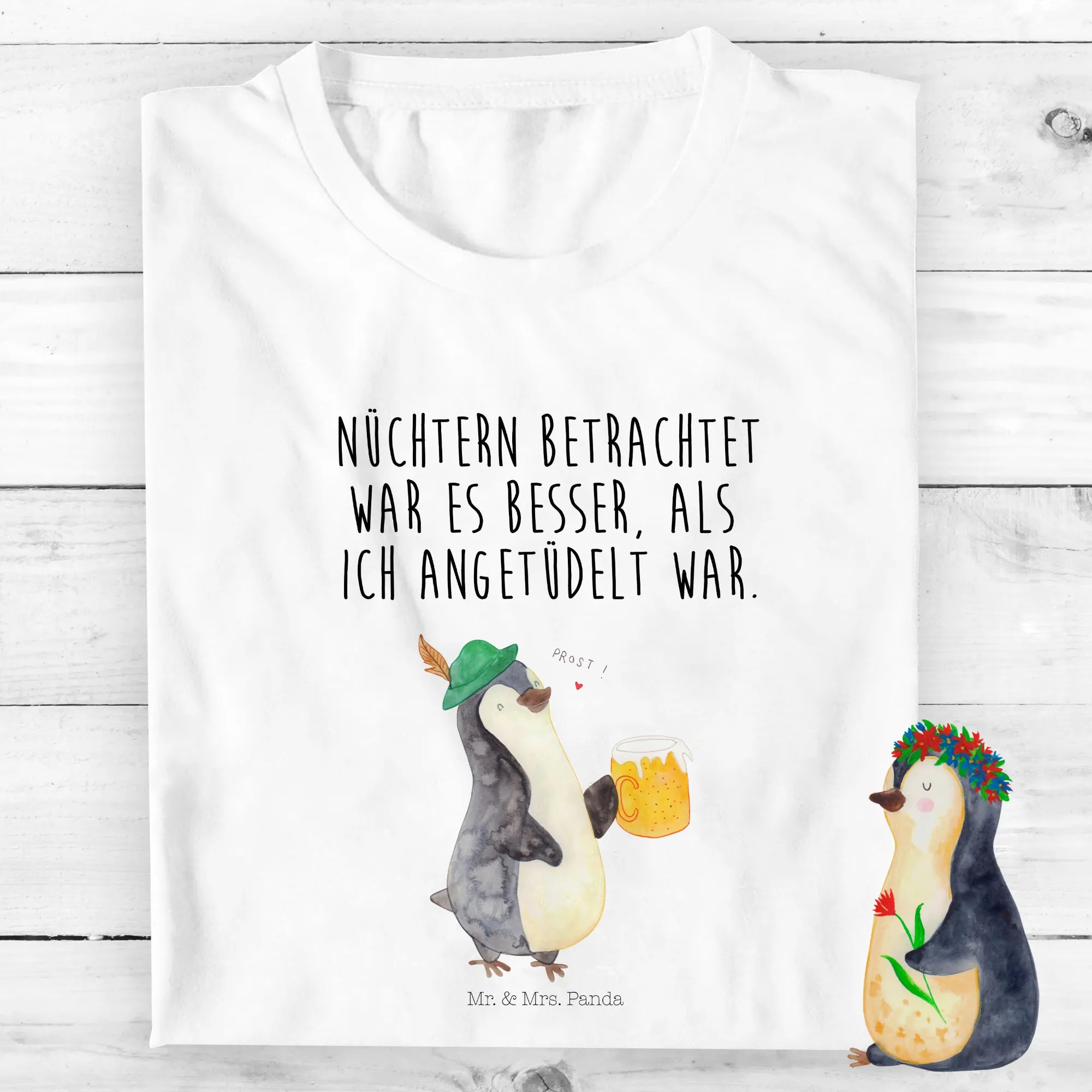 Der süße Pinguin in bayerischer Tracht mit einem großen Maß Bier in der Flipperhand verspricht ein hervorragendes Gefühl von Festlichkeit und Freude. Mit dem Slogan „Nüchtern betrachtet war es besser, als ich angetüdelt war“ sorgt das Shirt nicht nur für Lacher, sondern auch für Aufsehen bei jeder Feier.