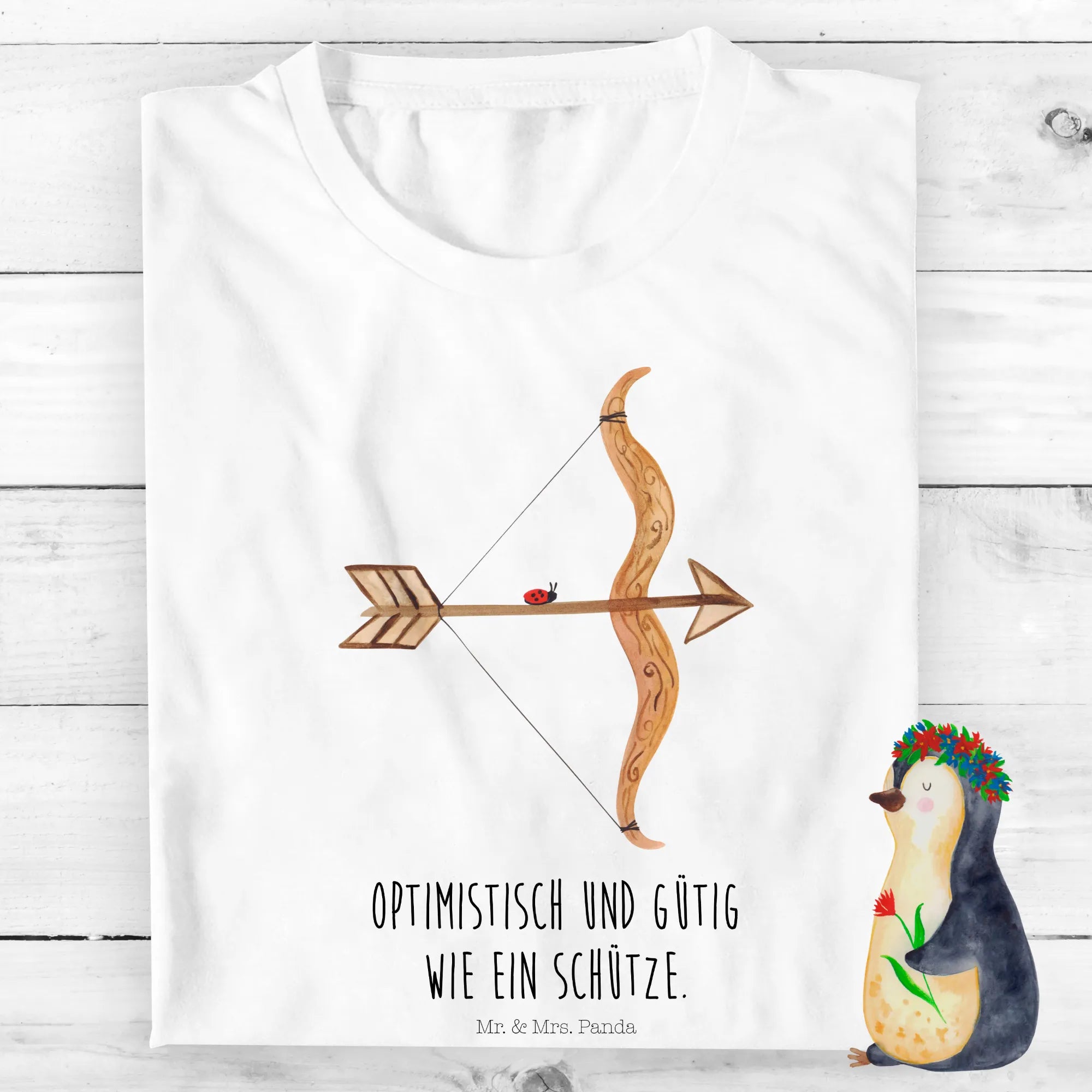 Es feiert die Eigenschaften des Schützen mit einem fröhlichen, handgezeichneten Design von Mrs. Panda, das mit einem schönen Slogan "Optimistisch und gütig wie ein Schütze" versehen ist. Dieses T-Shirt ist nicht nur ein stylisches Kleidungsstück, sondern auch eine liebevolle Hommage an alle kleinen Sternzeichen-Fans.