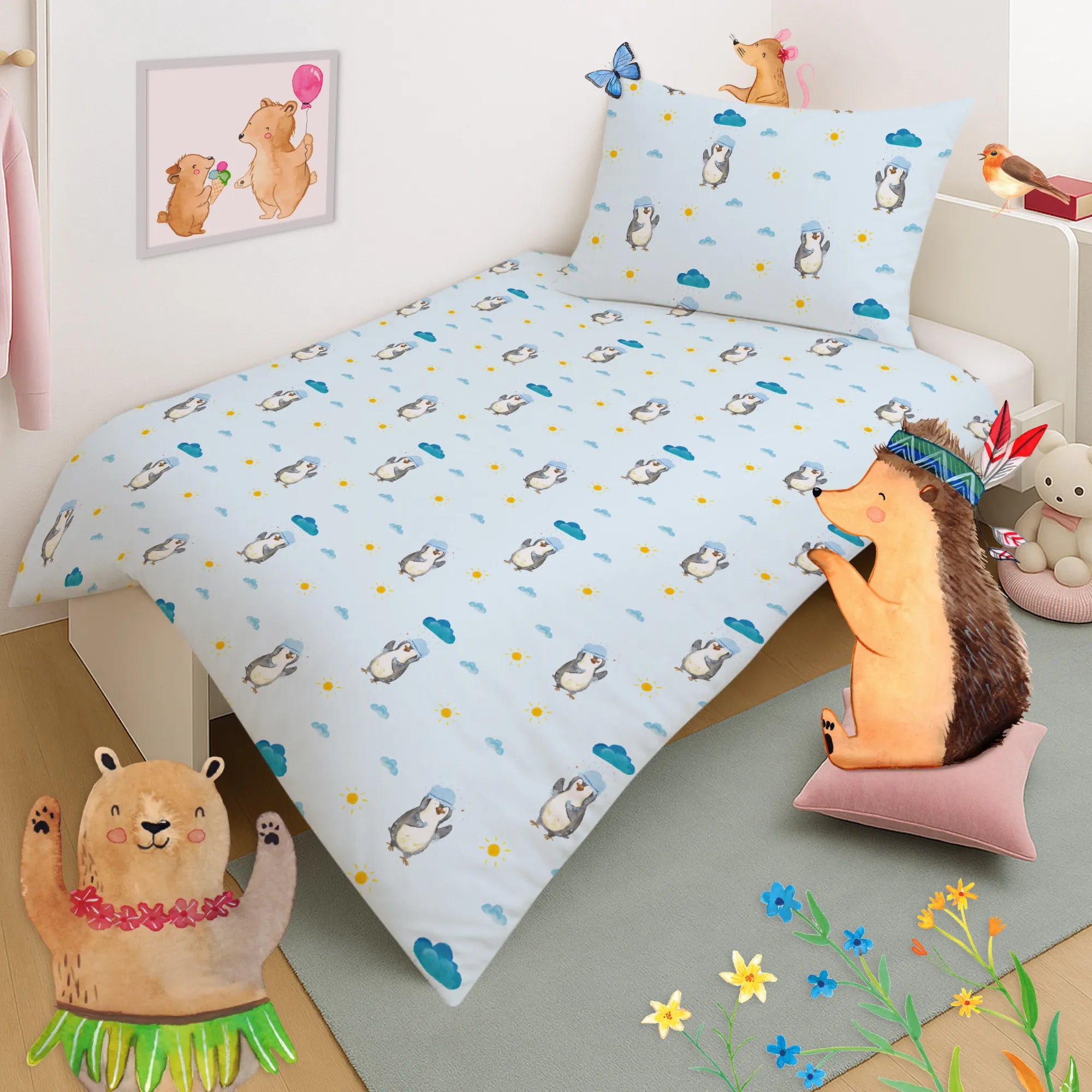 Bettwäsche Kinder Pinguin Duschen Muster