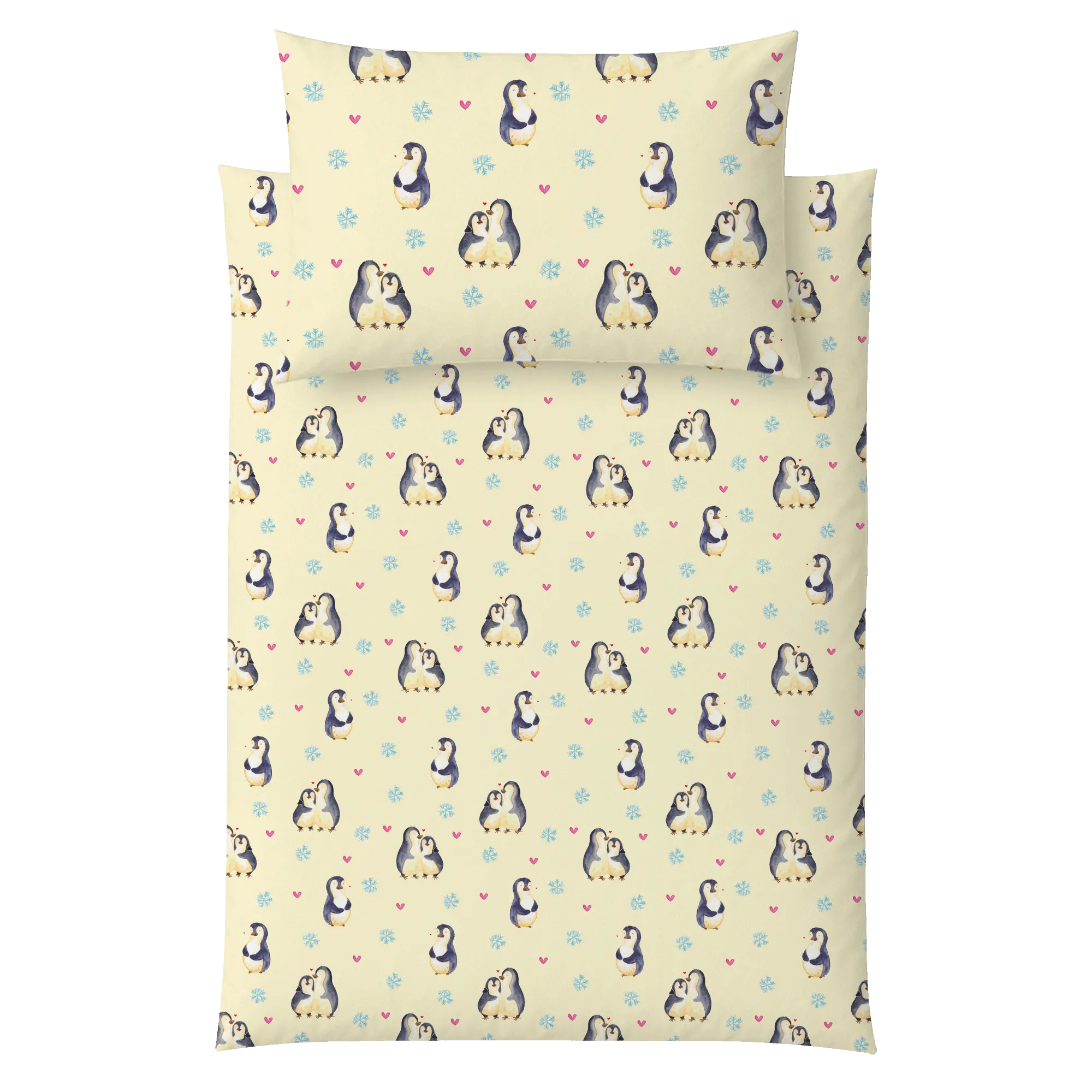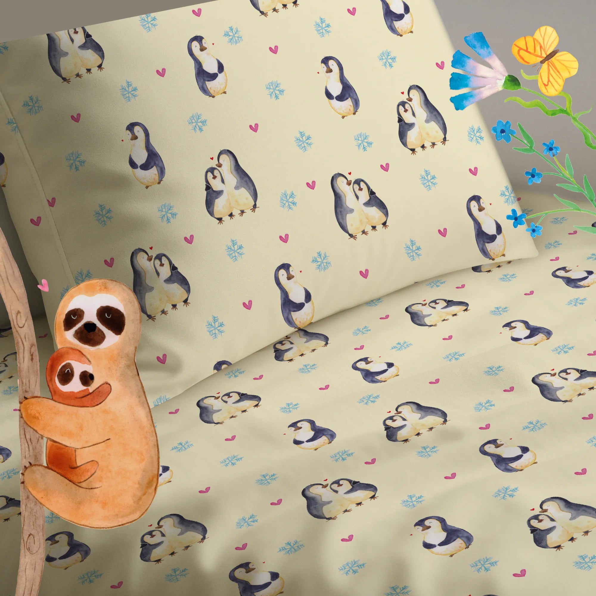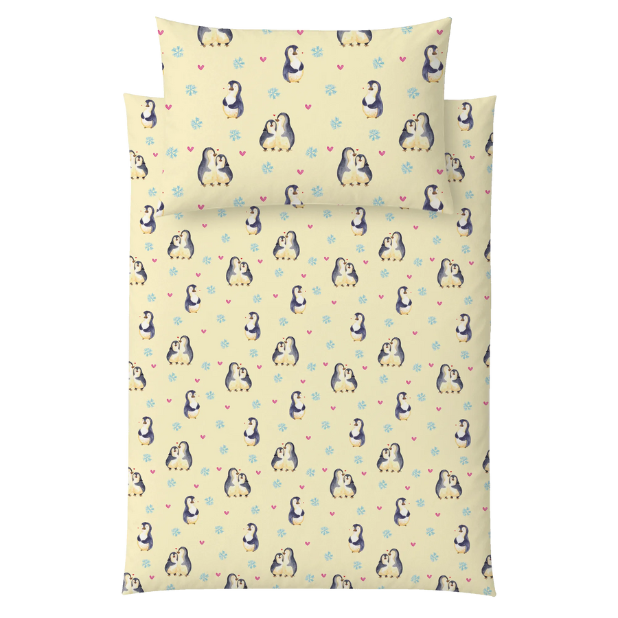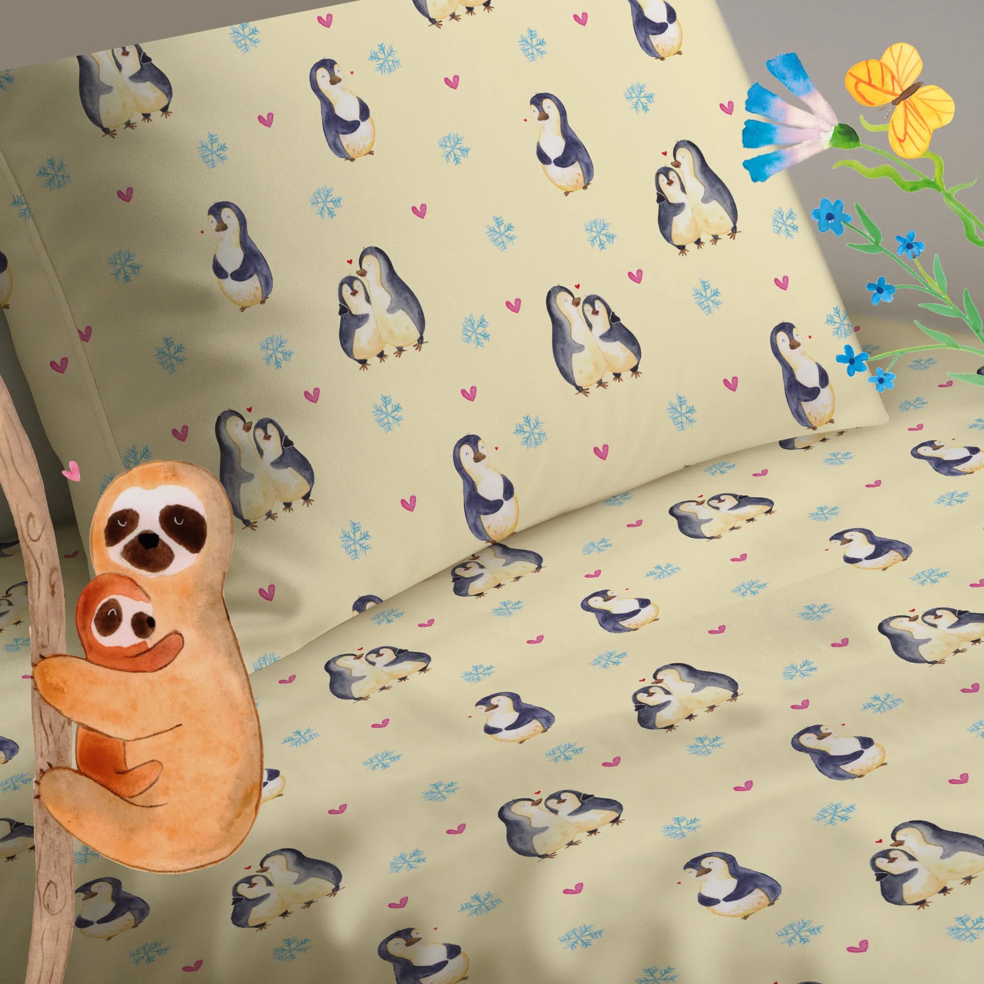 Warum diese Bettwäsche so besonders ist: Das Motiv vermittelt Wärme und Geborgenheit und passt hervorragend ins Kinderzimmer. Die sonnige Hintergrundfarbe sorgt für gute Laune, während die weichen Linien des Pinguin-Liebespaares Zärtlichkeit ausstrahlen. Ideal als Geschenk zur Einschulung, zur Taufe, zum Geburtstag – aber auch als ausgefallenes Liebesgeschenk zum Jahrestag, zur Verlobung oder als süßes Hochzeitsgeschenk für Pinguin-Fans.