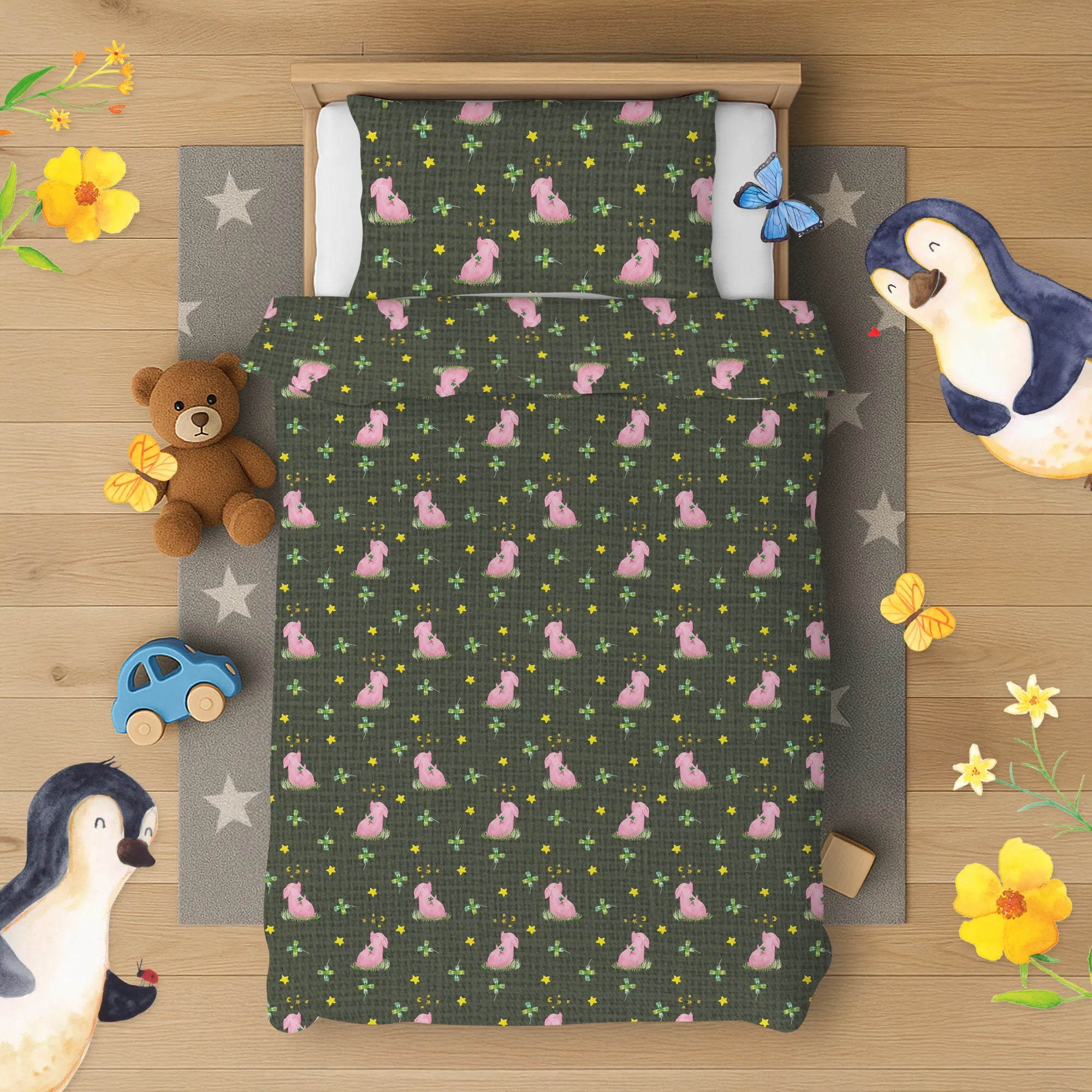 Kinderbettwäsche Schwein Glück Muster
