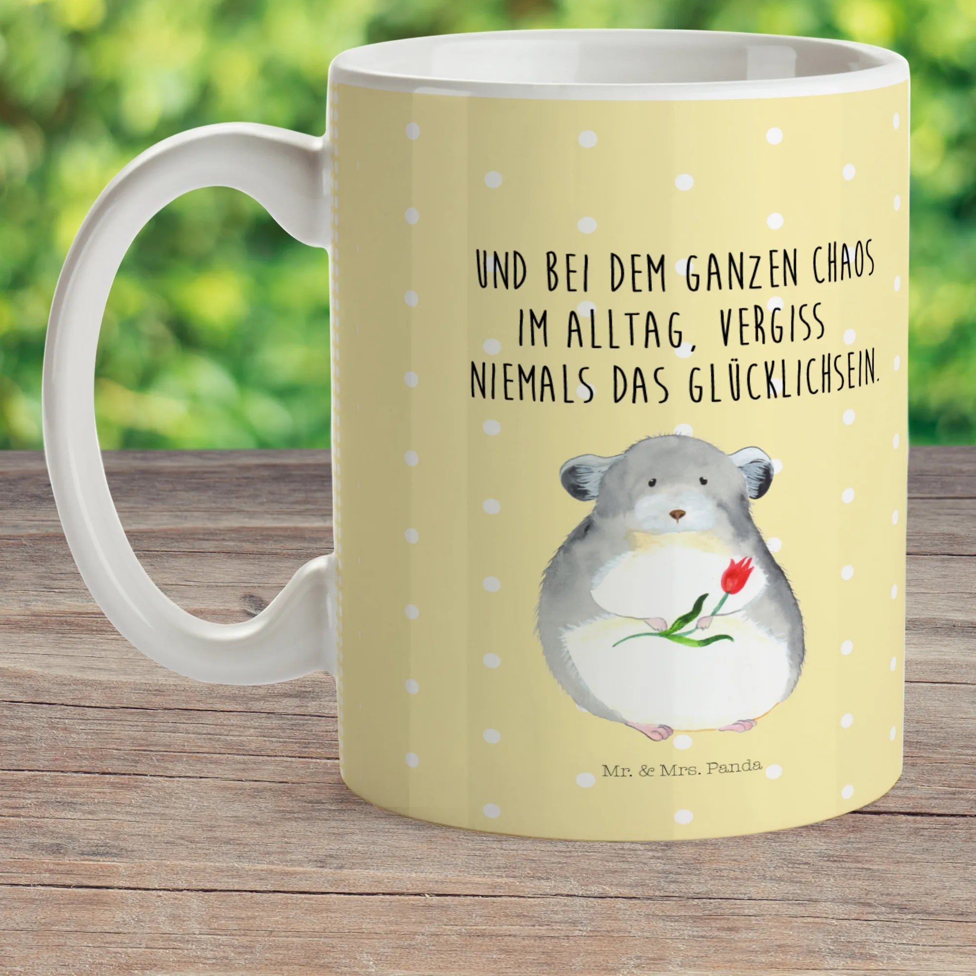 Kinder lieben bunte, fröhliche Designs, und die Kindertasse mit dem niedlichen Chinchilla-Motiv von Mr. & Mrs. Panda ist genau das richtige Geschenk für kleine Tierfreunde! Diese robuste und farbenfrohe Kunststofftasse ist perfekt für den Kindergarten, für das Trinken von leckerem Kakao oder sogar für den Ausflug ins Freie. Wenn du nach einem coolen und praktischen Trinkbecher suchst, wirst du die Happy Chinchilla Tasse mit ihrer Blume lieben.