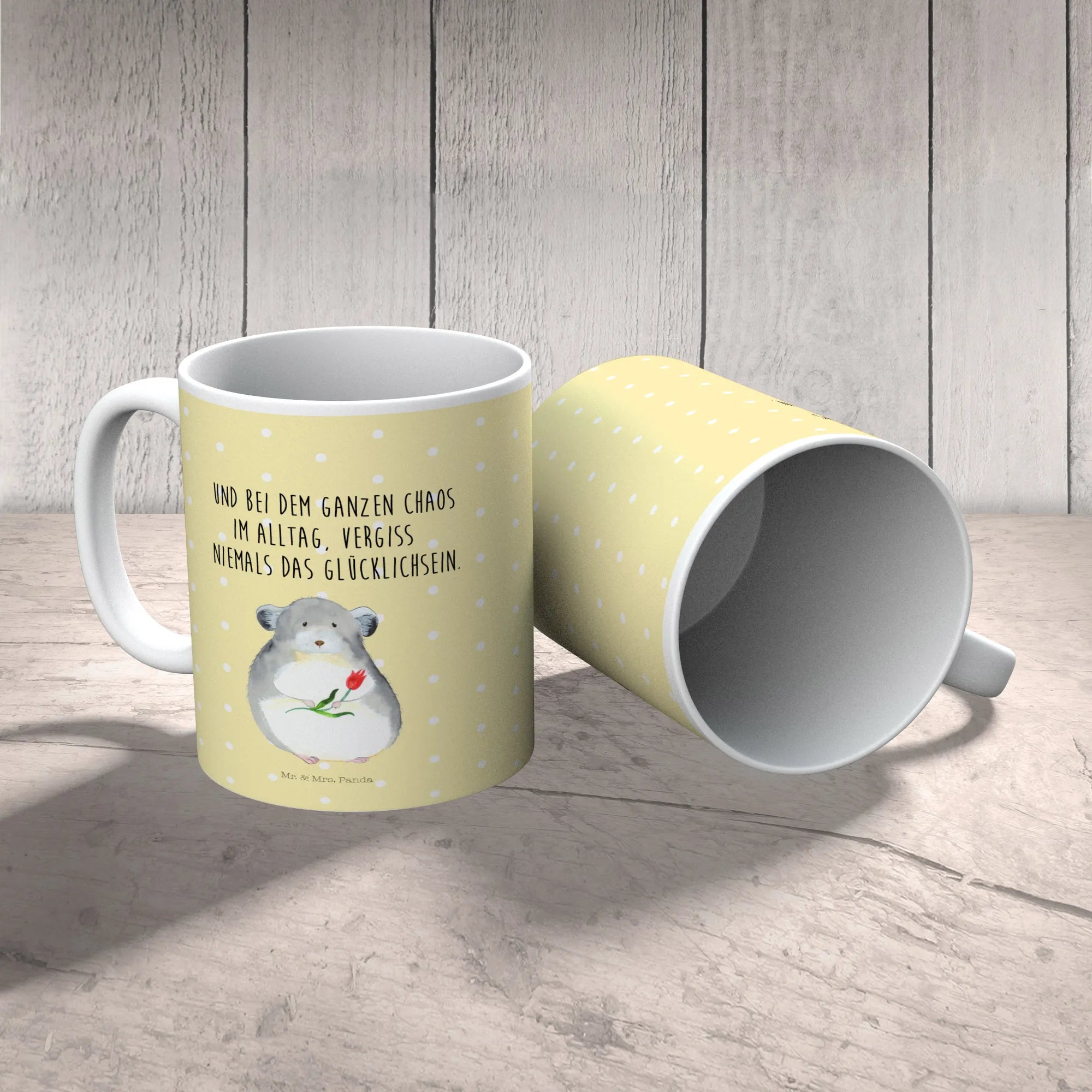 Kindertasse Chinchilla Blume - mit Spruch - Gelb Pastell