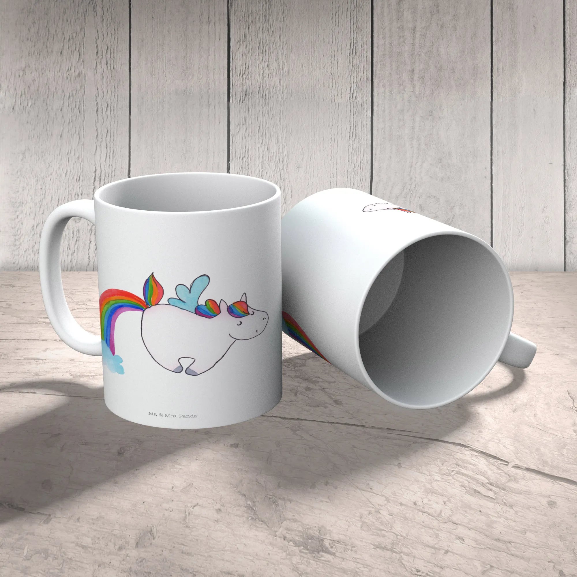 Die Kindertasse "Einhorn Fliegendes Pferd" aus der zauberhaften Einhorn-Kollektion von Mr. & Mrs. Panda ist das perfekte Geschenk für kleine Fantasten und Erwachsenen, die die Magie von Einhörnern lieben! Diese fröhliche und bruchfeste Tasse besticht durch ihr farbenfrohes Design, das ein strahlendes Einhorn darstellt, das durch die Lüfte fliegt.
