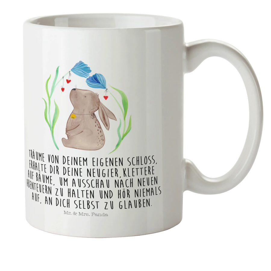 Bruchsicher und kindgerecht, kann diese Tasse auch problemlos von kleinen Händen gehalten werden, ohne dass man Angst um Brüche haben muss. Das Motiv Hase Blume inspiriert Kinder, ihre Neugier zu entfalten und stets an sich selbst zu glauben. Sei es als Taufgeschenk zur Geburt eines ersten Kindes, für den Kindergartenstart oder als liebevolles Präsent zum Kindergeburtstag - diese Kindertasse ist vielseitig einsetzbar.