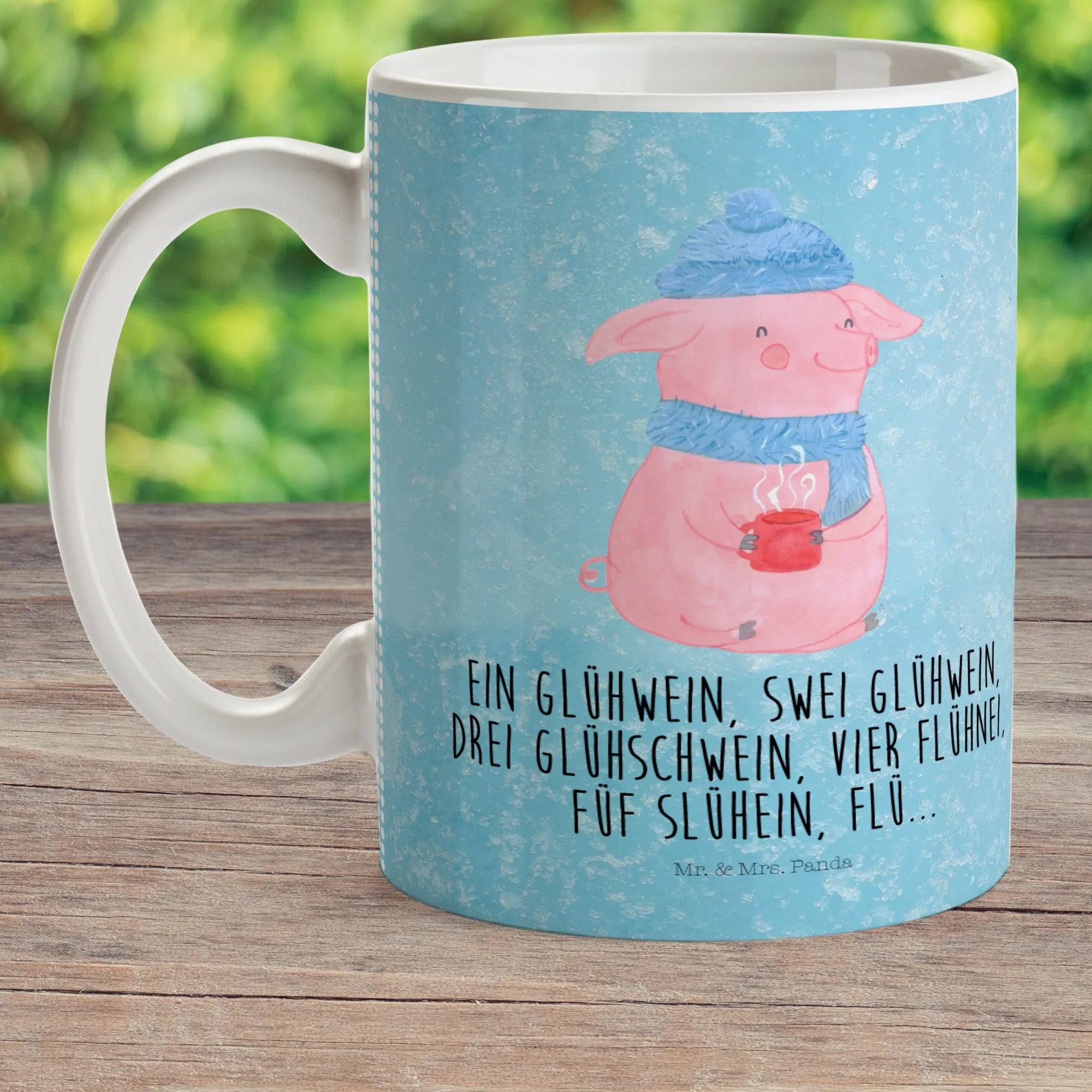 Die Kindertasse "Lallelndes Glühschwein" von Mr. & Mrs. Panda ist das perfekte Geschenk für Kinder, gerade zur Winterzeit! Mit ihrem bezaubernden winterlichen Motiv und dem lustigen Spruch "Ein Glühwein, Swei Glühwein, drei Glühschwein, vier Flühnei, Füf Slühein, Flü..." zaubert sie ein Lächeln auf jedes Kindergesicht. Diese farbenfrohe, bruchsichere Kunststofftasse ist kindgerecht gestaltet und perfekt für den Kindergarten oder für gemütliche Stunden zu Hause bei Kakao und Keksen.