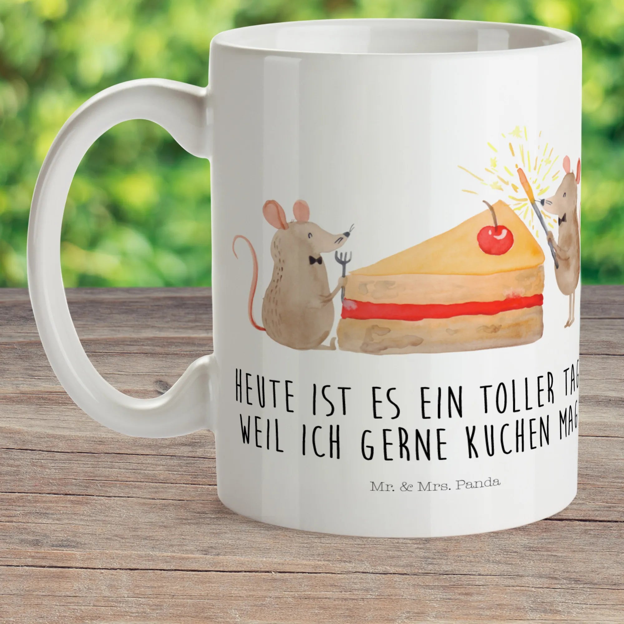 Die Kindertasse "Mäuse Kuchen" von Mr. & Mrs. Panda ist das perfekte Geschenk für kleine Naschkatzen! Mit einem zauberhaften Motiv, das zwei niedliche Mäuse zeigt, die vor einer großen Geburtstagstorte sitzen und Wunderkerzen in der Hand halten, verbreitet diese Tasse jede Menge Freude. Das Motto "Heute ist ein toller Tag, weil ich gerne Kuchen mag!" bringt nicht nur Kinderaugen zum Strahlen, sondern sorgt auch bei jedem Geburtstagsfest für gute Laune.