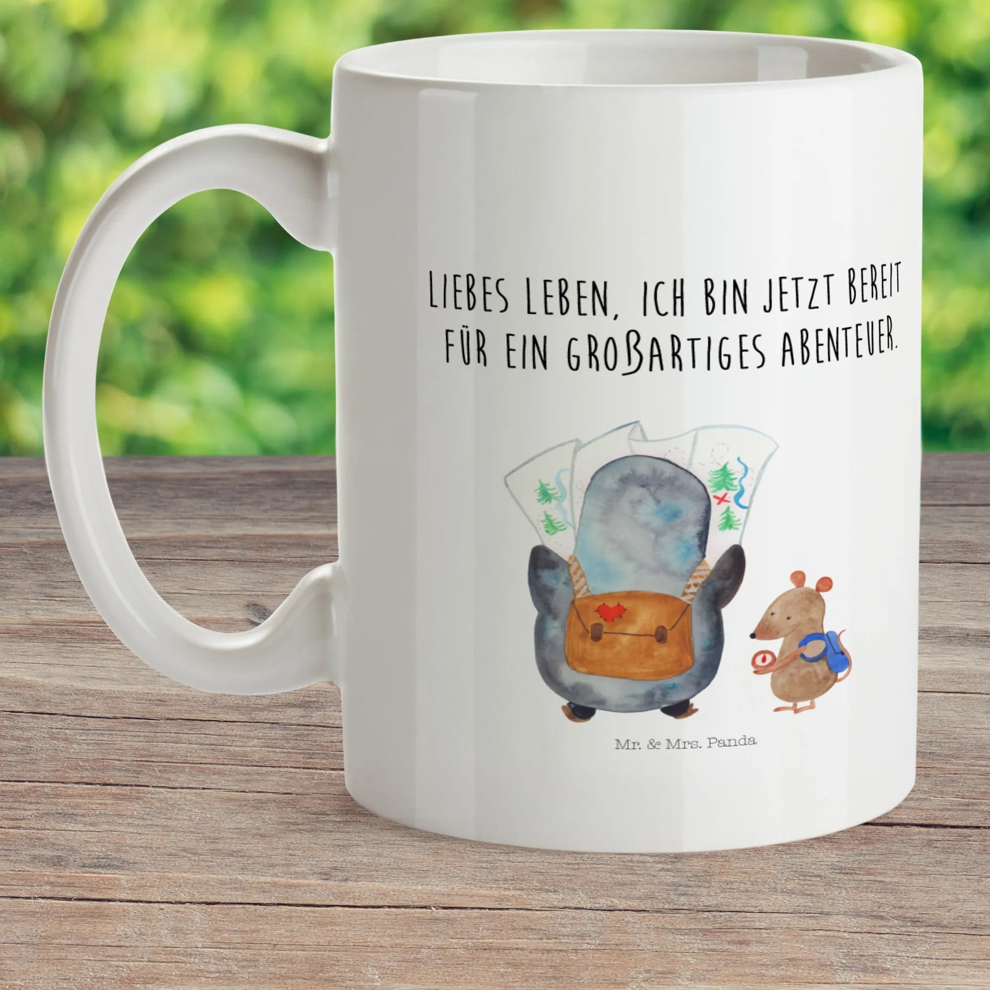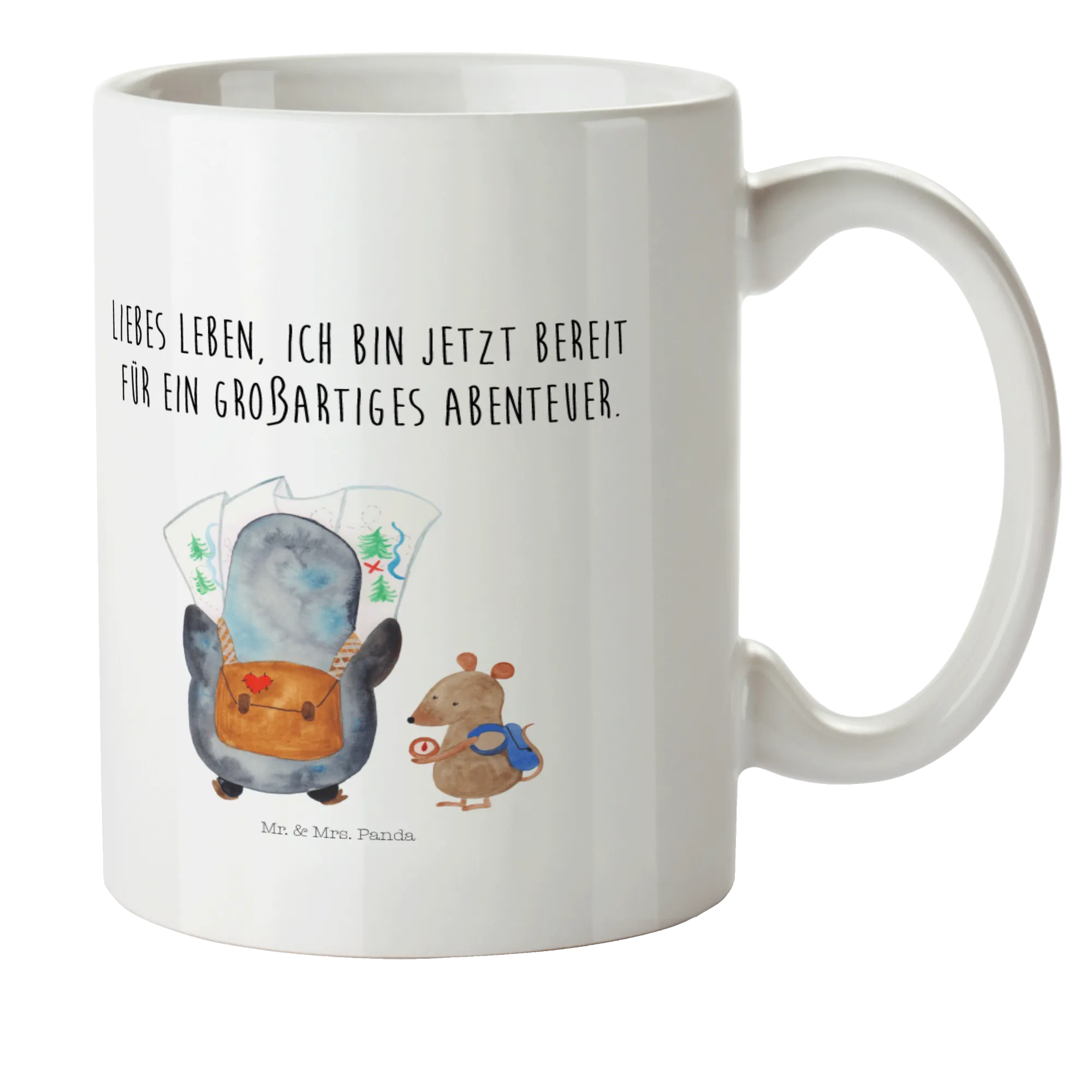 Entdecke die bezaubernde Kindertasse "Pinguin & Maus Wanderer" von Mr. & Mrs. Panda!