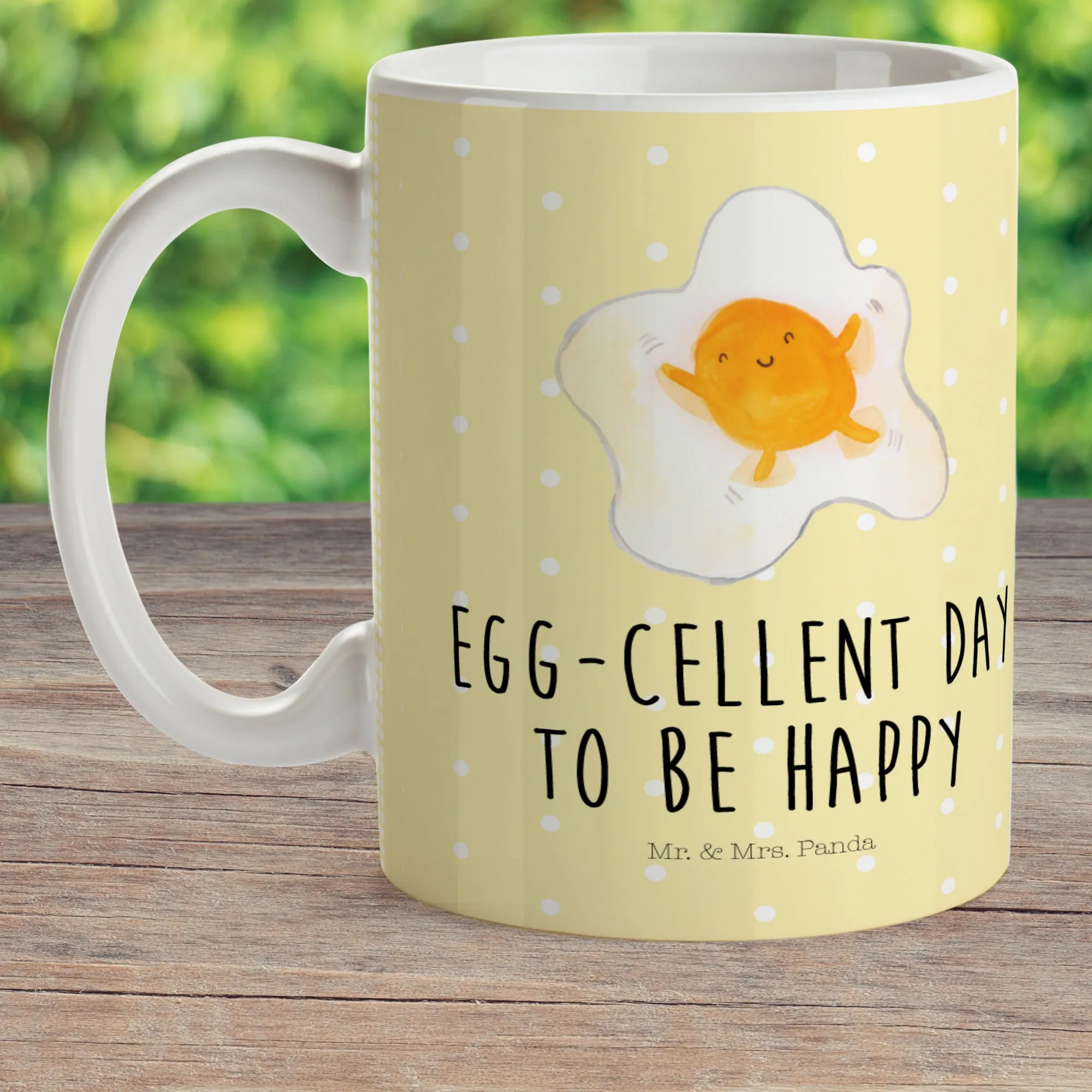 Diese Tasse ist nicht nur ideal als Geburtstagsgeschenk, sondern auch zur Einschulung, als kleine Aufmerksamkeit zum Lieblingsfest oder einfach so, um einem besonderen Menschen eine Freude zu machen. Mit dem Spruch 'Egg-cellent day to be happy' zauberst du garantiert ein Lächeln ins Gesicht des Beschenkten.