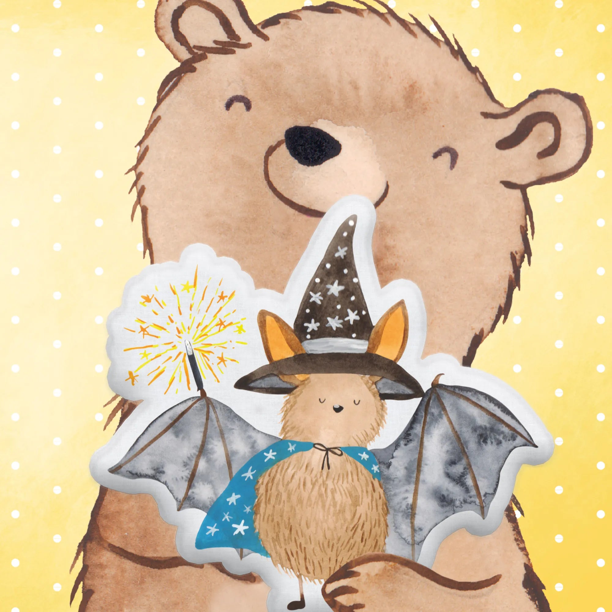 Mit seinem niedlichen Motiv einer kleinen Fledermaus, die stolz ihren Zauberstab hält, vermittelt es zauberhafte Vibes und sorgt für ein Lächeln im Gesicht. Ideal für kleine Hexen und Zauberer oder einfach für alle, die das Besondere lieben!