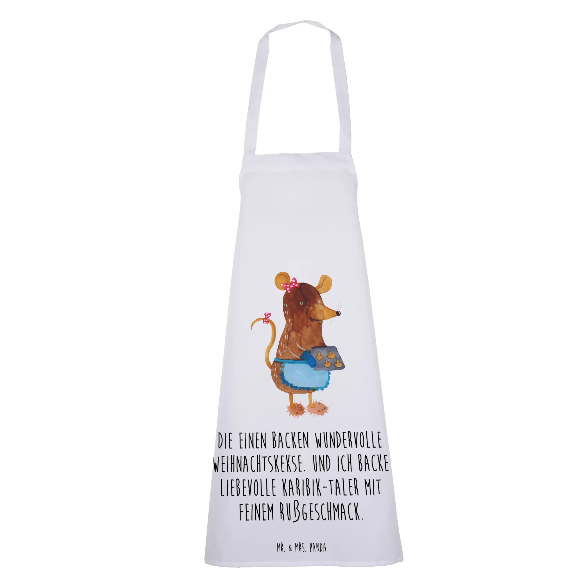 Die Mr. & Mrs. Panda Kochschürze mit dem süßen Maus Kekse Motiv ist das perfekte Geschenk für alle, die das Backen lieben! Wenn du in der Weihnachtszeit in der Küche stehst und köstliche Plätzchen zauberst, wirst du mit dieser charmanten Schürze ganz bestimmt Freude haben. Der zauberhafte Spruch „Die einen backen wundervolle Weihnachtskekse. Und ich backe liebevolle Karibik-Taler mit feinem Rußgeschmack.“ bringt nicht nur ein schmunzeln in dein Gesicht, sondern macht auch jedem deine Liebe zum Backen deutlich.