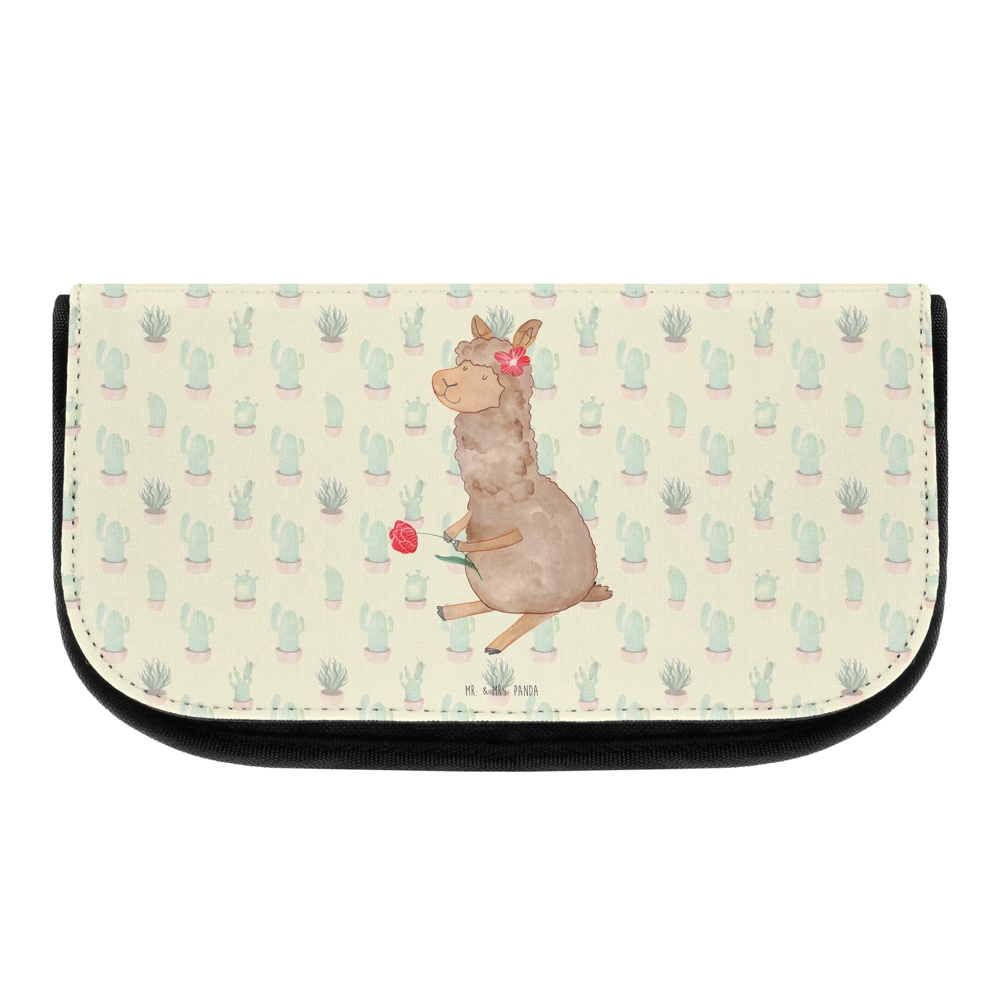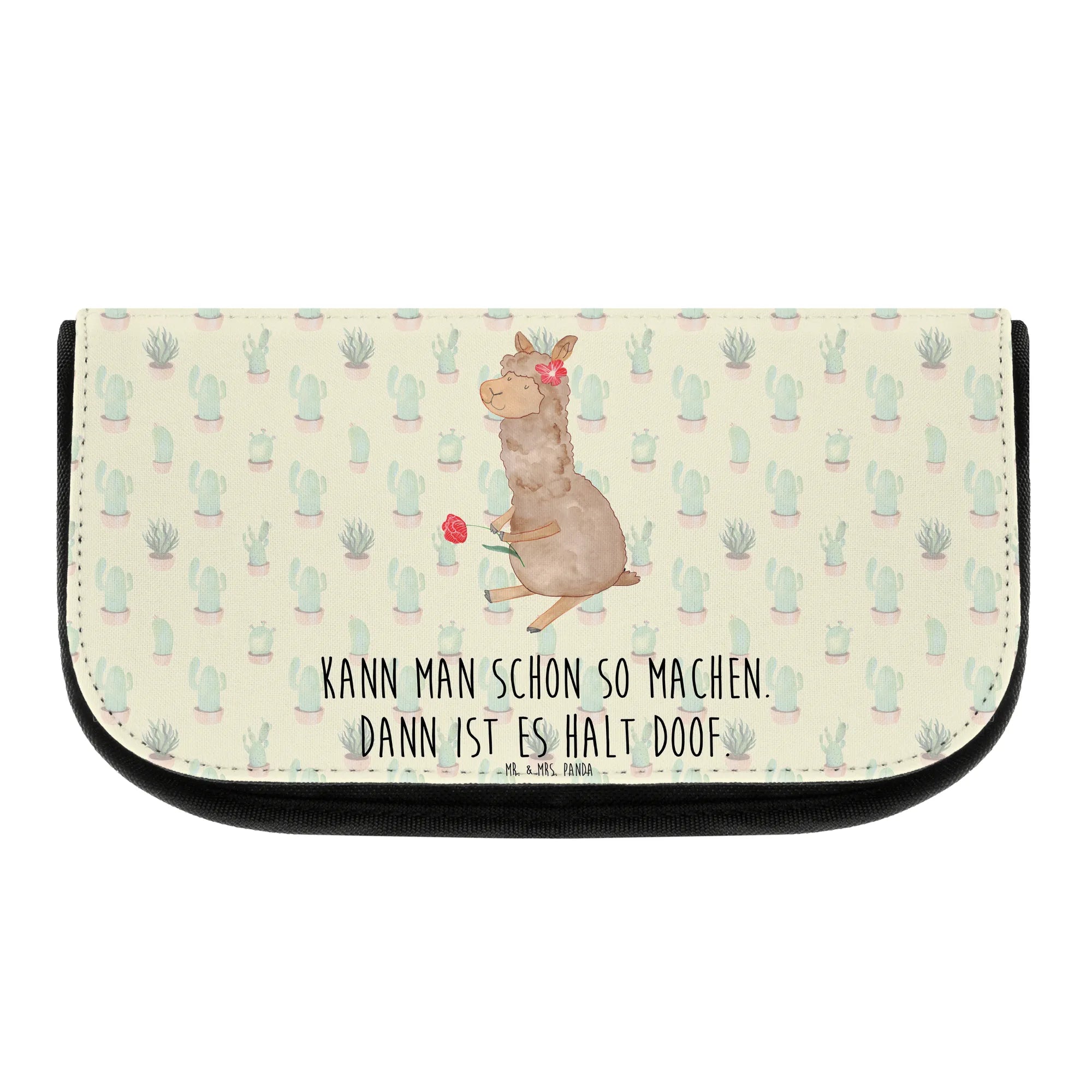 Mit unserer bezaubernden Kosmetiktasche Alpaka Blume aus der Kollektion von Mr. & Mrs. Panda machst du ein ganz besonderes Geschenk, das Herzen erwärmt! Diese praktische Kosmetiktasche ist sorgfältig aus strapazierfähiger Kunstfaser gefertigt und mit einem niedlichen Alpaka-Motiv verziert, das dich immer an die Schönheit der Natur erinnert. Das Alpaka, das eine hübsche Blume im Haar trägt, bringt dir Freude und ein Lächeln ins Gesicht, egal wo du bist. Perfekt für alle Schönheitsliebhaberinnen, die Ordnung in ihrem Schminkzeug verlangen!