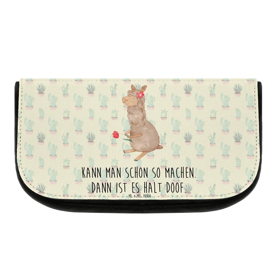 Kosmetiktasche Alpaka Blume - mit Spruch - Kaktus Grün
