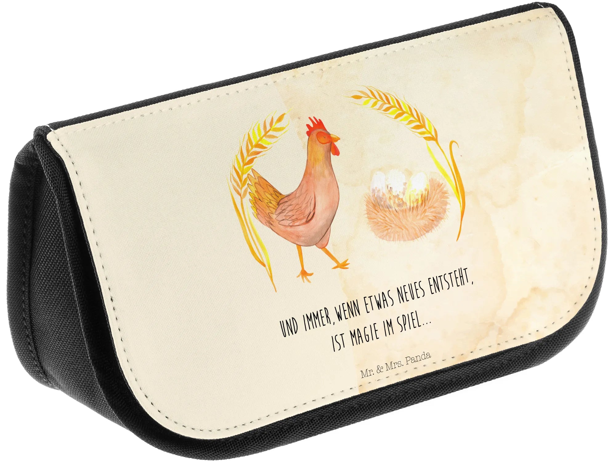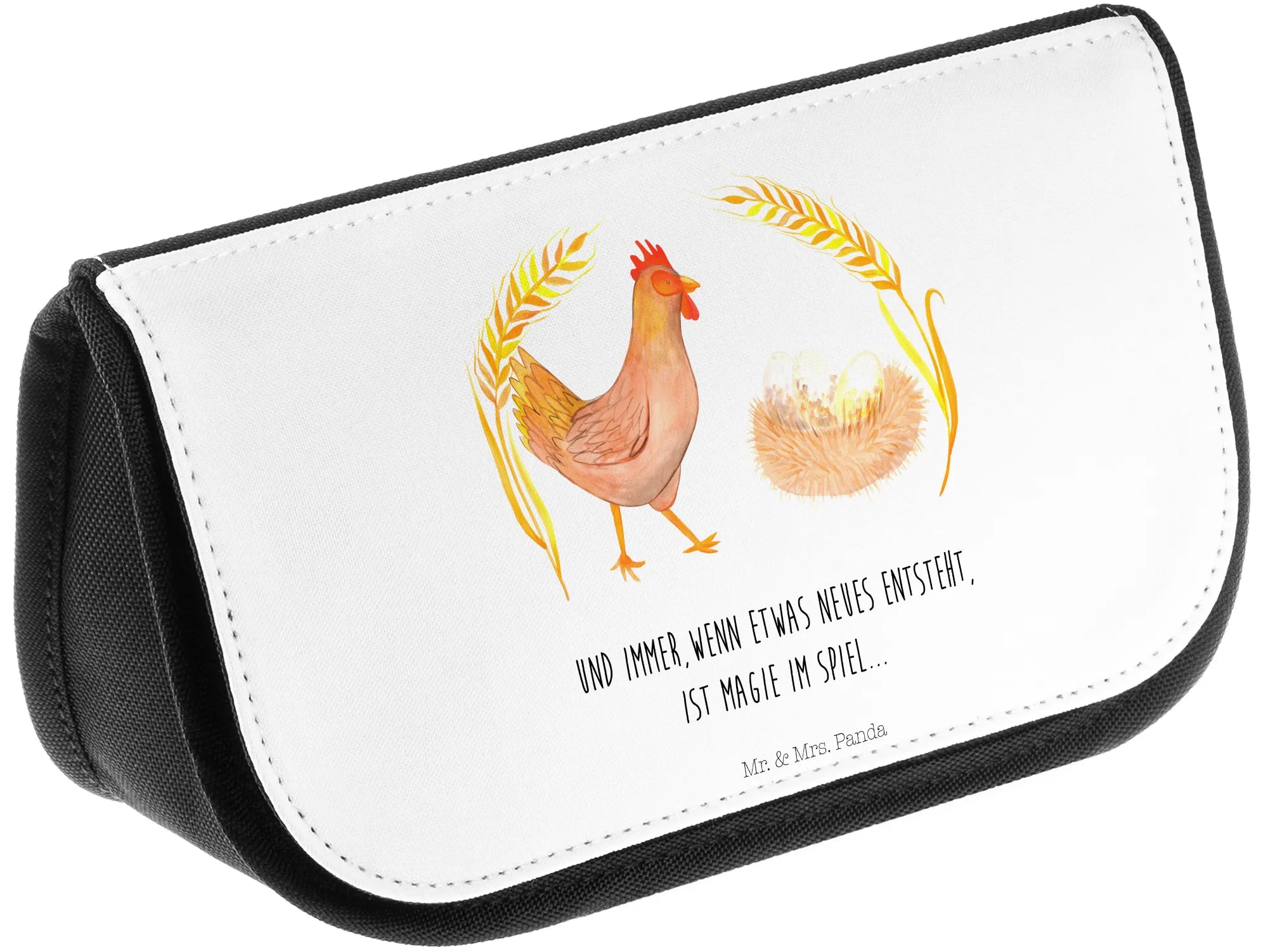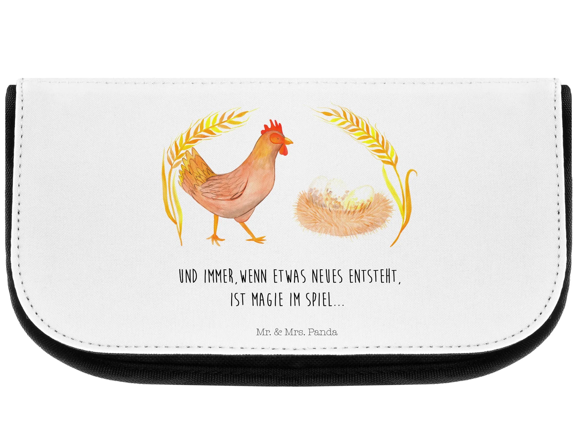 Die Kosmetiktasche "Huhn stolz" aus der Bauernhof Kollektion von Mr. & Mrs. Panda ist der perfekte Begleiter für jede Frau, die ihr Make-Up und ihre Kosmetik stilvoll und praktisch aufbewahren möchte. Das süße Motiv mit dem stolzen Huhn bringt einen Hauch von Landleben in deinen Alltag und erinnert daran, wie wundervoll es ist, wenn neues Leben entsteht.