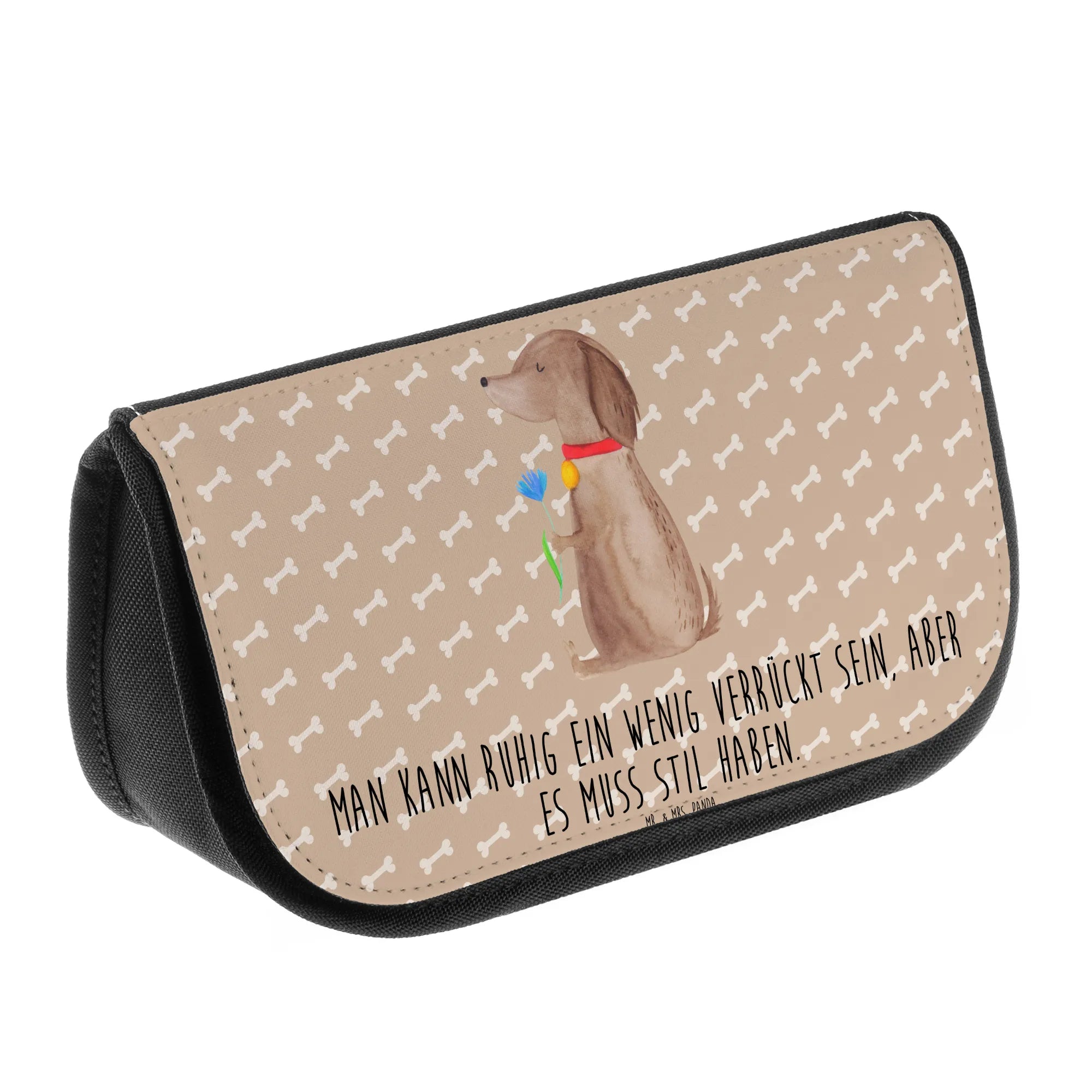 Die Kosmetiktasche mit dem bezaubernden Hund Blume Motiv von Mr. & Mrs. Panda ist der perfekte Begleiter für alle Hundeliebhaber und Hundebesitzer. Diese praktische Kulturtasche vereint Stil und Funktionalität und ist das ideale Geschenk für Frauchen, die ihre Liebe zu Hunden ausdrücken möchten. Das niedliche Motiv zeigt eine süße Hündin mit einer Blume im Fell, und der Slogan "Man kann ruhig ein wenig verrückt sein, aber es muss Stil haben" rundet das Design perfekt ab.