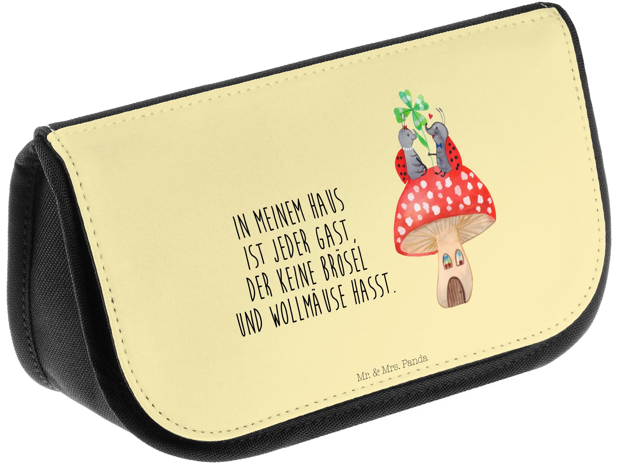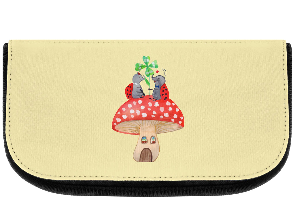 Kosmetiktasche Marienkäfer Fliegenpilz - mit Spruch - Gelb Pastell