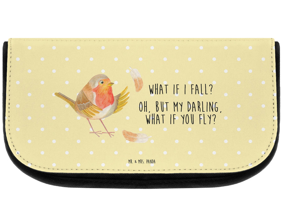Die Kosmetiktasche "Rotkehlchen mit Federn" aus der zauberhaften Small World Kollektion von Mr. & Mrs. Panda ist nicht nur unglaublich praktisch, sondern auch ein bezauberndes Accessoire für jede Frau, die Schönheit und Stil zu schätzen weiß.