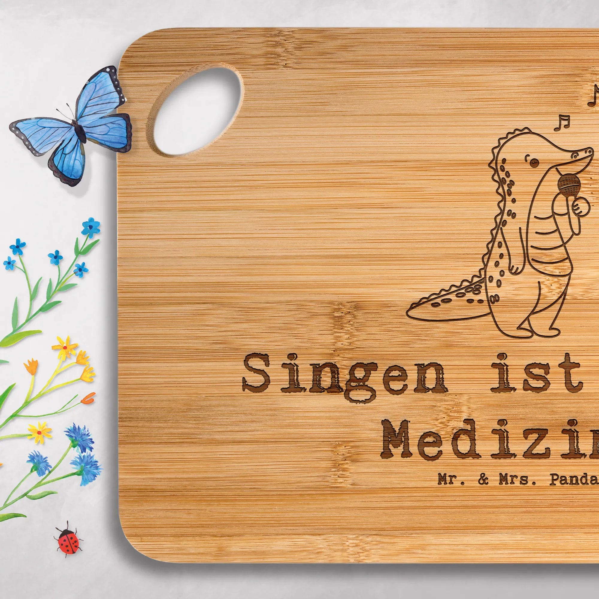 Küchenbrett Krokodil Singen - mit Spruch